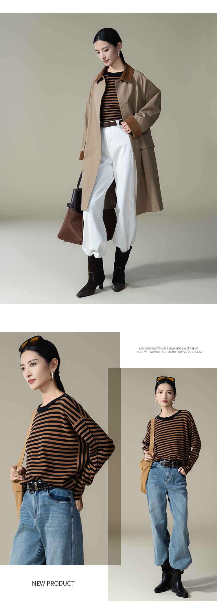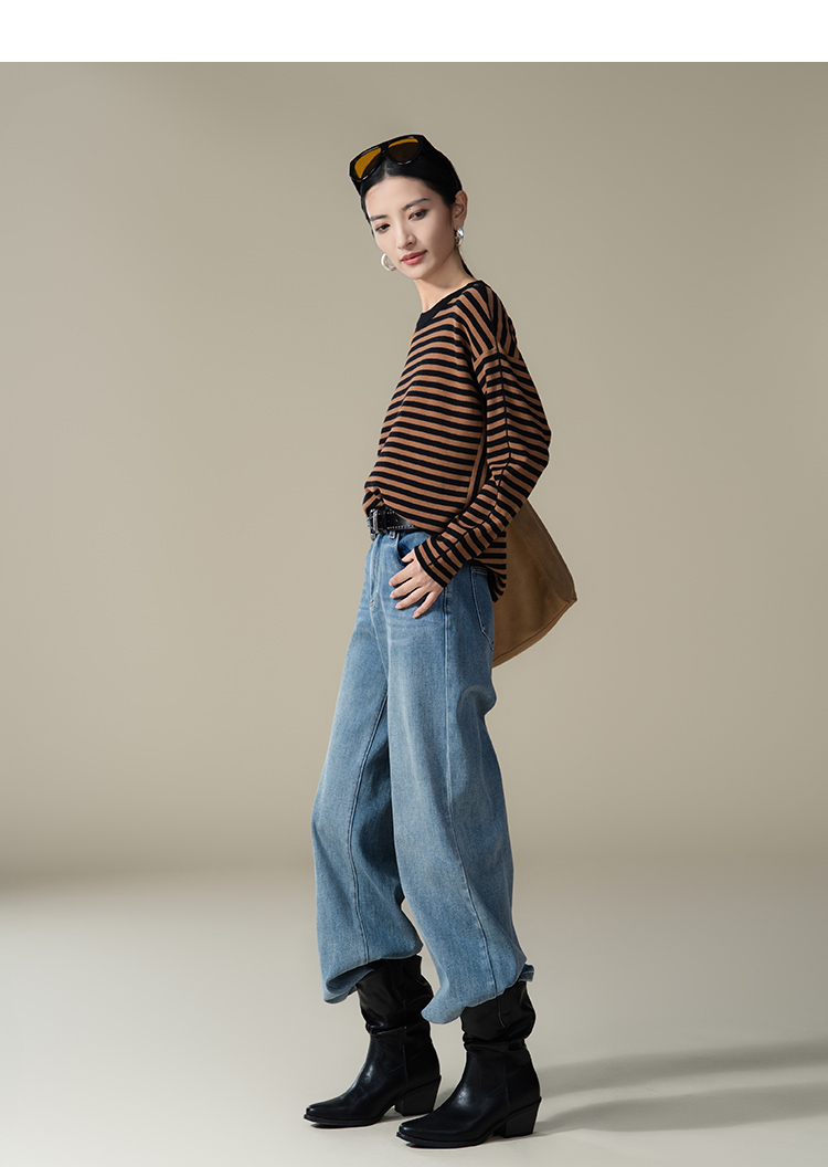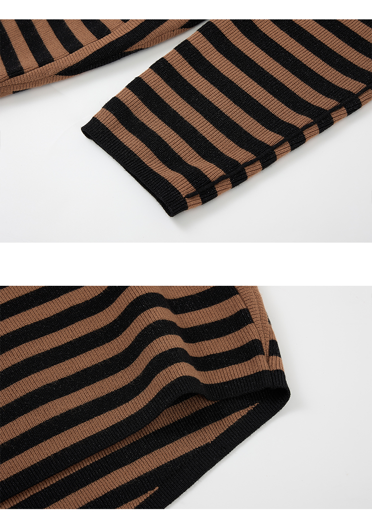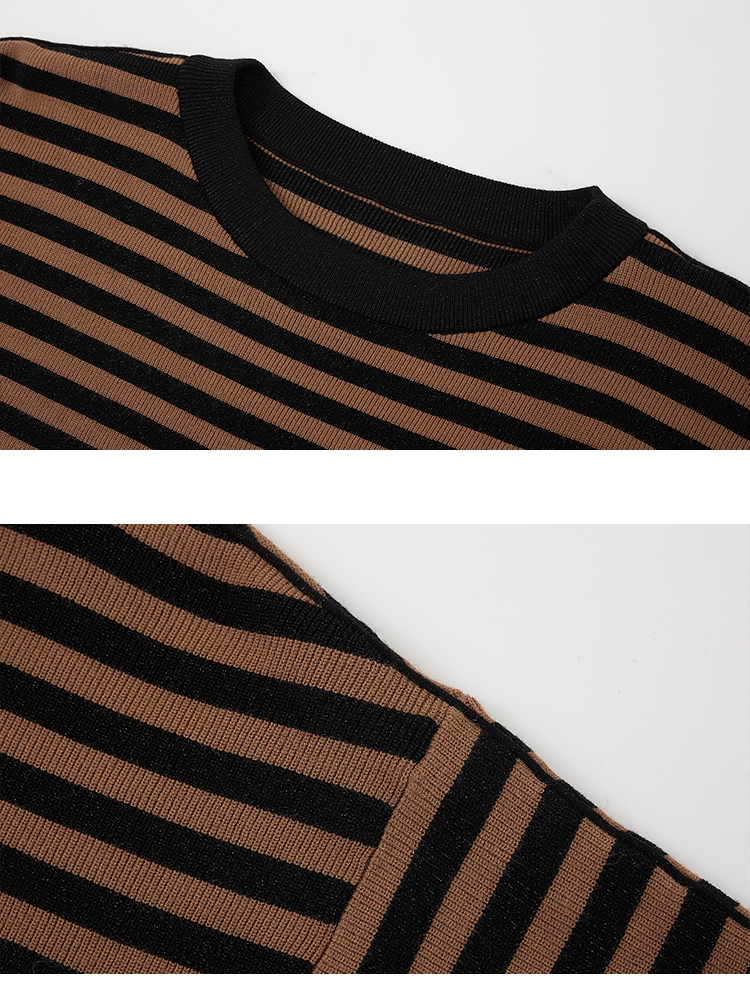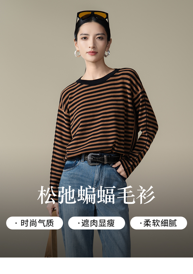 【商场同款】CNK5915“ 松弛条纹蝙蝠衫 ” 低调的黑棕条纹 沉稳内敛,搭配出彩
