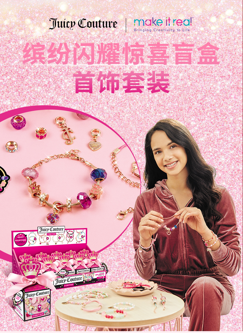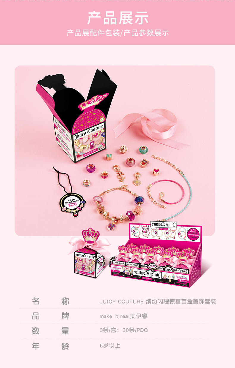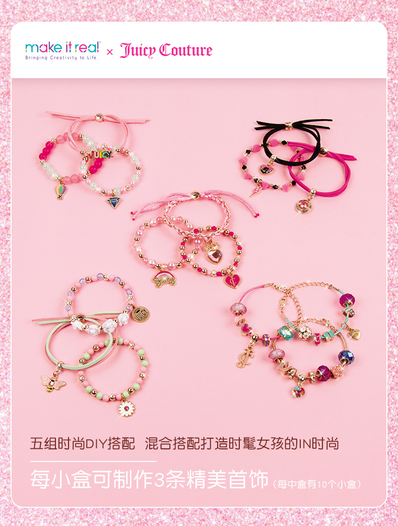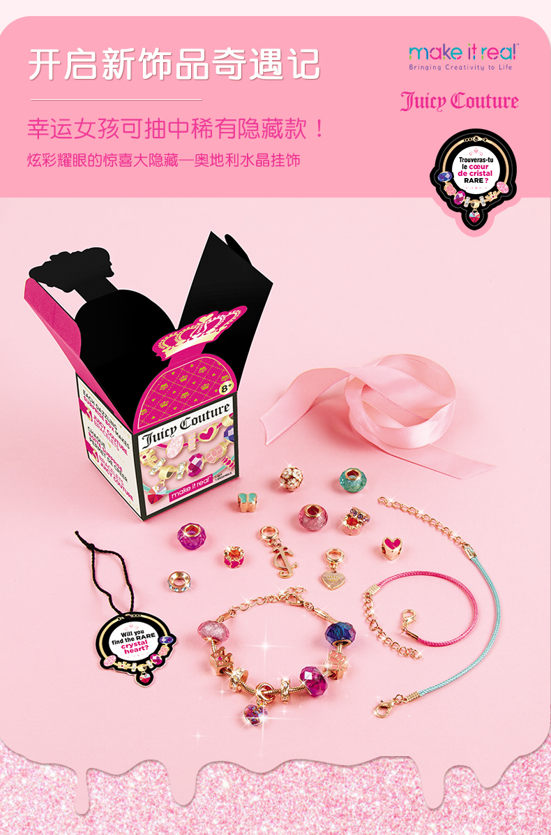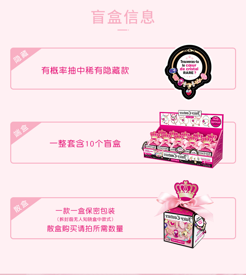 盲盒3:1根透明弹力绳,1根玫红色绒面绳,1根黑石绒面绳,3个挂饰,2个金属串珠,彩色珠珠若干