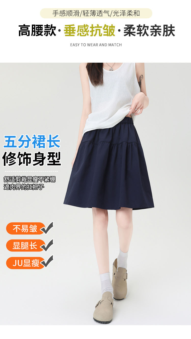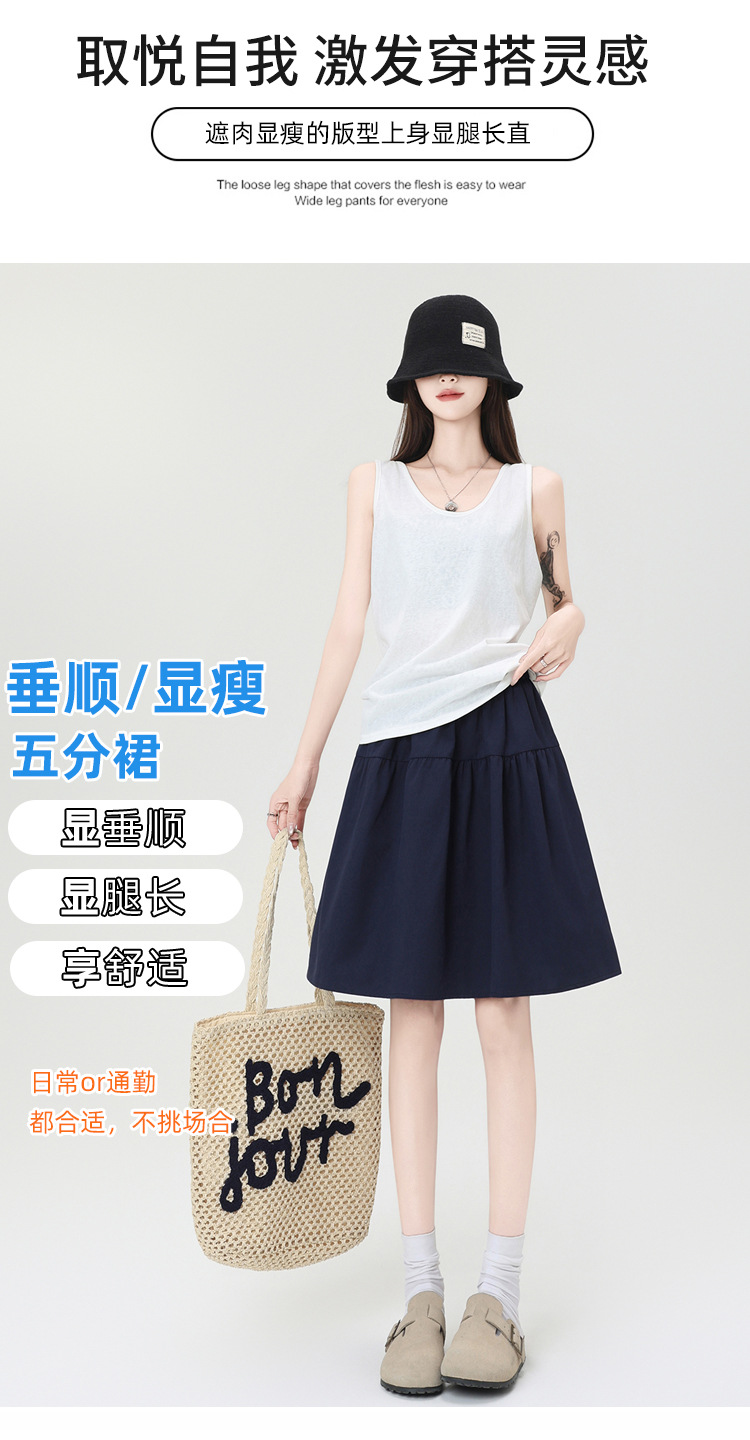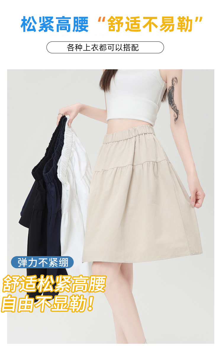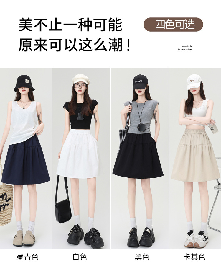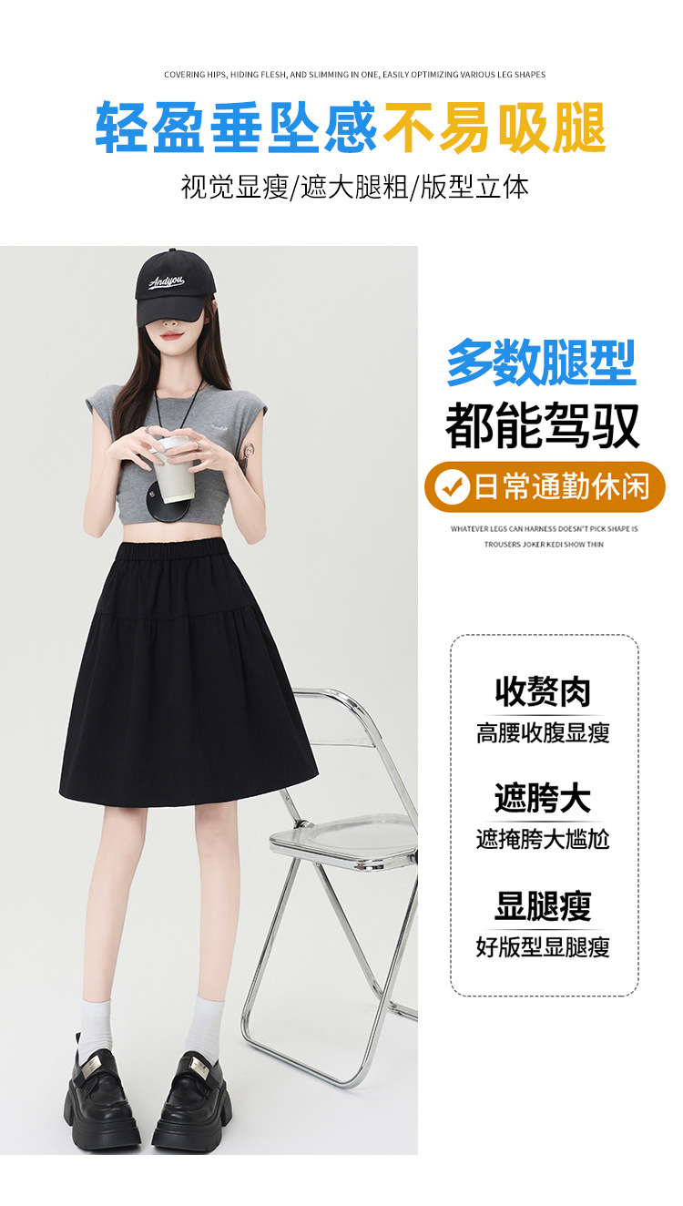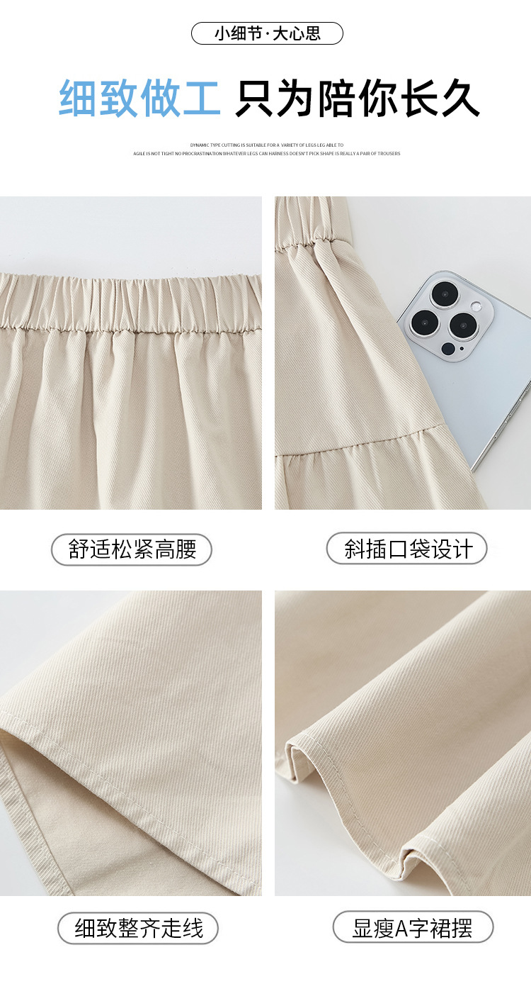 夏季薄款高腰A字半身裙 日系休闲垂感宽松工装裙