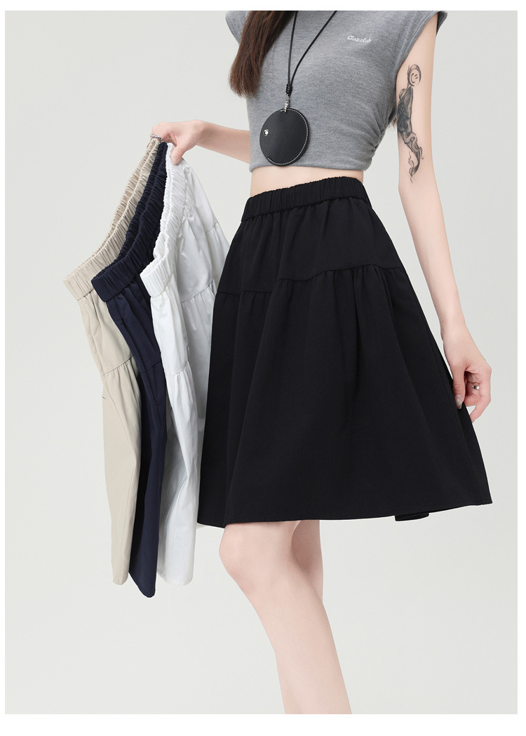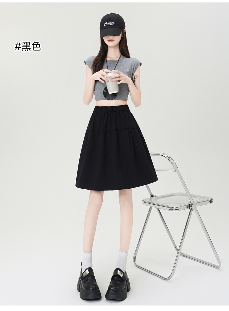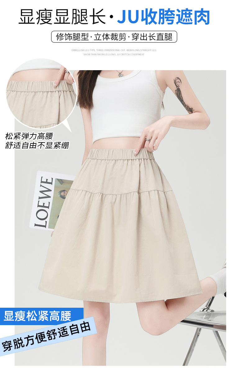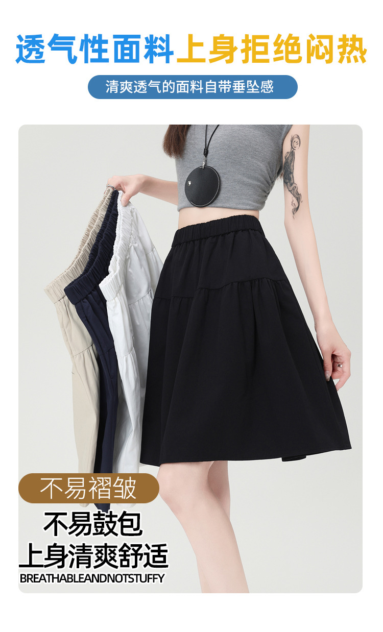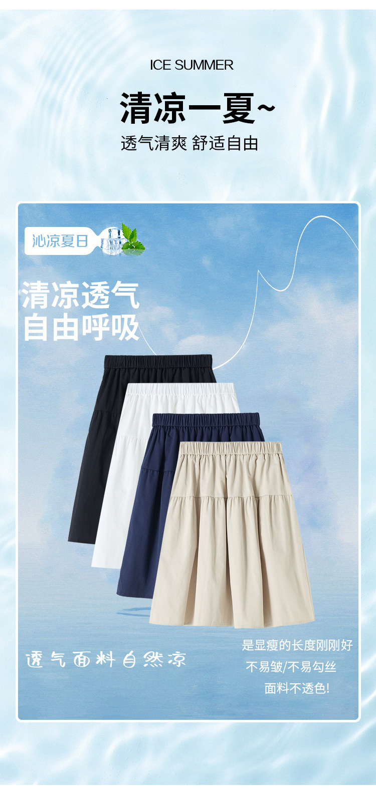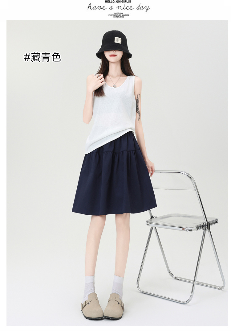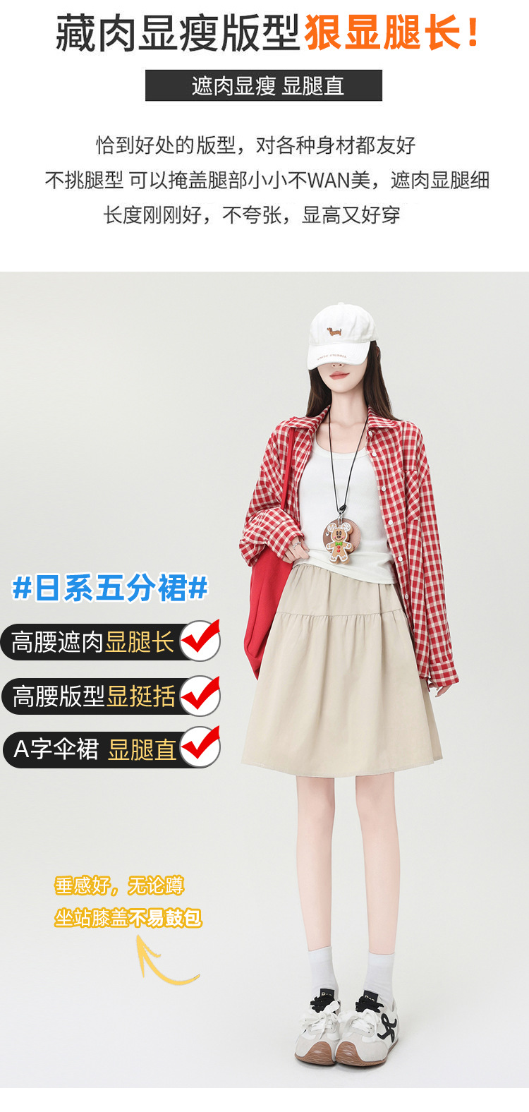 夏季薄款高腰A字半身裙 日系休闲垂感宽松工装裙
