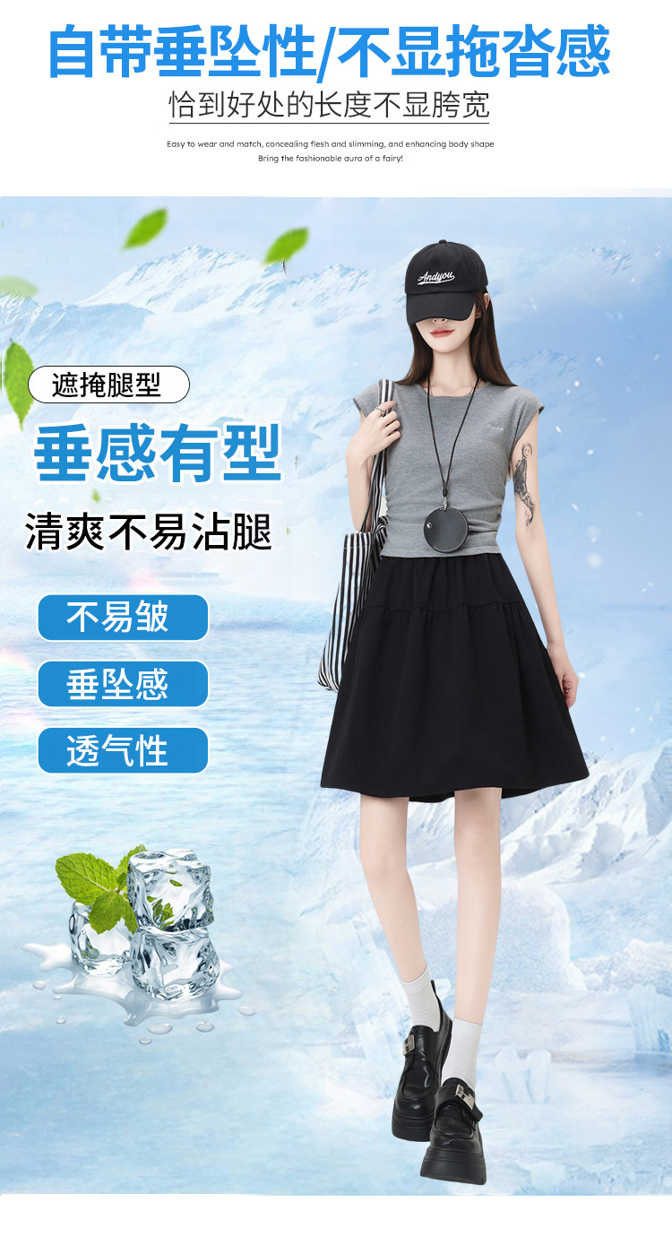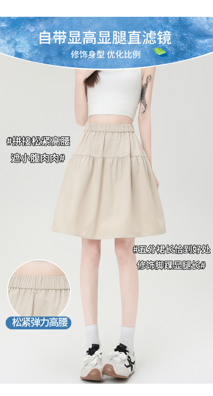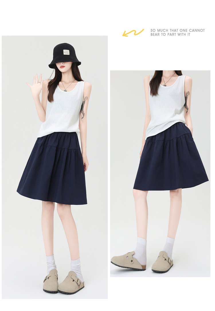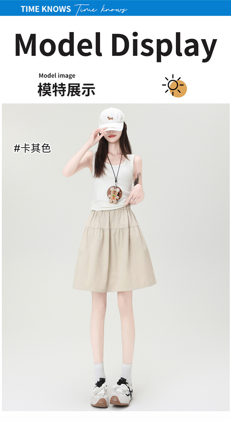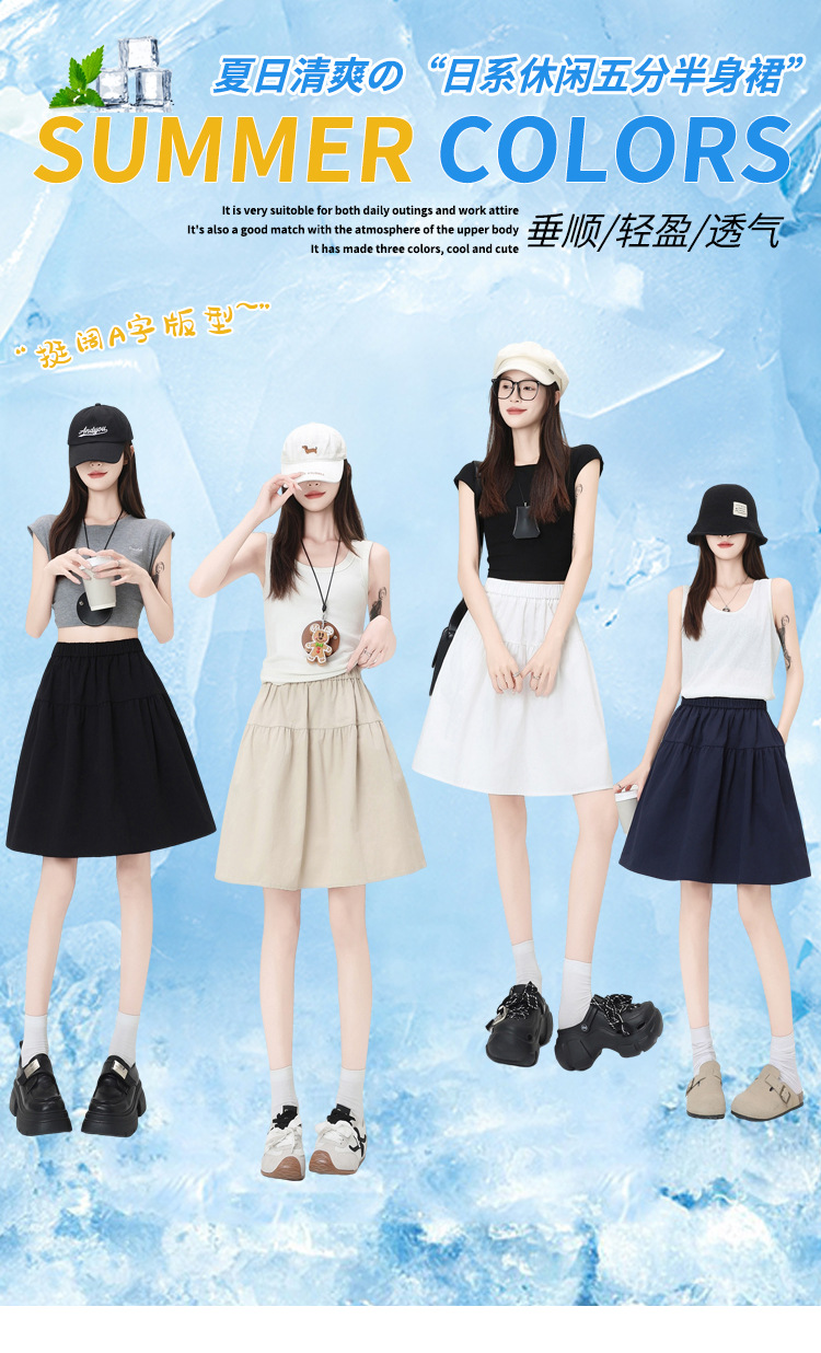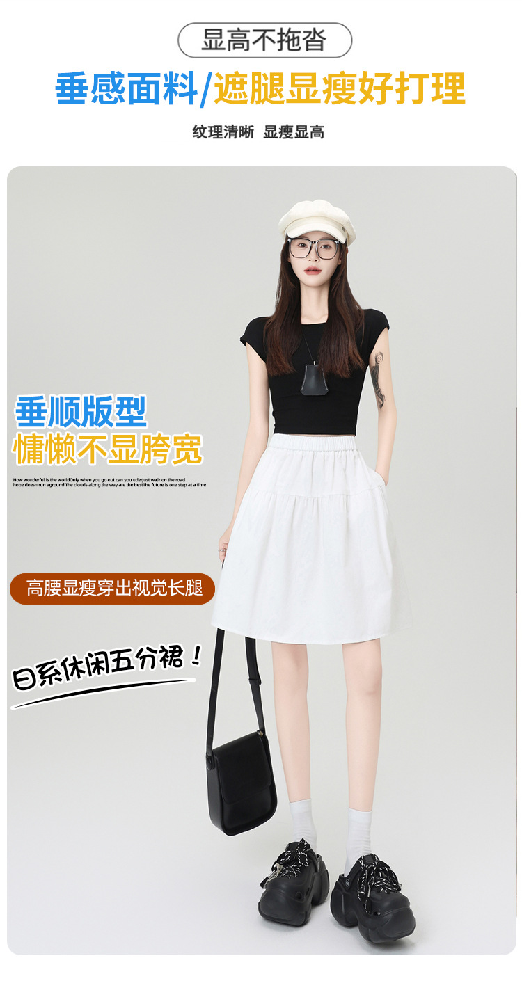 夏季薄款高腰A字半身裙 日系休闲垂感宽松工装裙