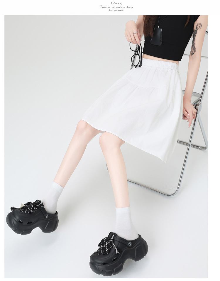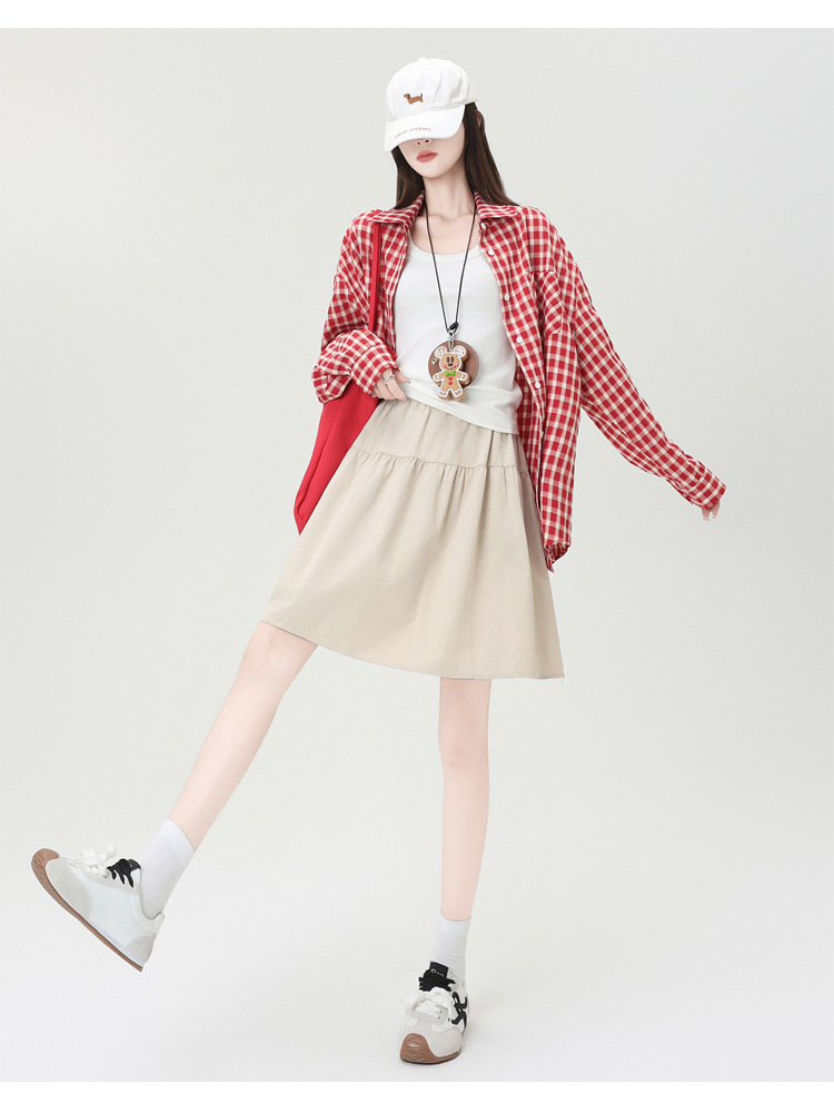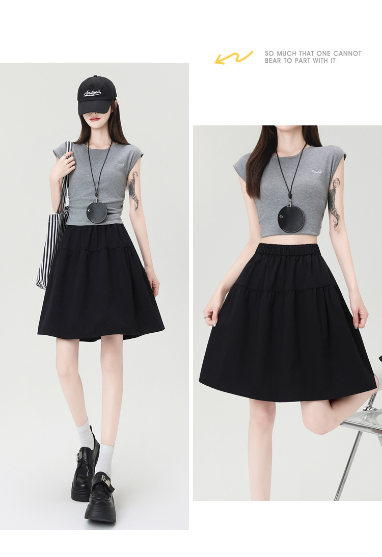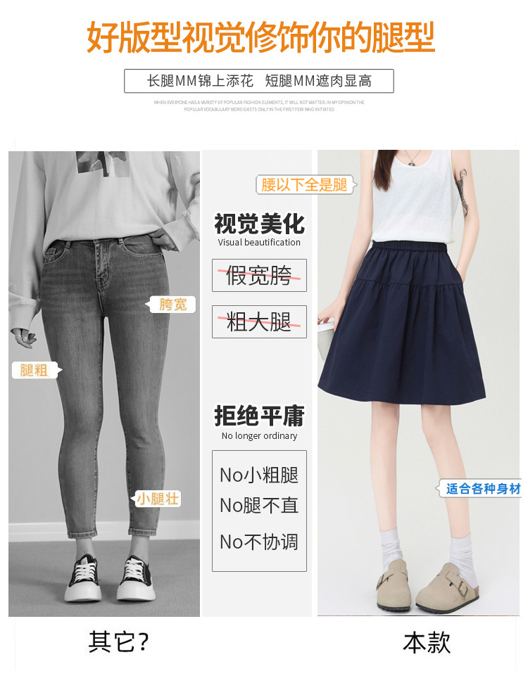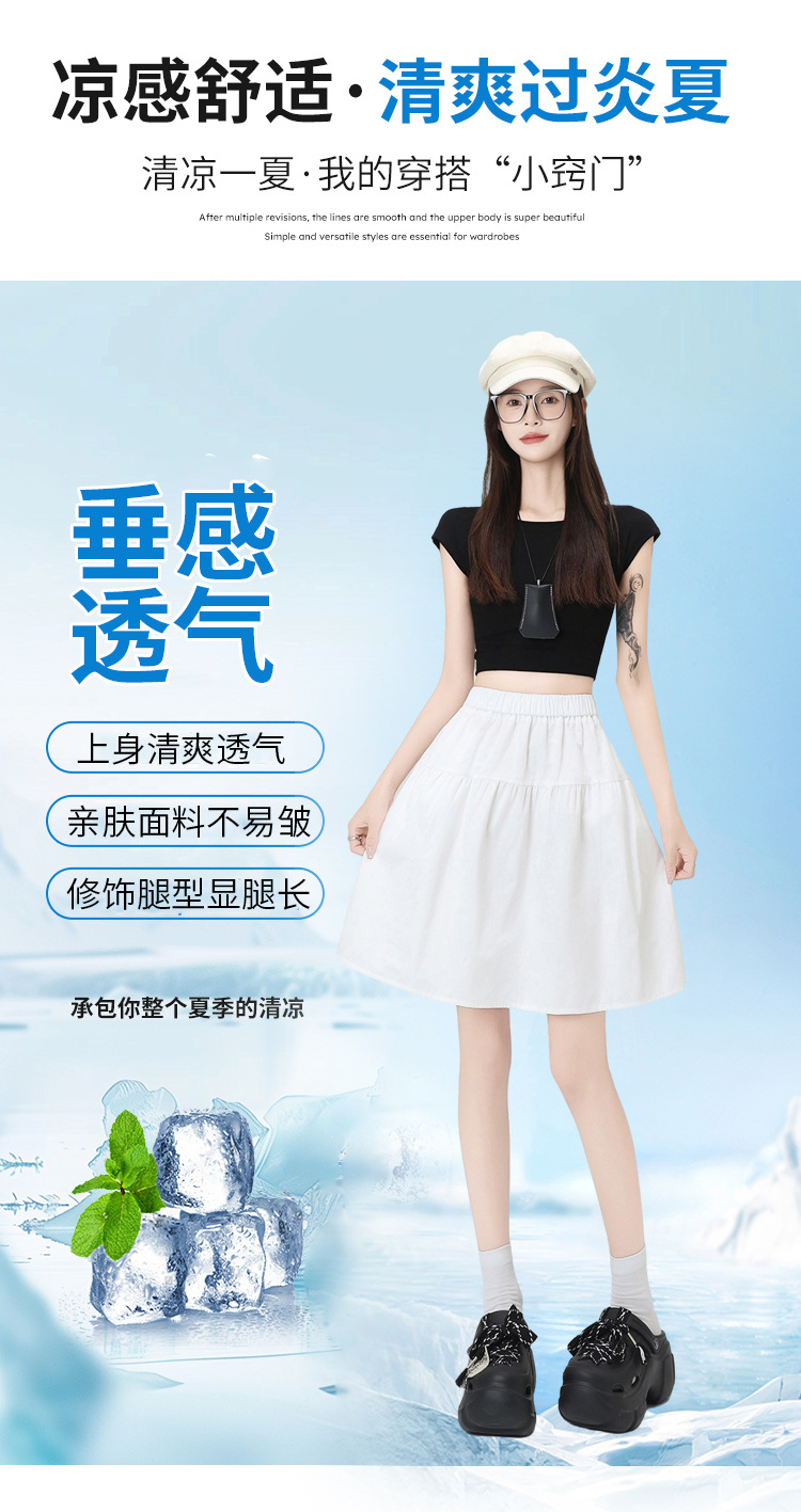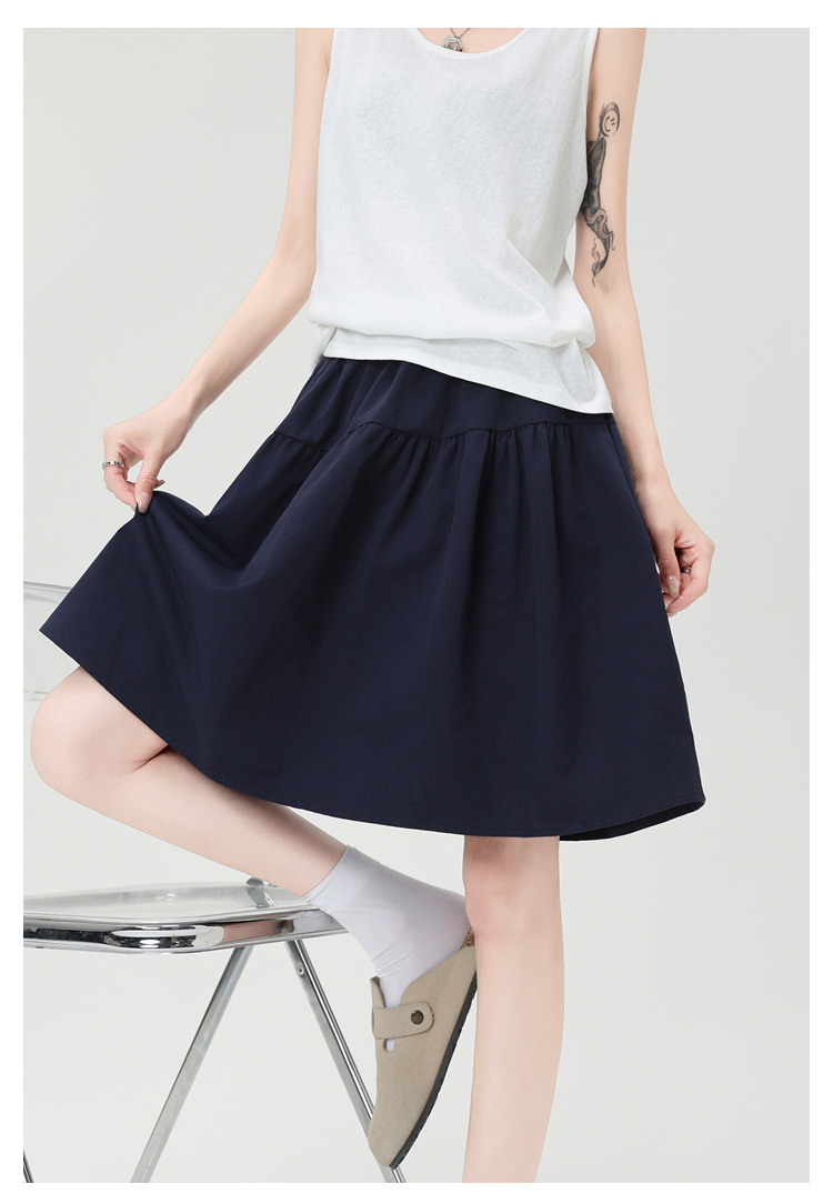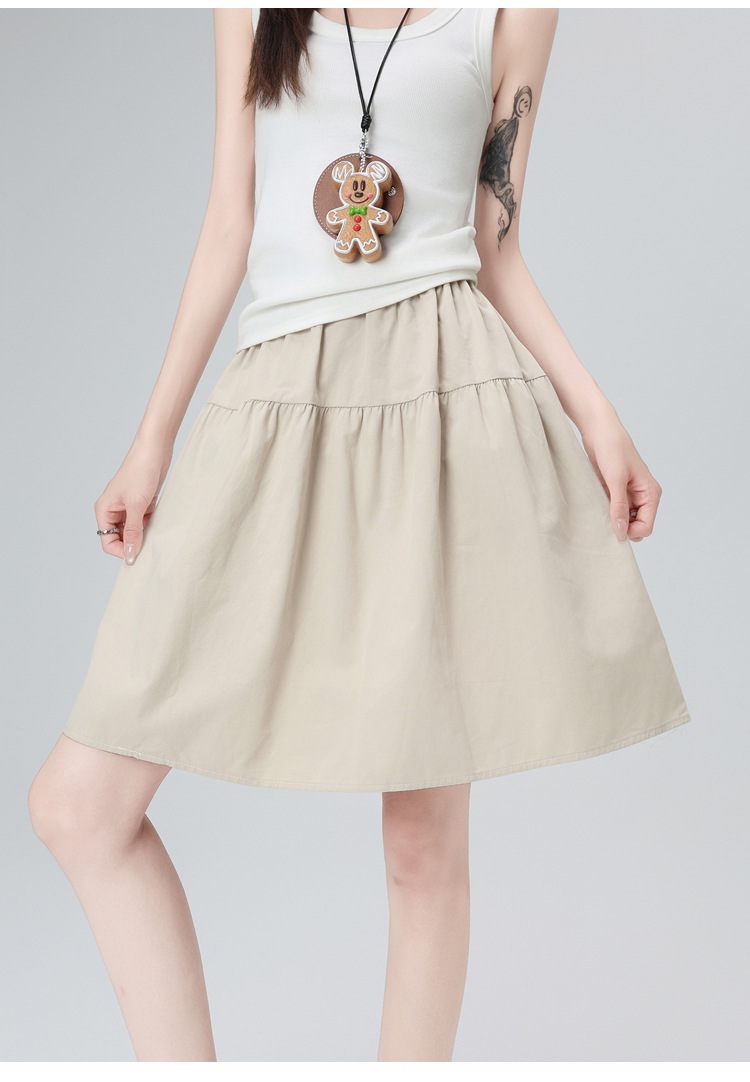 夏季薄款高腰A字半身裙 日系休闲垂感宽松工装裙