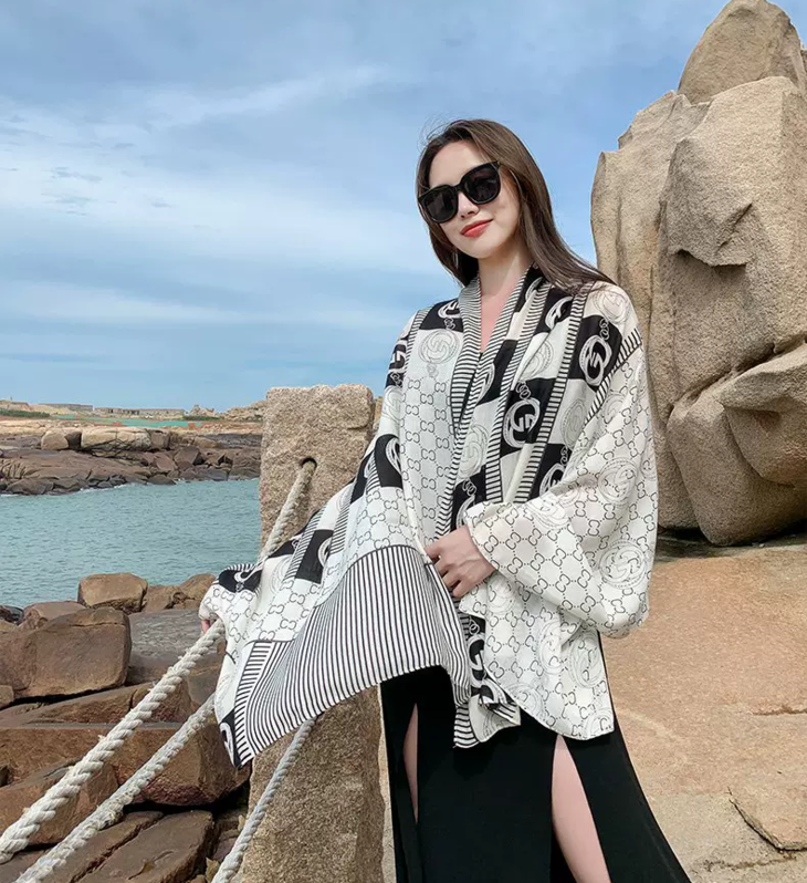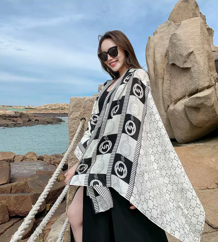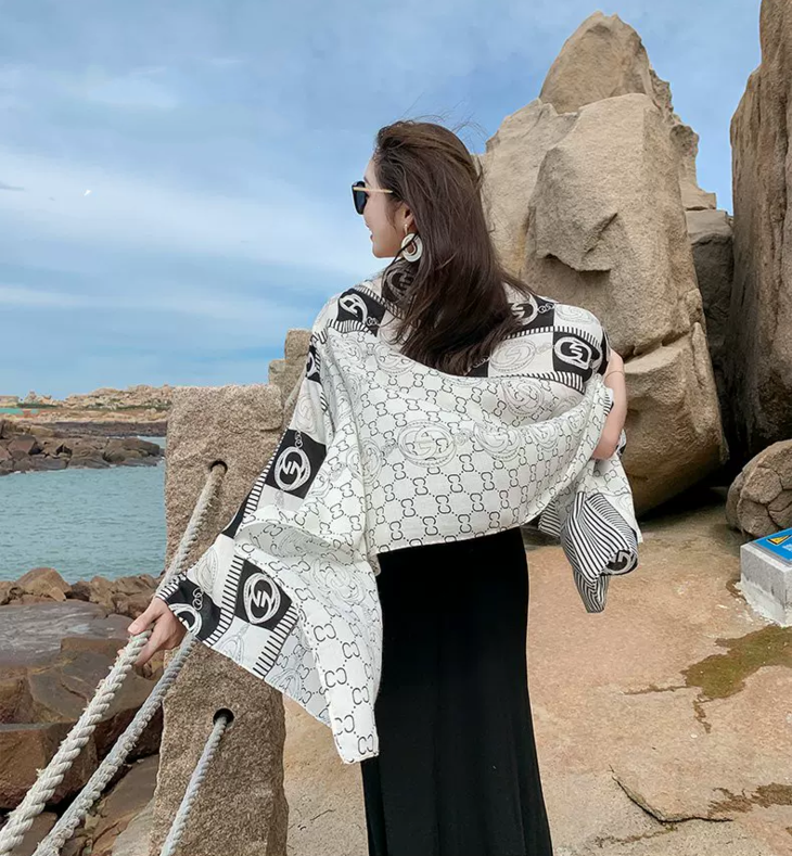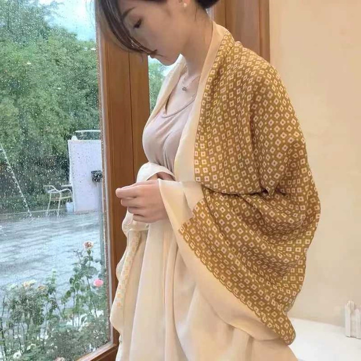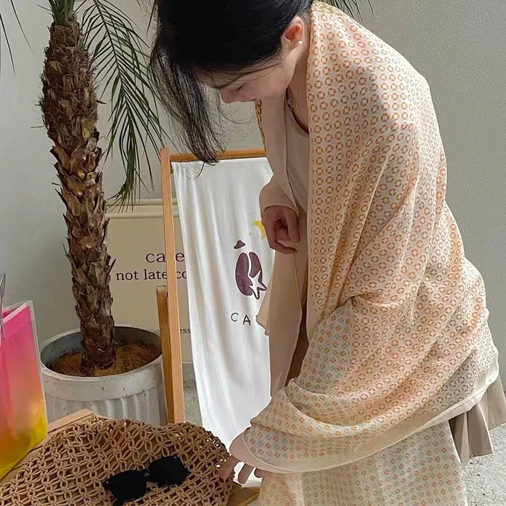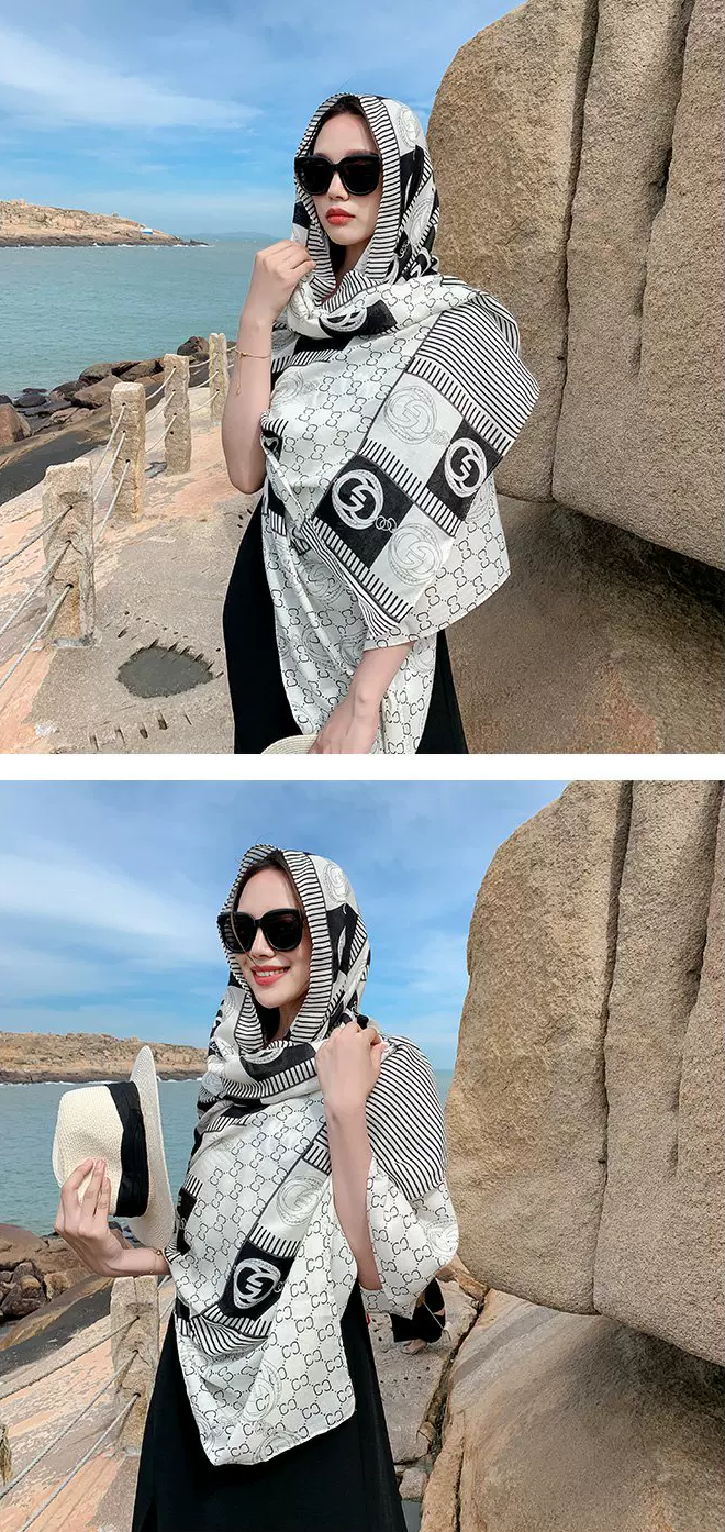 随意地把丝巾披在肩上, 尽显随性与优雅; 室外出行时,能为你遮挡阳光 超级百搭,不管是通勤穿搭还是度假风 无论是在办公室还是外出旅游 都能轻松拿捏,随便一拍都满满的精致感