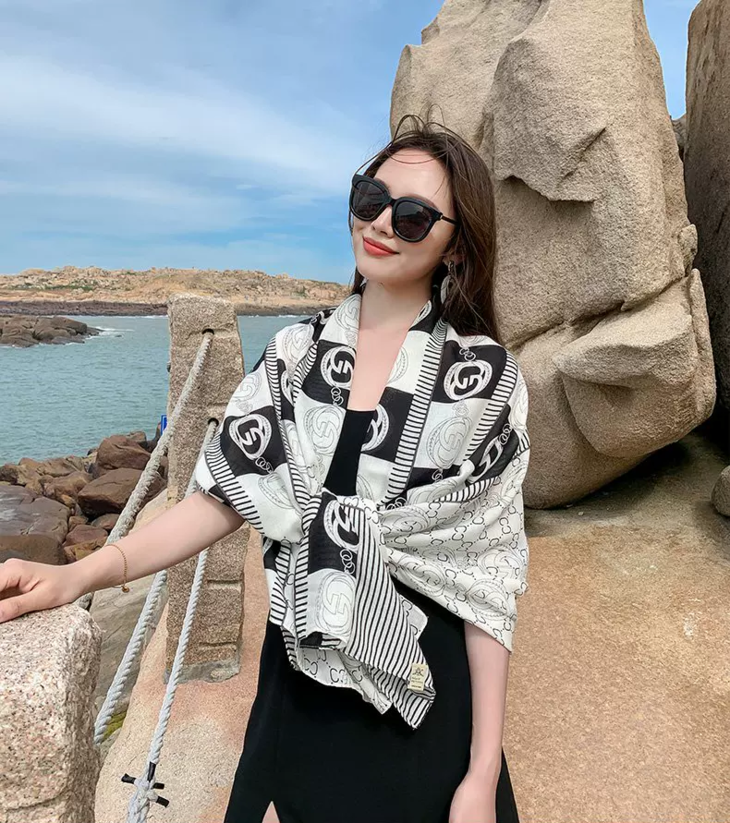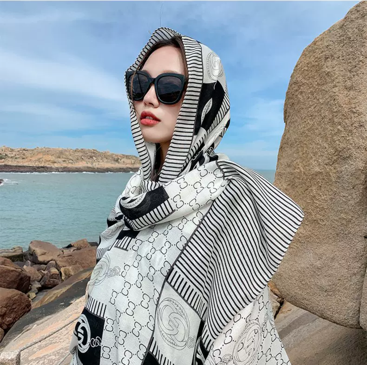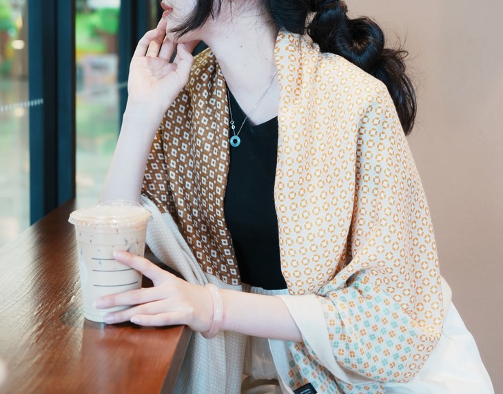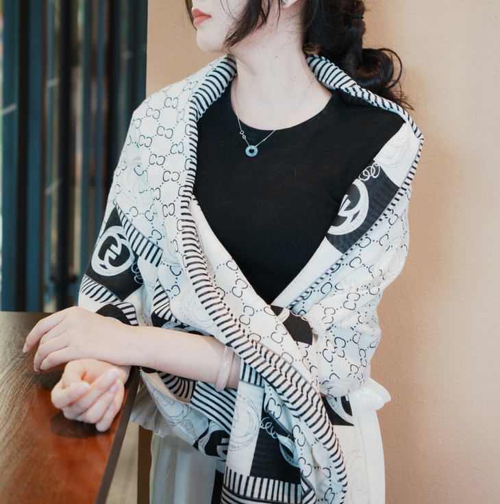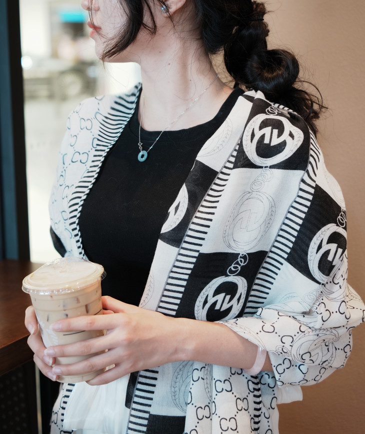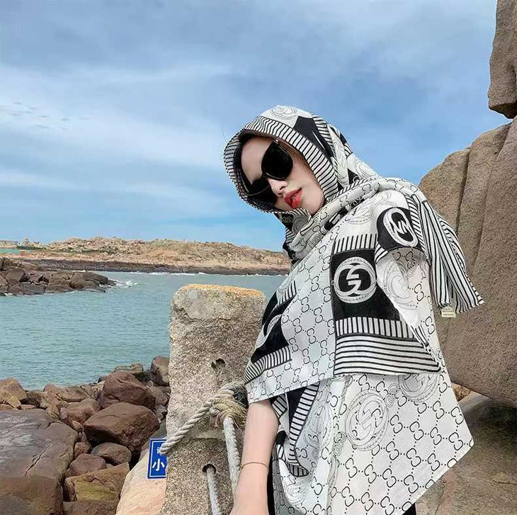 随意地把丝巾披在肩上, 尽显随性与优雅; 室外出行时,能为你遮挡阳光 超级百搭,不管是通勤穿搭还是度假风 无论是在办公室还是外出旅游 都能轻松拿捏,随便一拍都满满的精致感