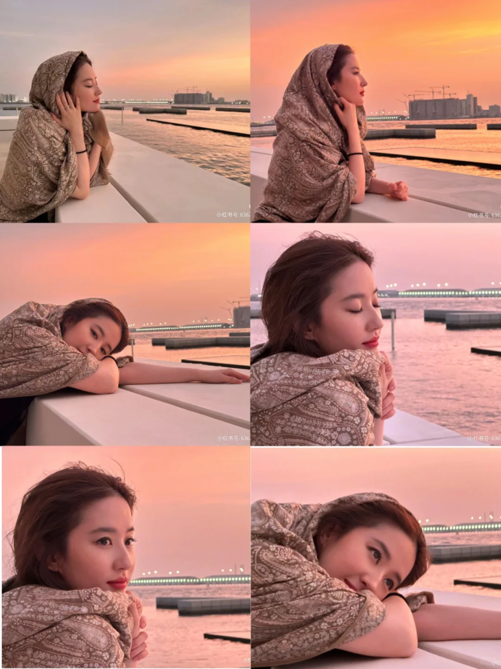 或者优雅地搭在肩上 无论是漫步在古老的小镇街头, 还是置身于壮丽的自然景观之中, 丝巾的边缘随风轻轻飘动, 不用凹造型,每一张都能美的像诗篇