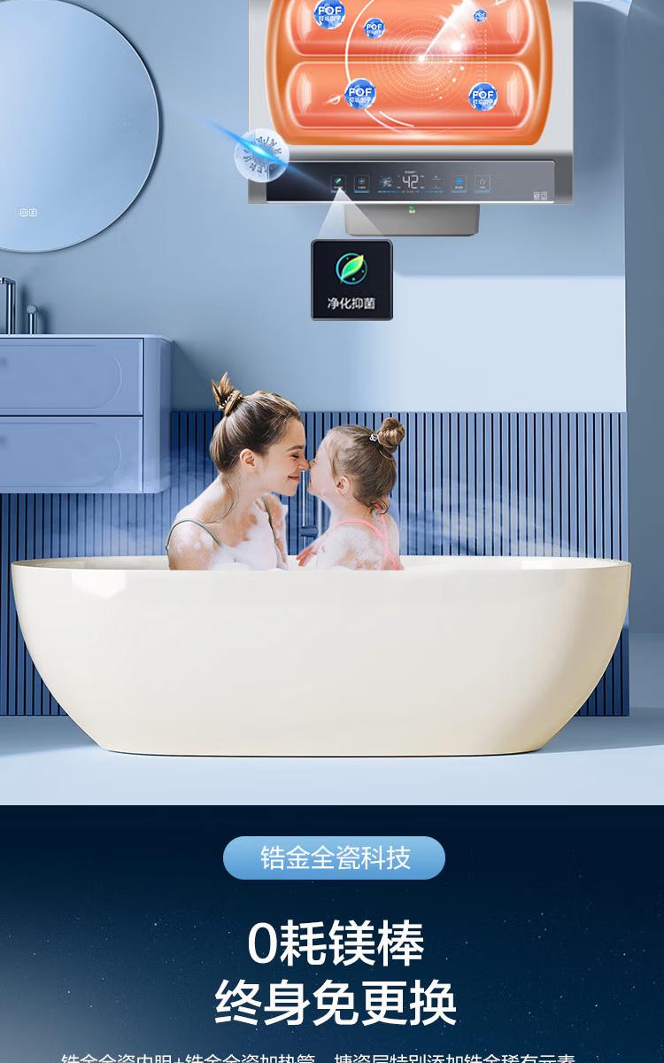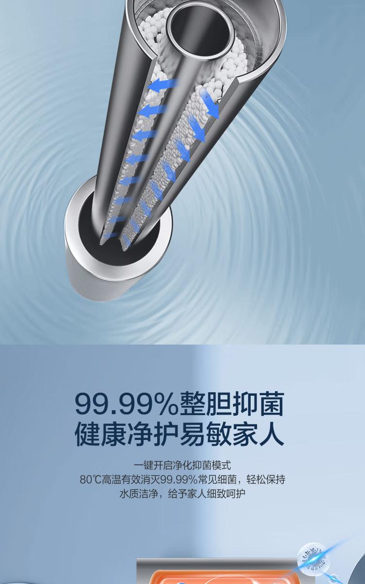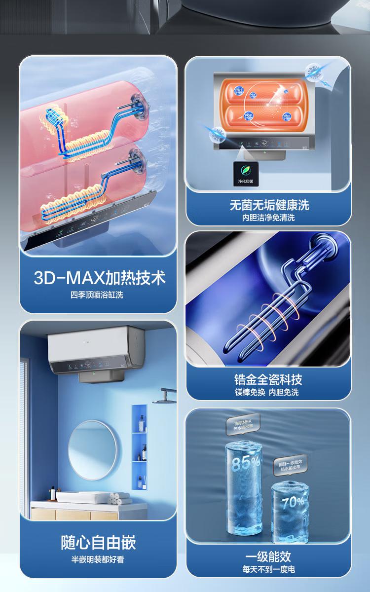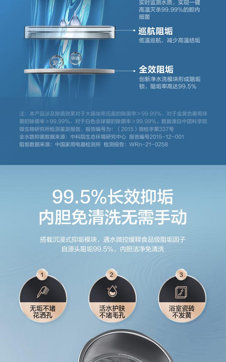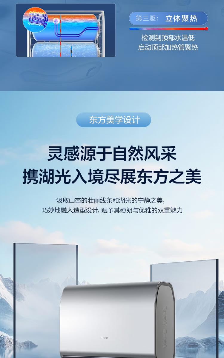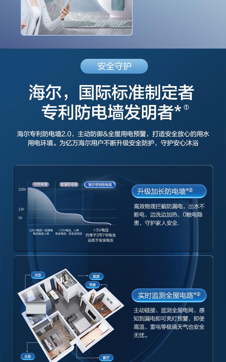 海尔(Haier)3D MAX巨能洗薄双胆电热水器扁桶变频3500W速热净水洗VIP保温 一级能效 60L 升级锆金全瓷科技 内胆免清洗