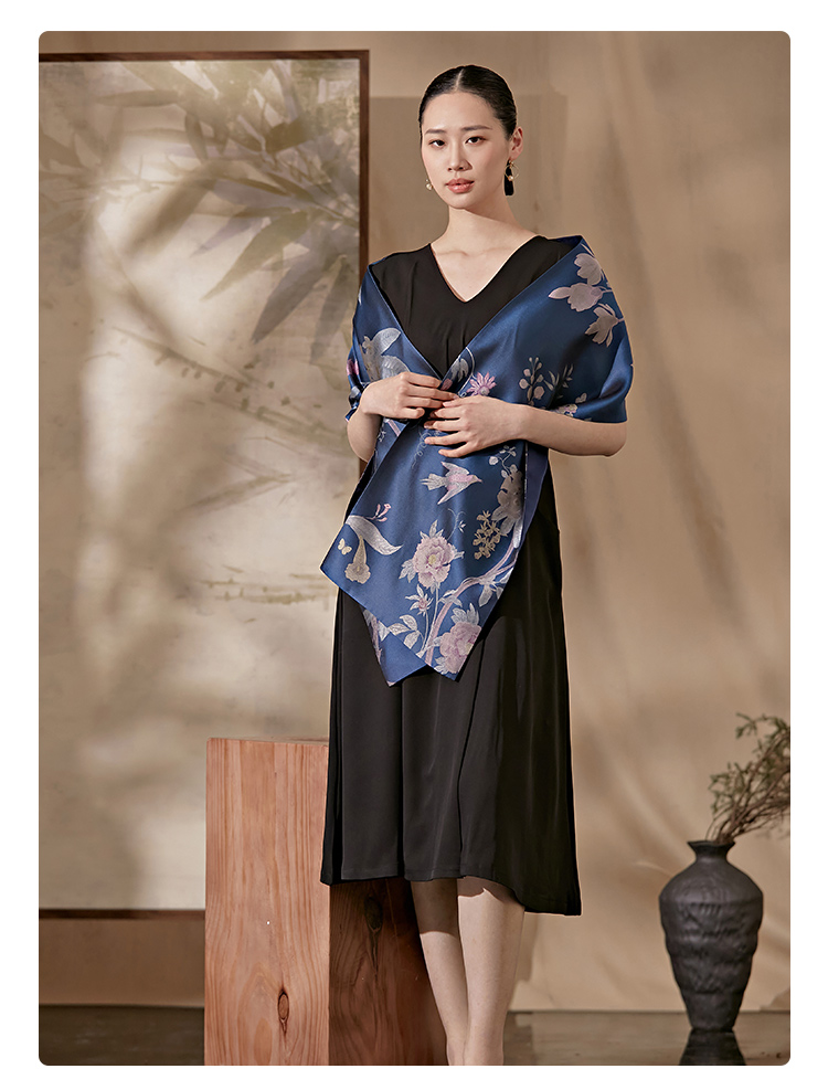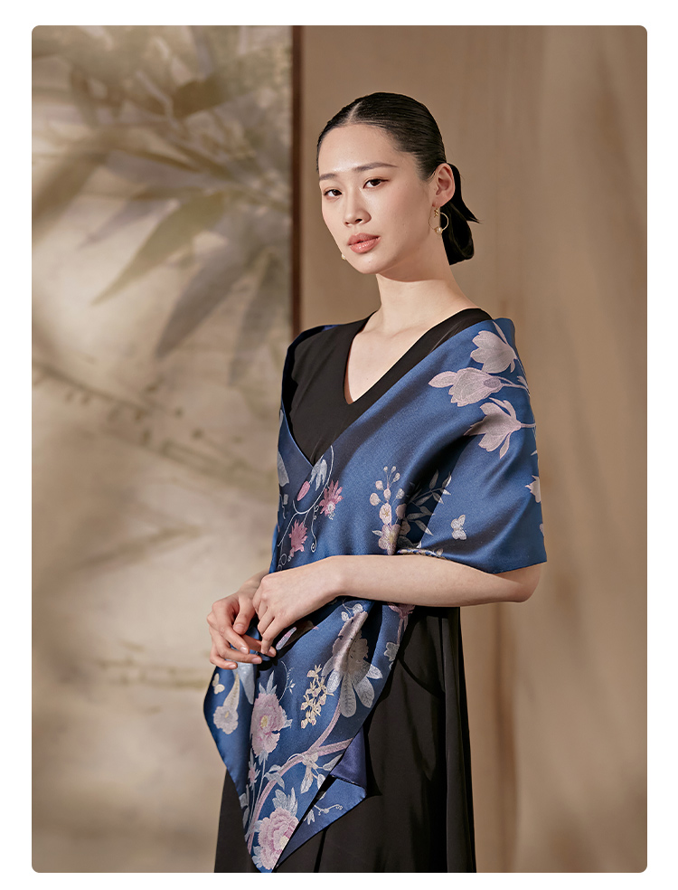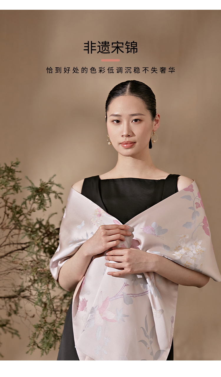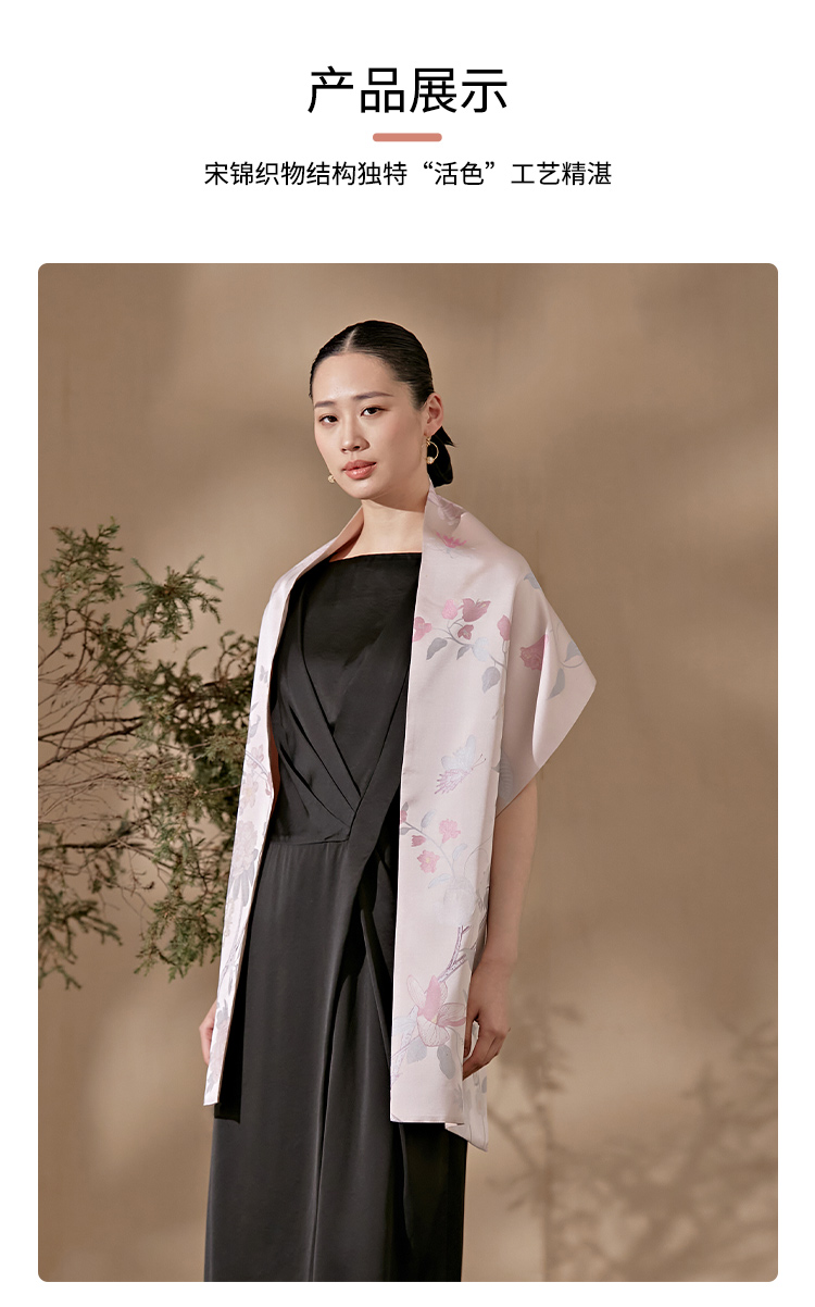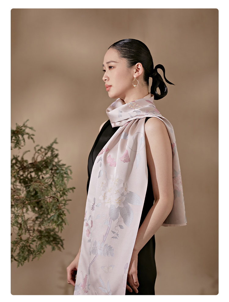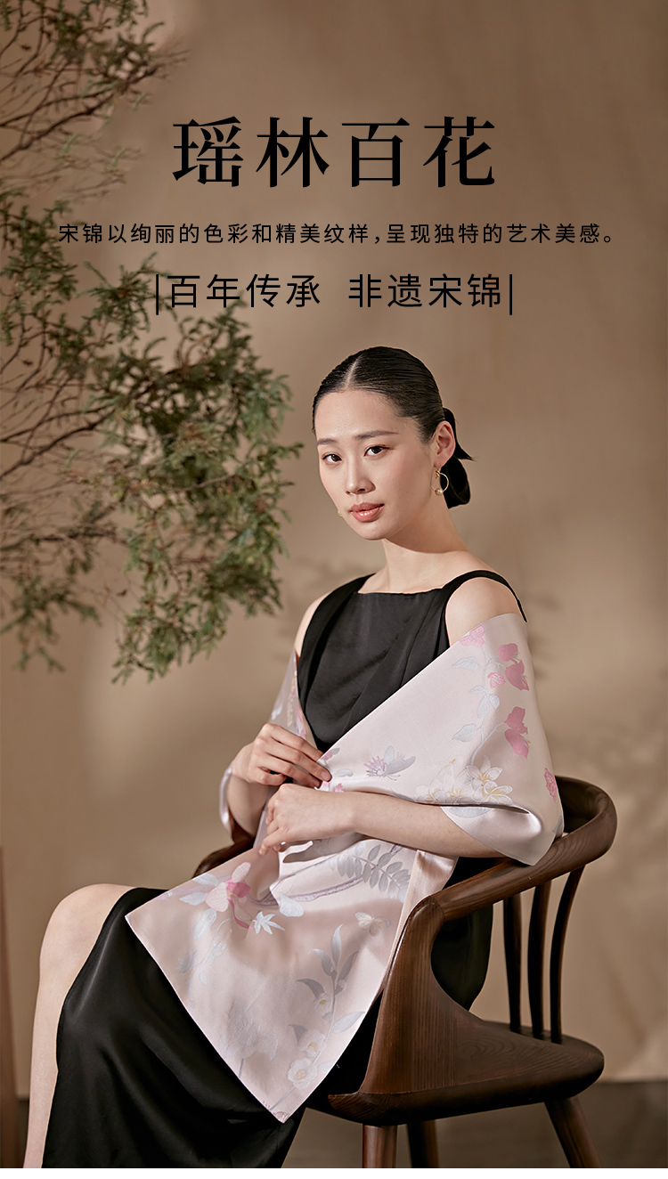 SAINTJOY/上久楷 女士宋锦双面长巾 围巾 瑶林百花 SCS23009