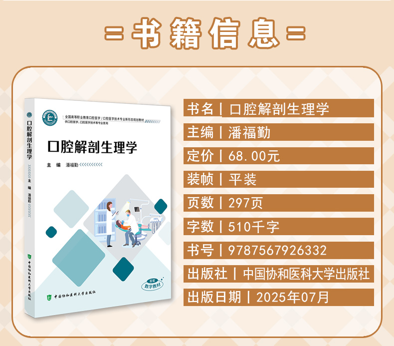 口腔解剖生理学 全国高等职业教育口腔医学 潘福勤 主编 供口腔医学 口腔医学技术等专业使用9787567926332中国协和医科大学出版社