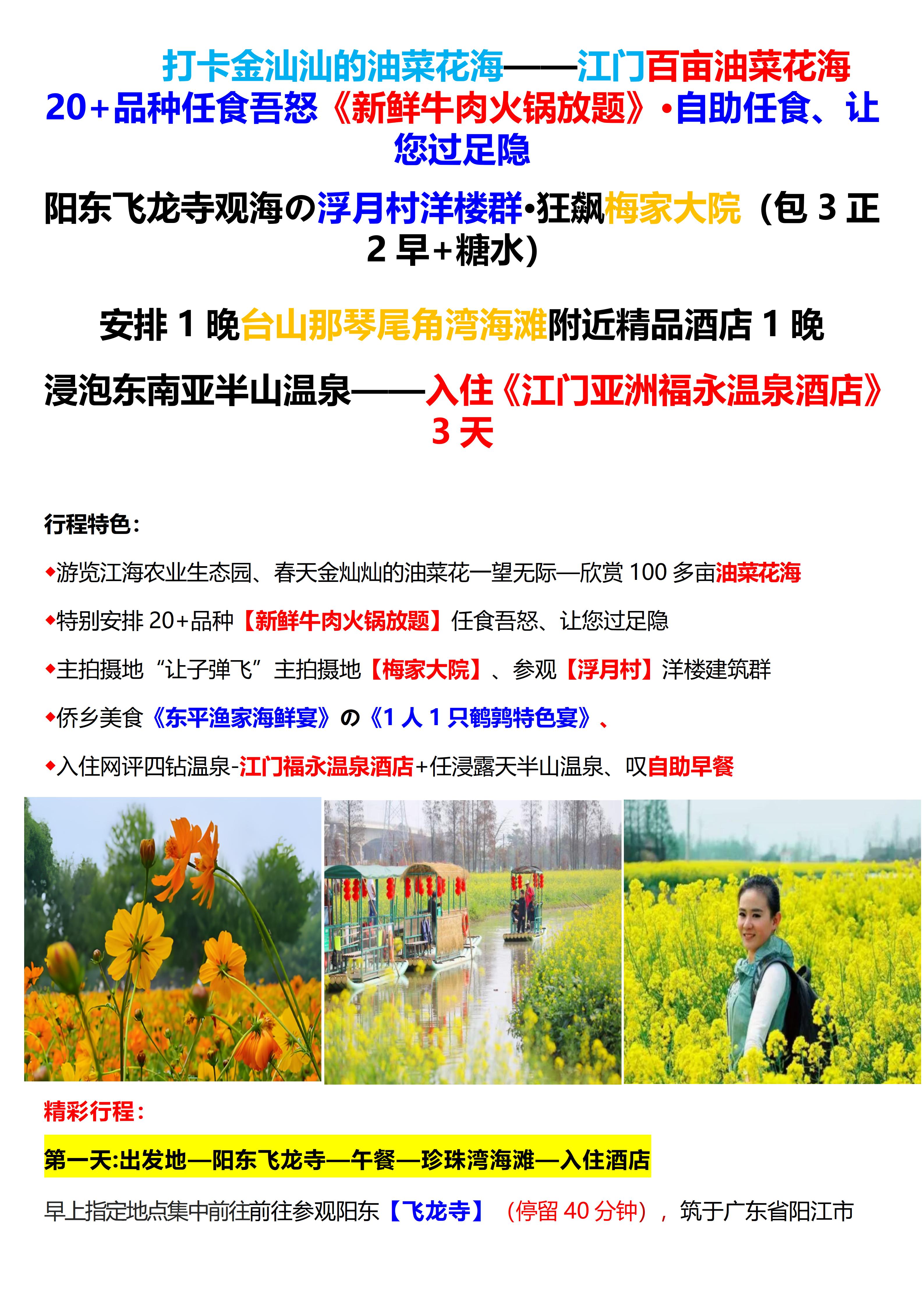 【赏花泡泉】江门大巴专场3天