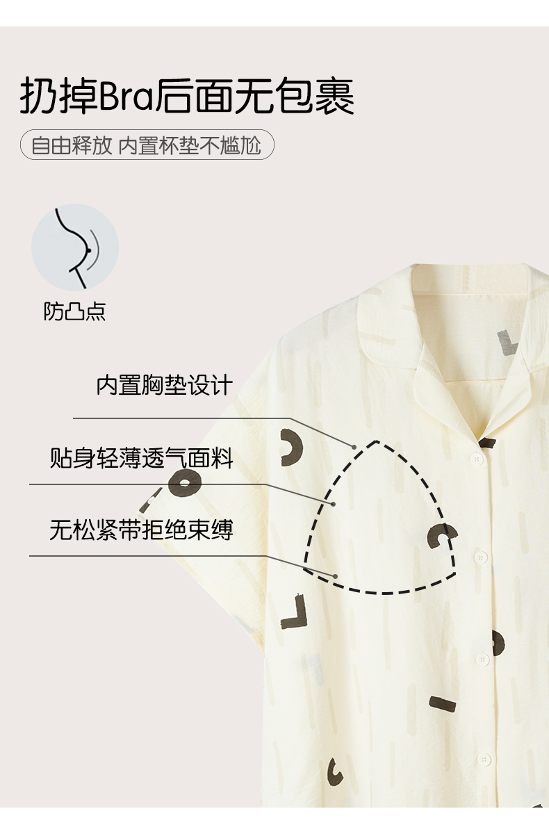 可人儿新款泡泡绵夏季女士短袖睡衣网红风带胸垫短裤家居服三件套
