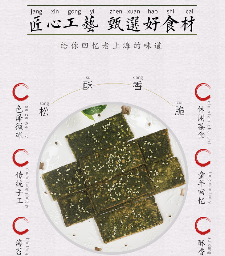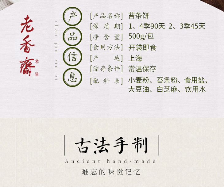 【老香斋_苔条饼500g】上海传统糕点海苔饼干 薄脆咸甜入口香酥 小包装方便携带