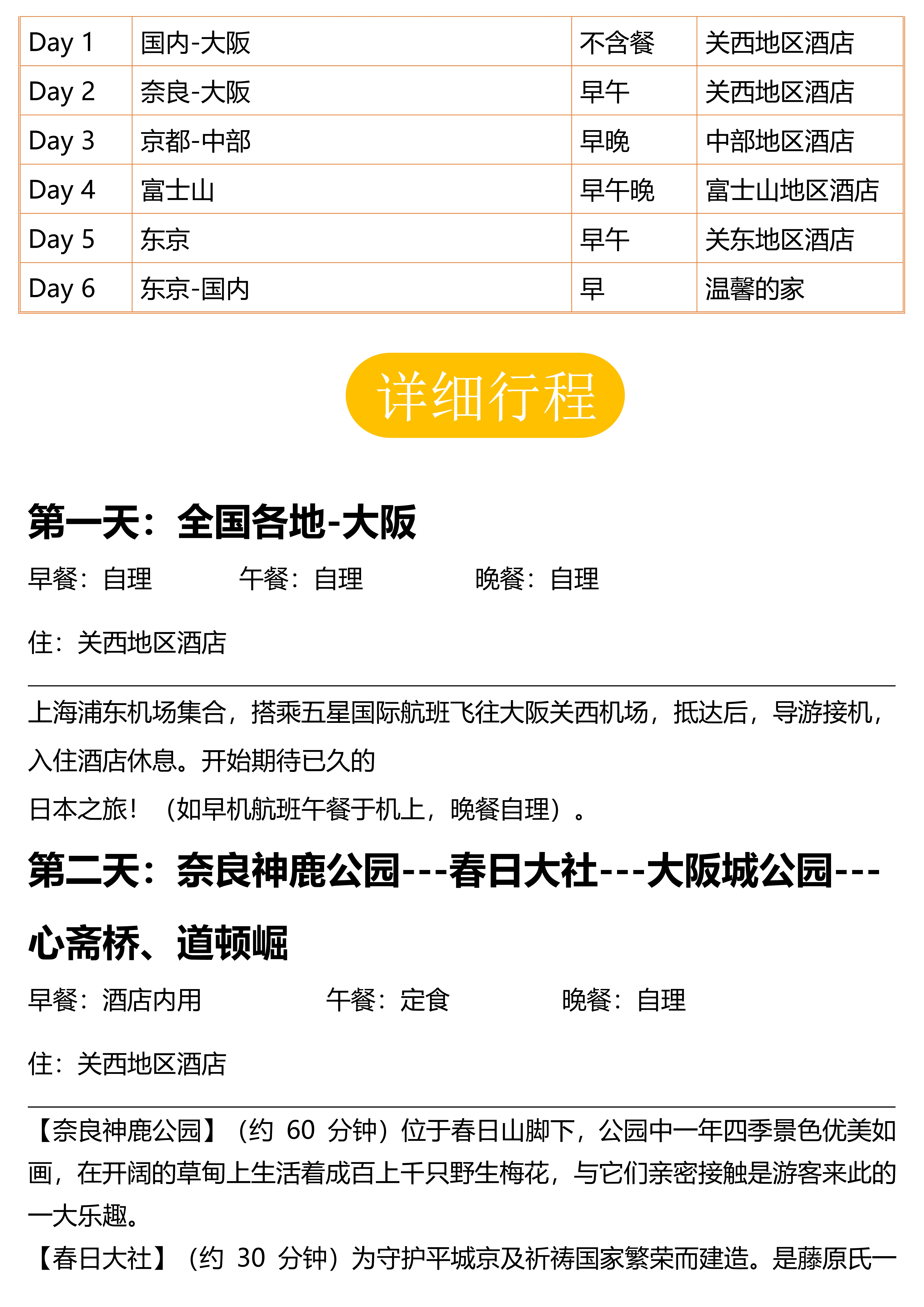 【日本本州】 东京/大版/京都/奈良/富士山 6 日心动之旅