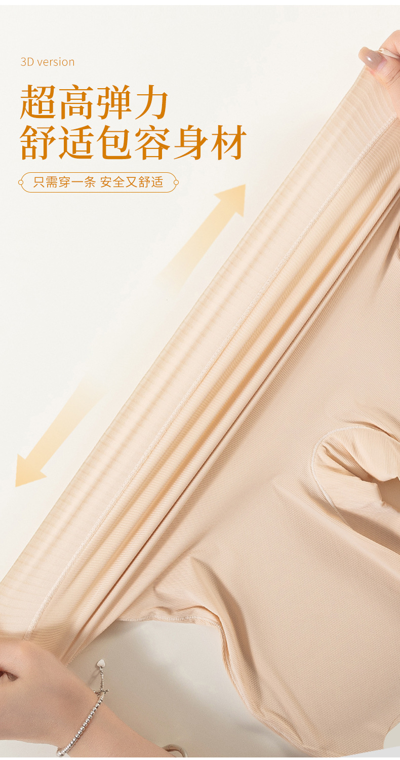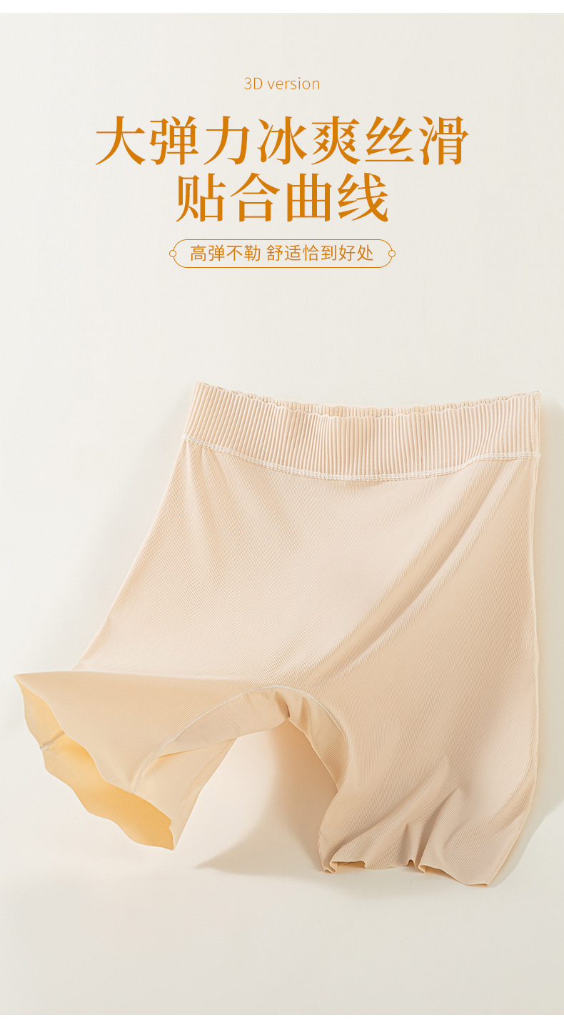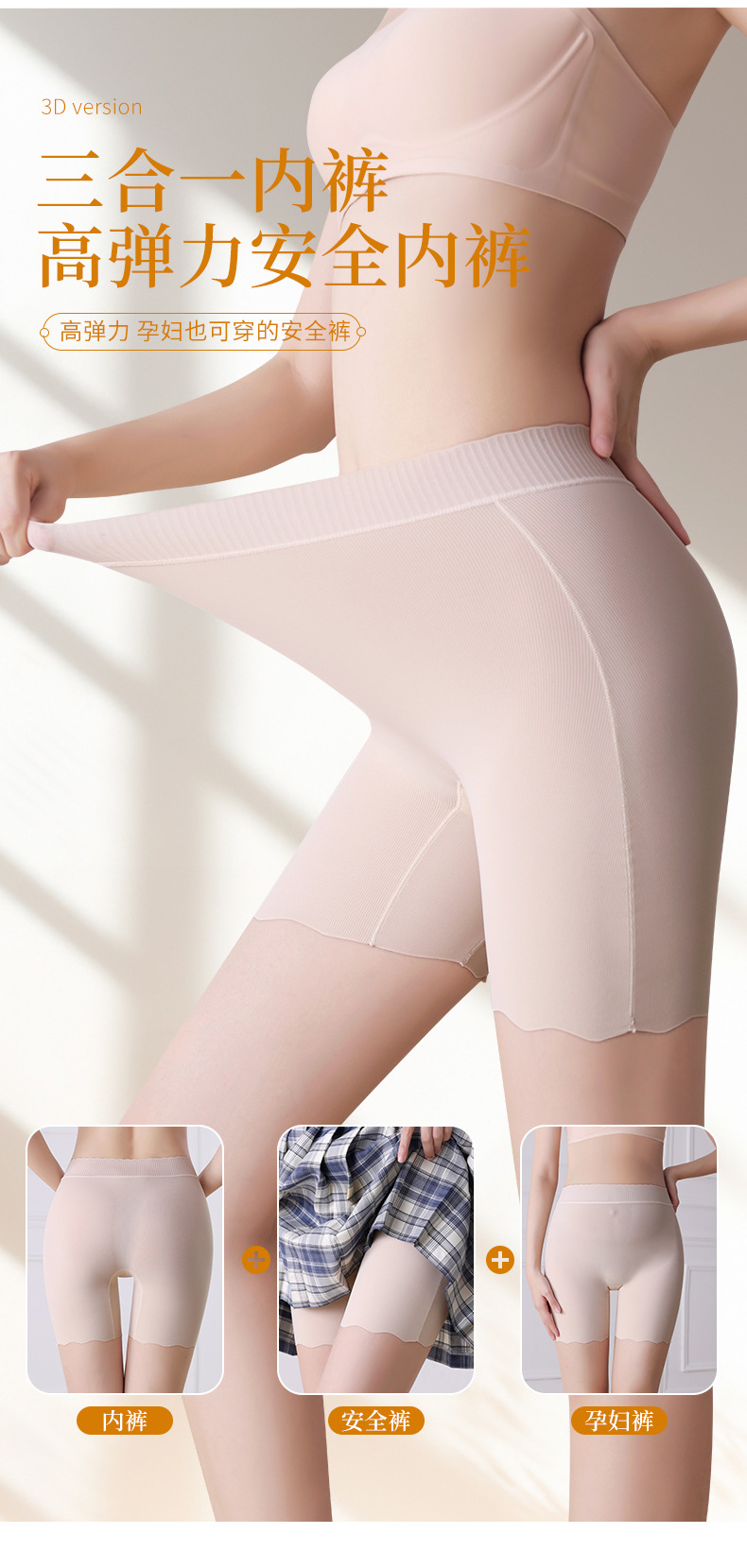 【瑜伽生活家】「买1送1!到手两条」一片式无痕安全裤 三合一高腰安全裤 冰丝大码胖MM内衣内裤女夏季平角裤防走光打底裤下装