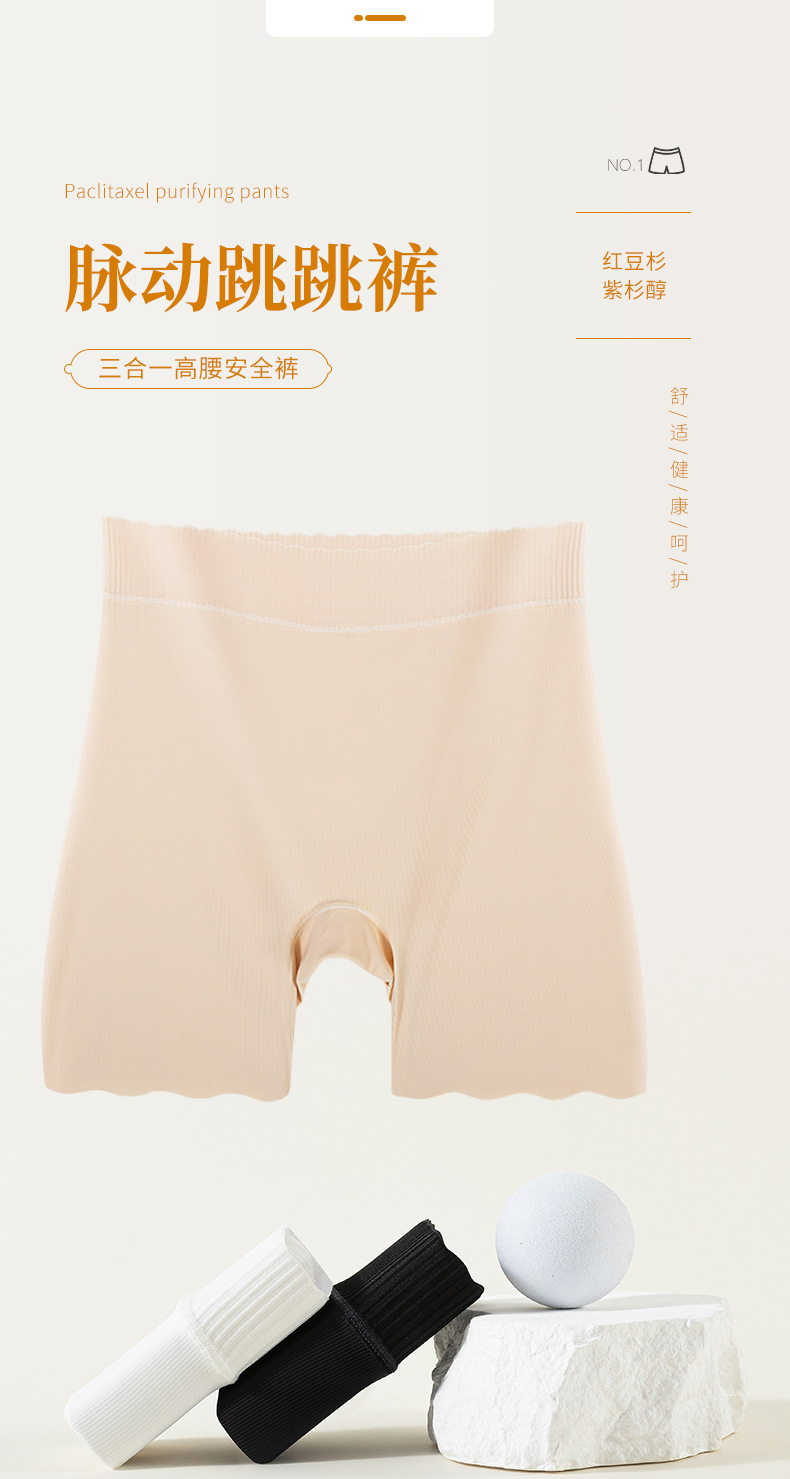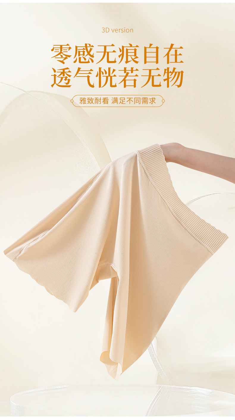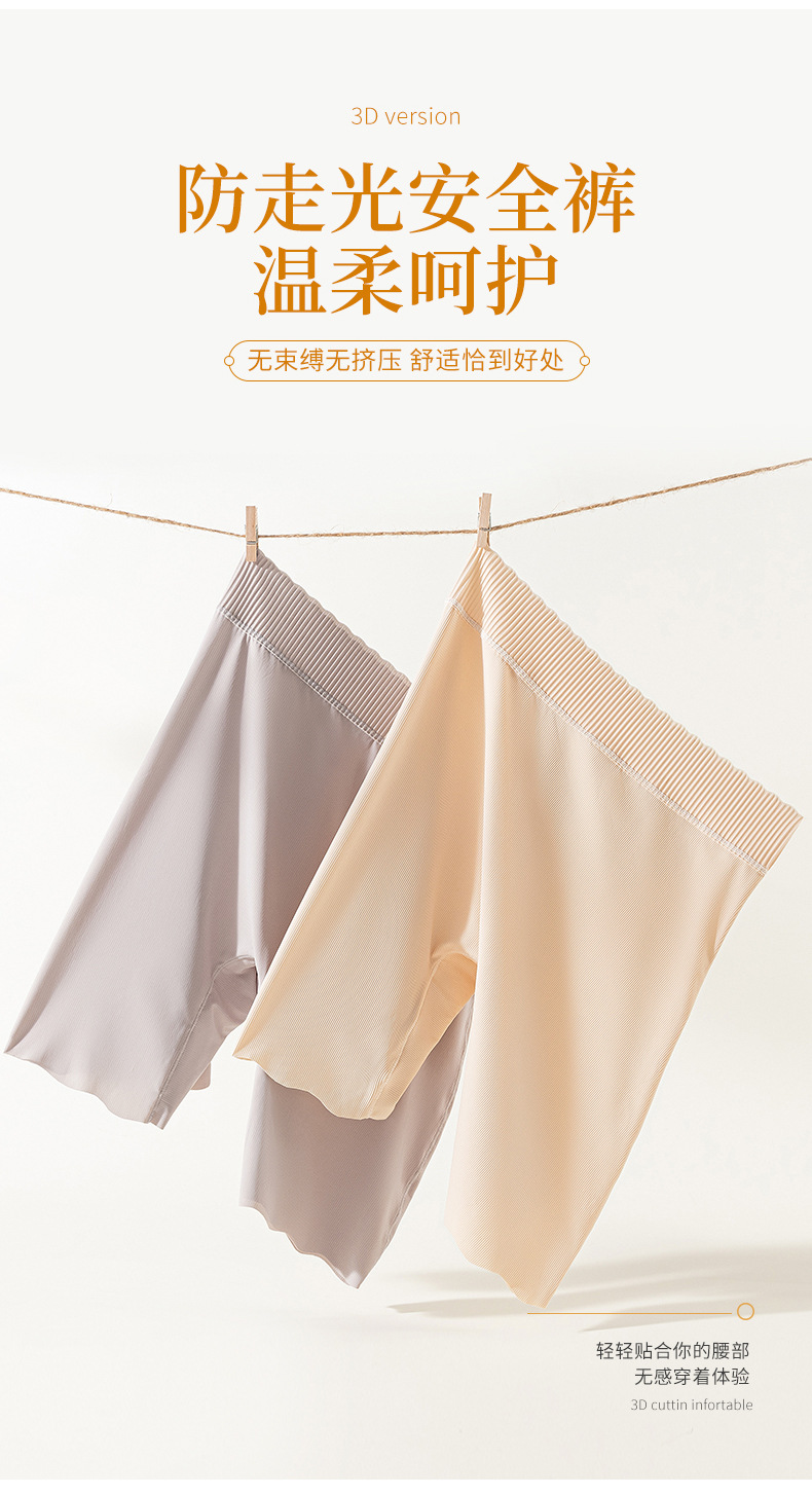 【瑜伽生活家】「买1送1!到手两条」一片式无痕安全裤 三合一高腰安全裤 冰丝大码胖MM内衣内裤女夏季平角裤防走光打底裤下装