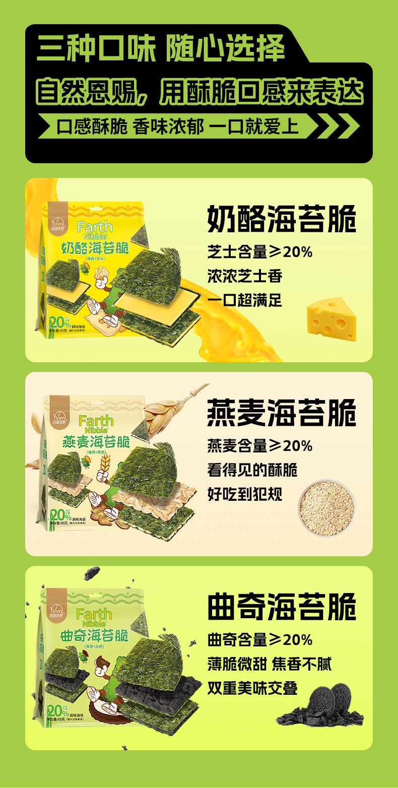 【超值6盒装!法思觅语芝士海苔脆】燕麦海苔夹心曲奇海苔脆,口感酥脆美味,令人回味无穷。每一口都是一种享受,袋装40g零食休闲食品健康