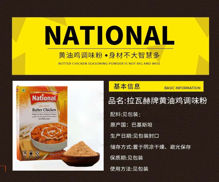 【中欧班列精选】巴基斯坦进口拉瓦赫BUTTER CHICKEN 黄油鸡调味料粉50g/盒 QB