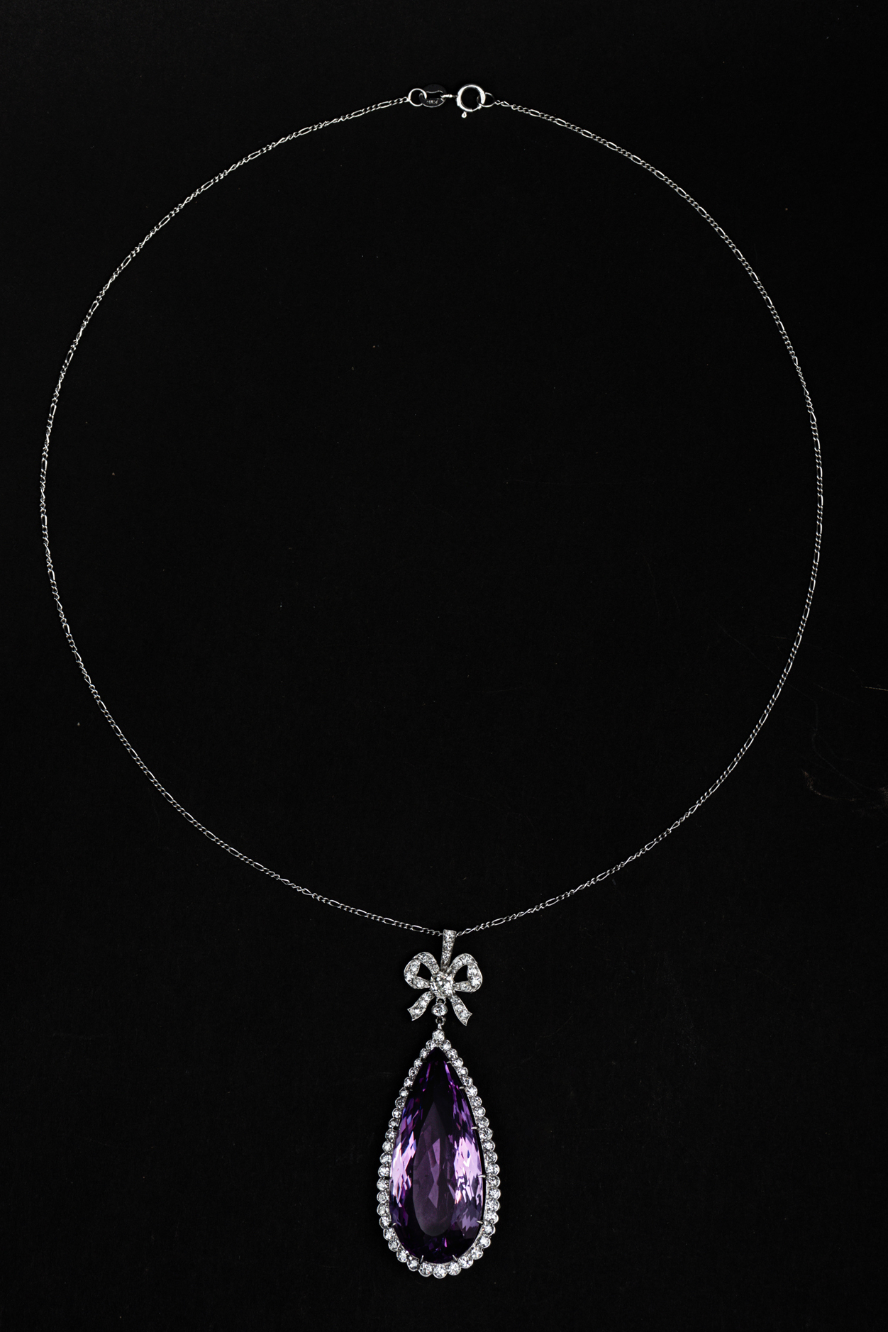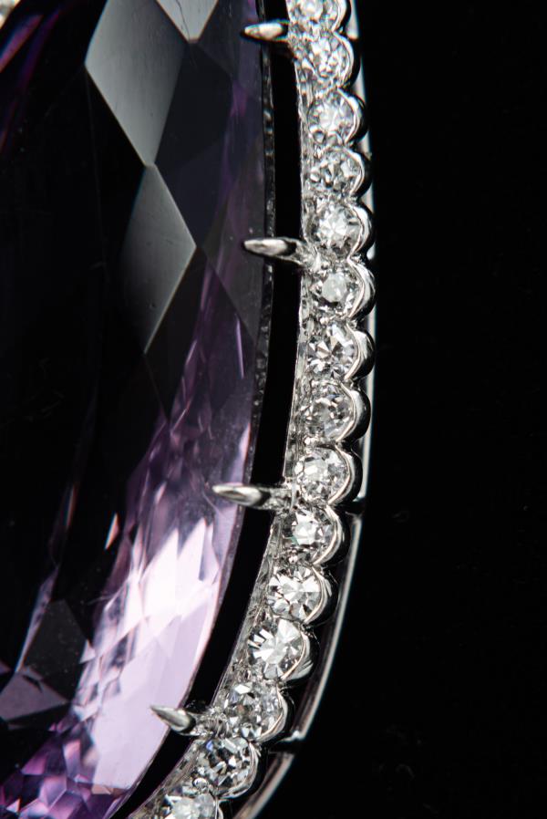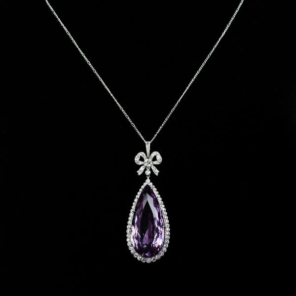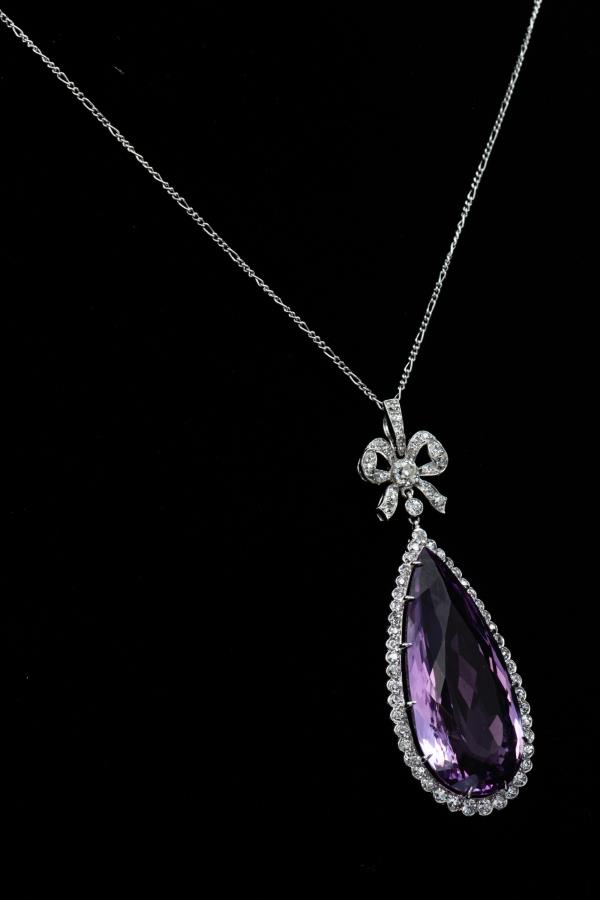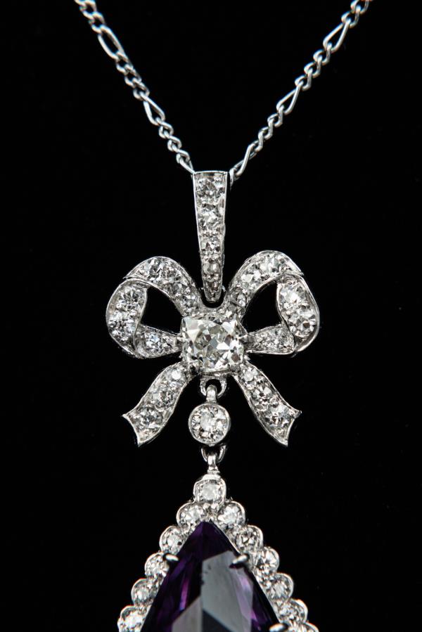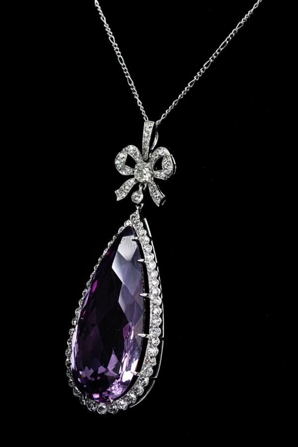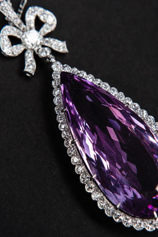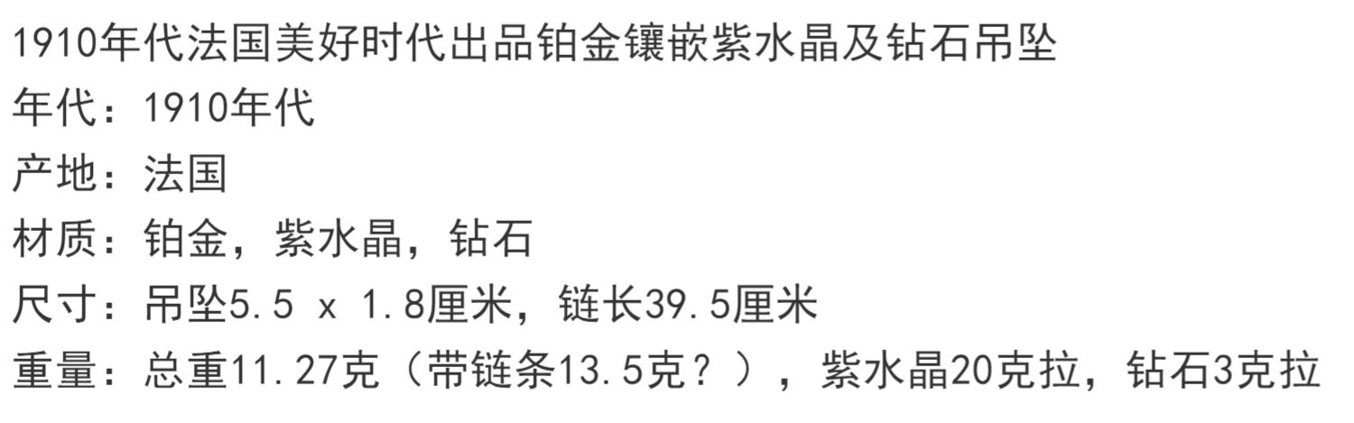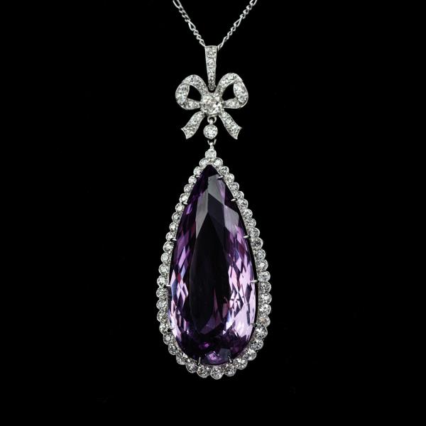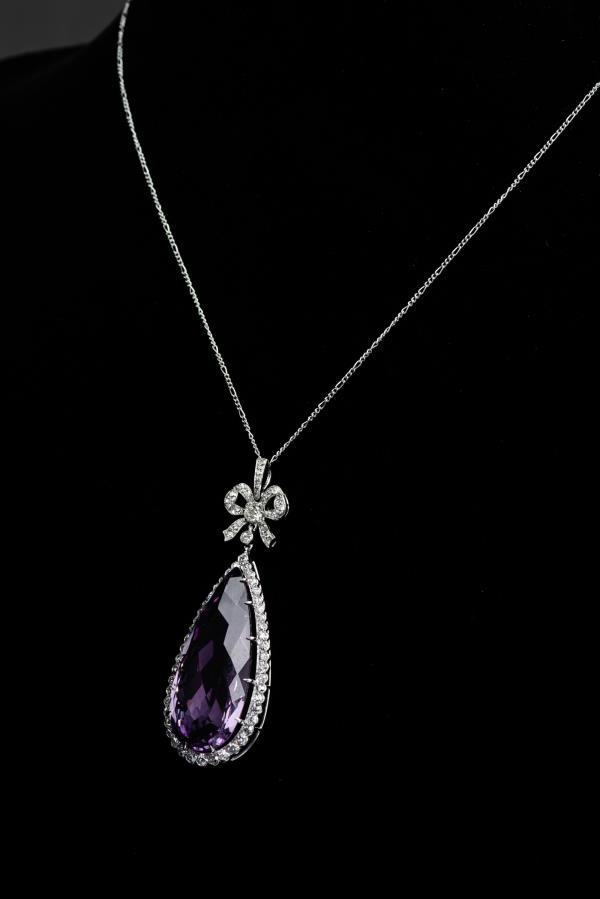 独角鹿西洋古董珠宝首饰法国美好时代铂金镶嵌紫水晶钻石吊坠项链