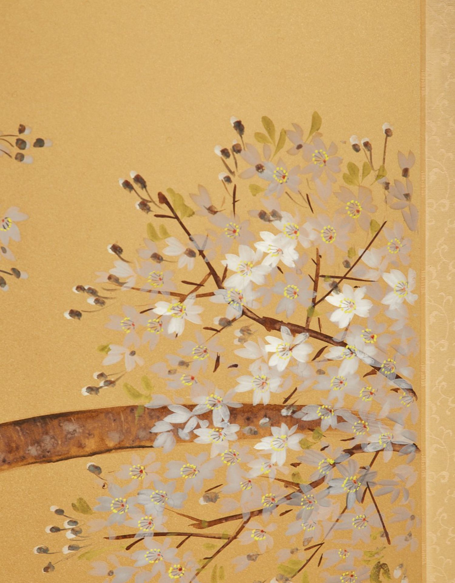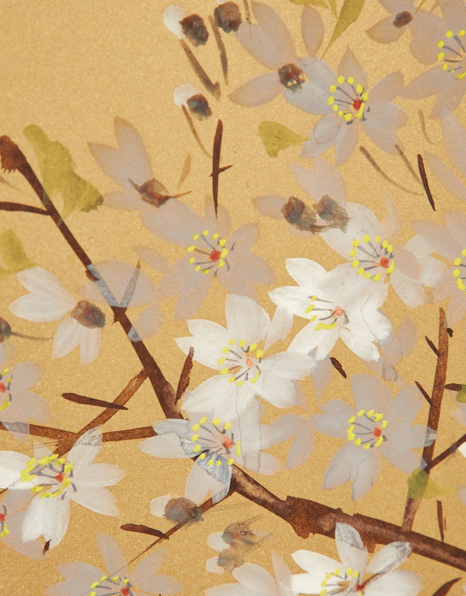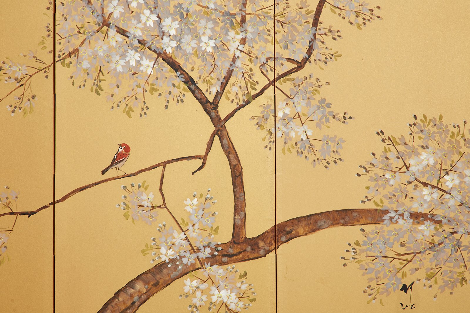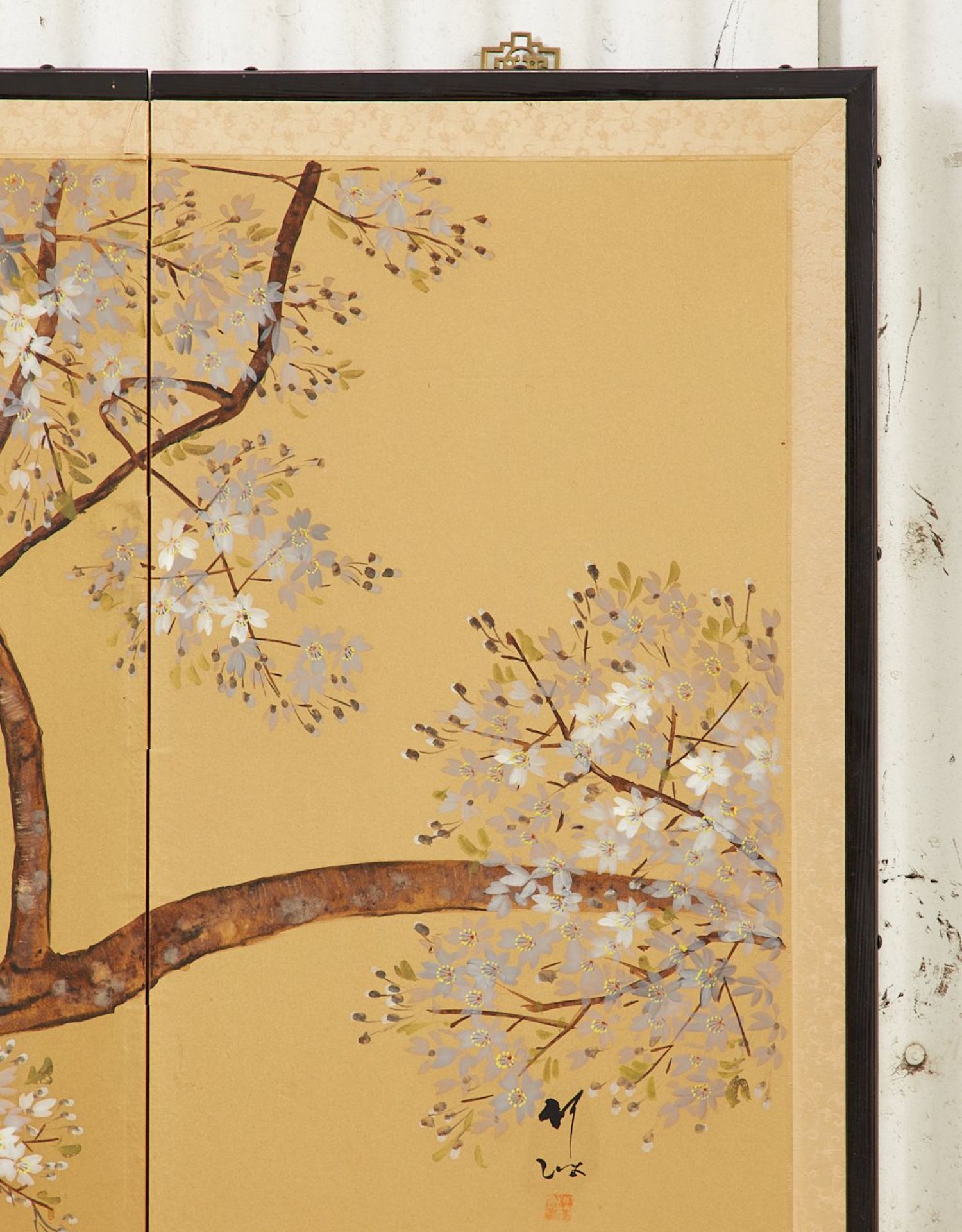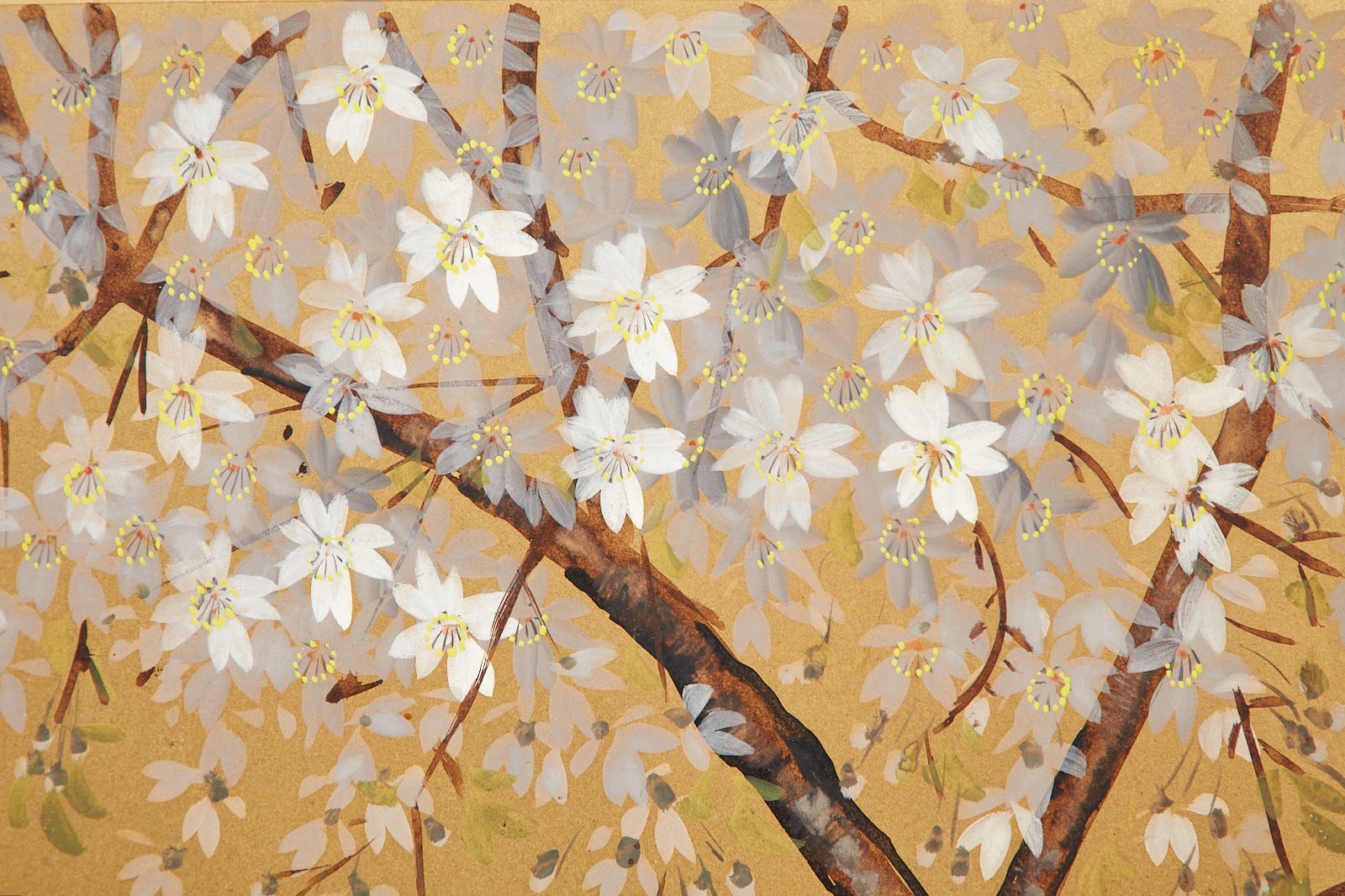 独角鹿西洋古董日本昭和时期手工画樱花四页屏风日式