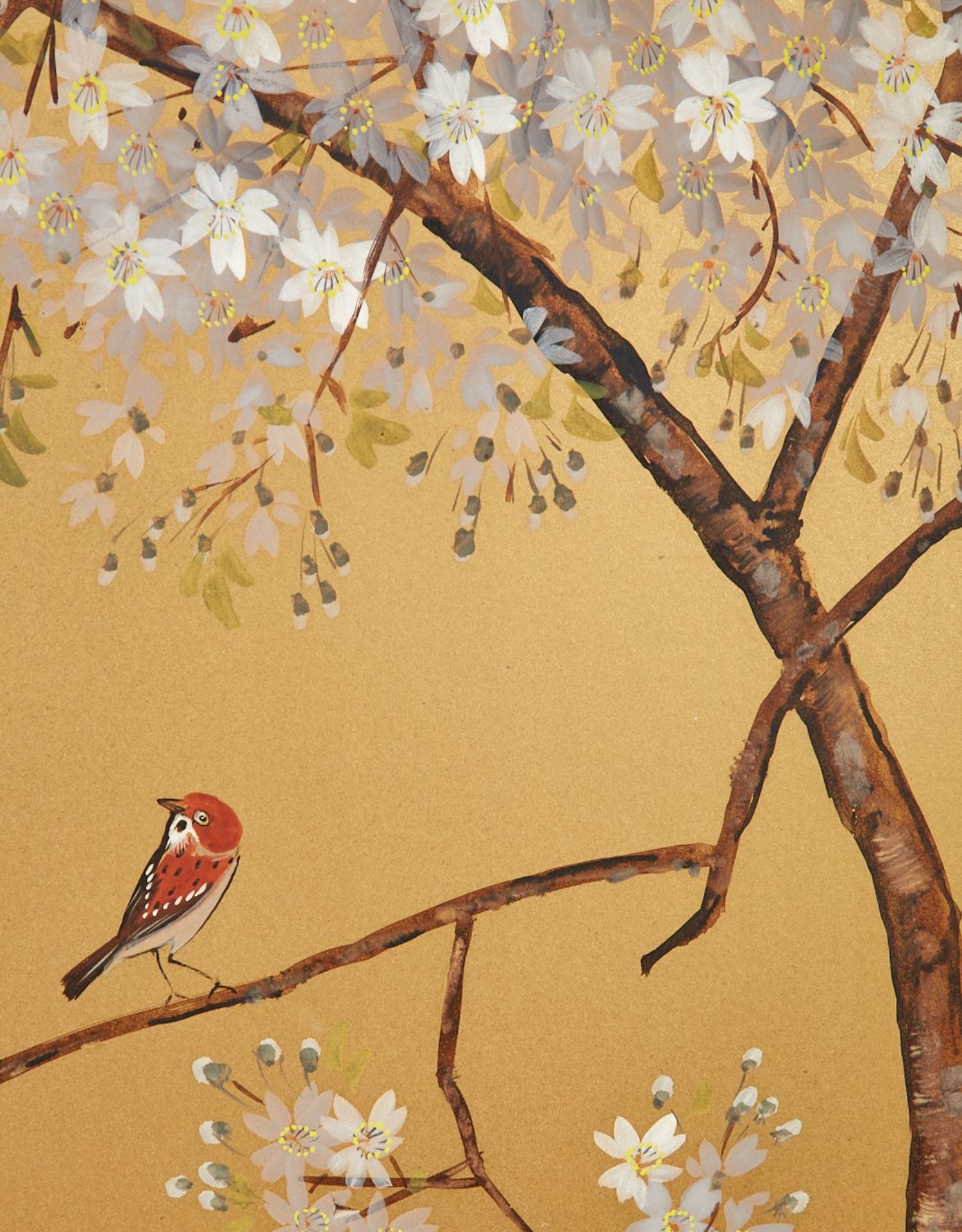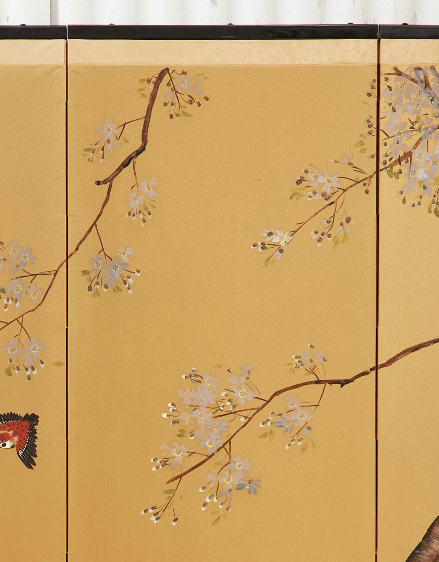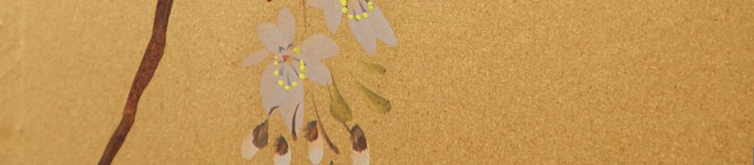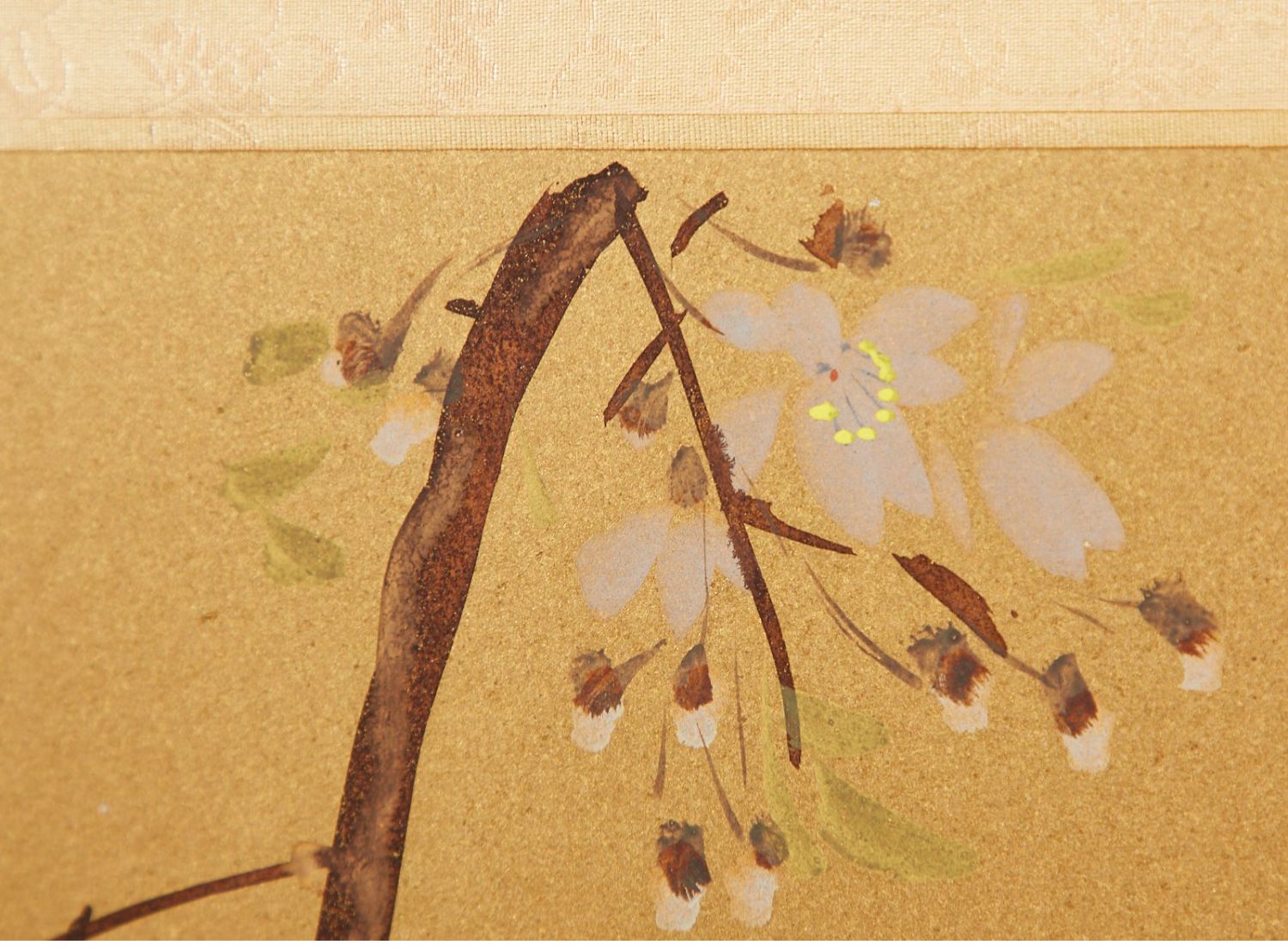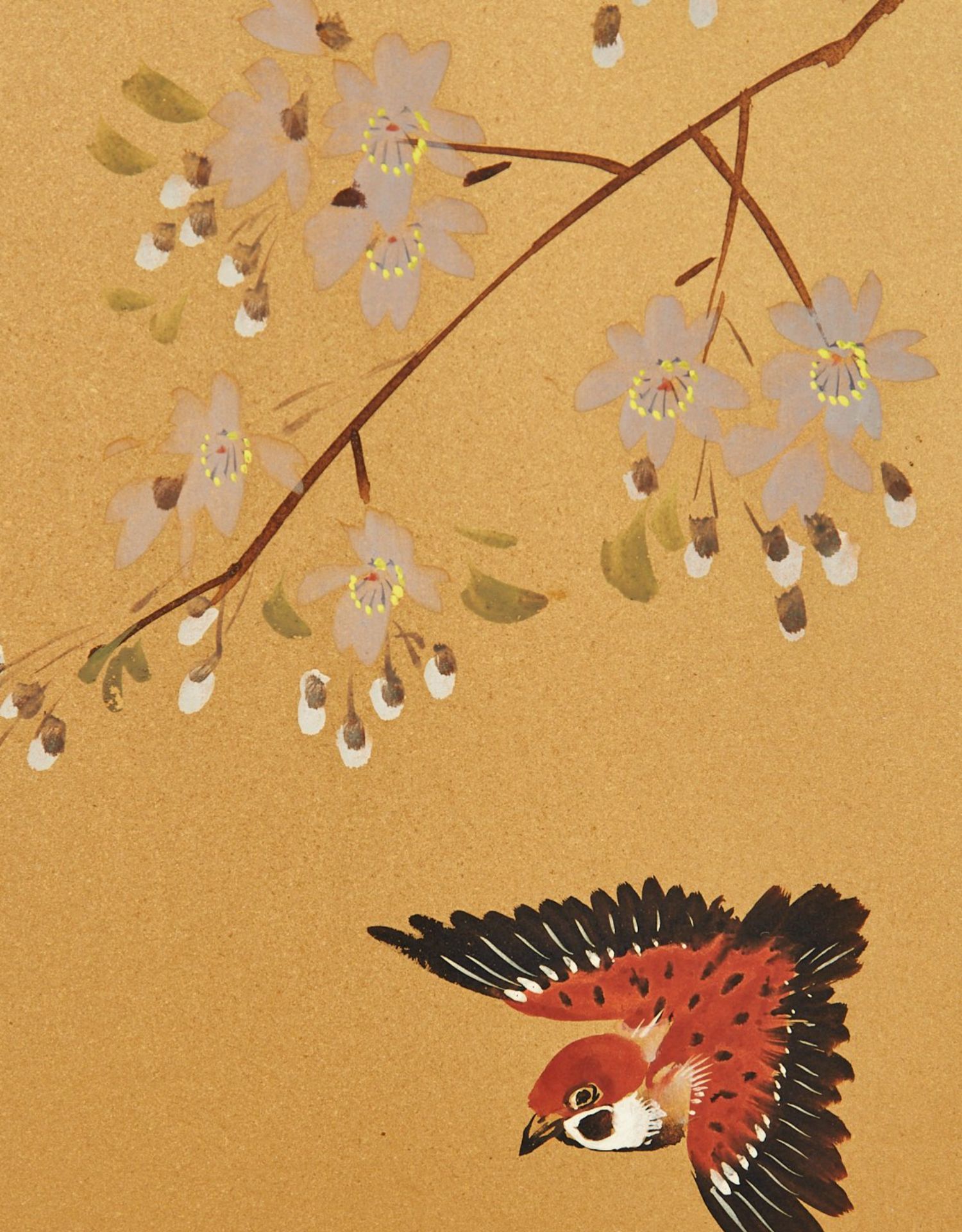 独角鹿西洋古董日本昭和时期手工画樱花四页屏风日式