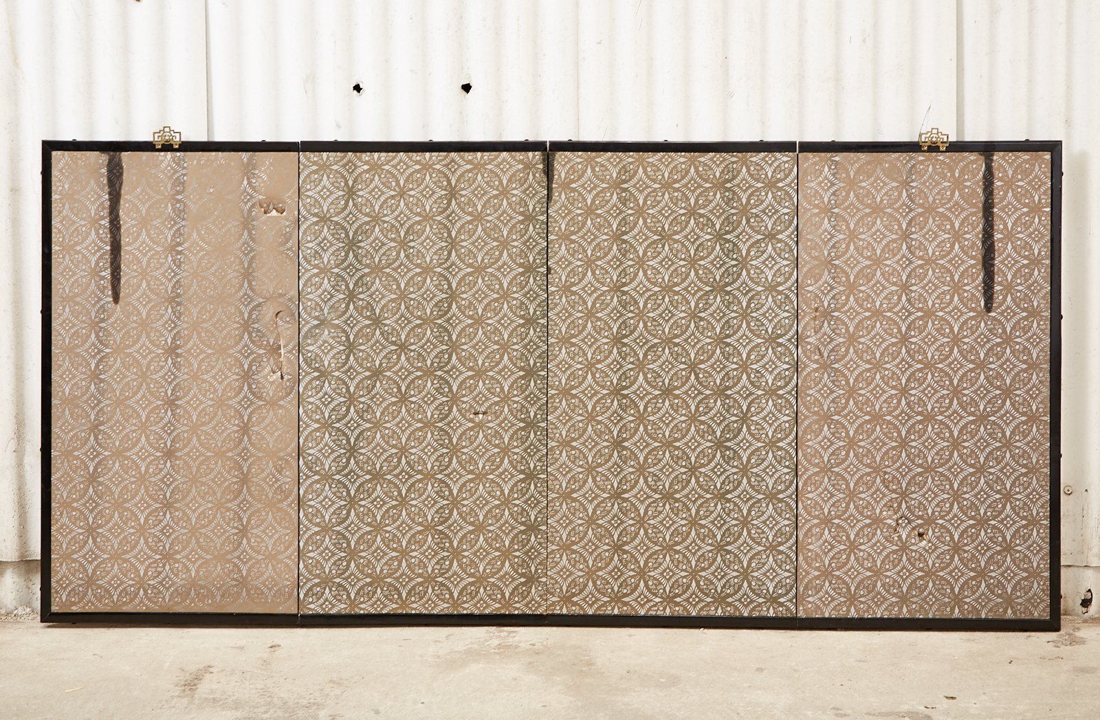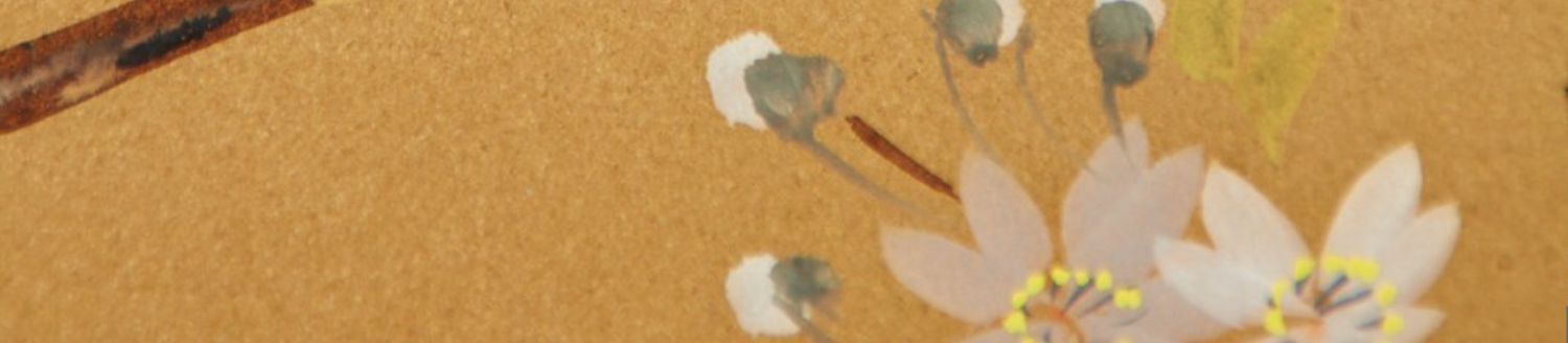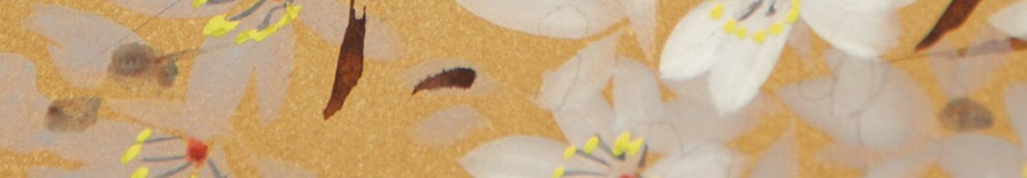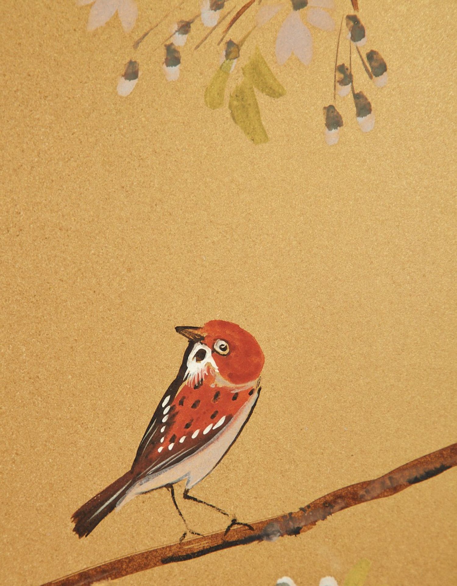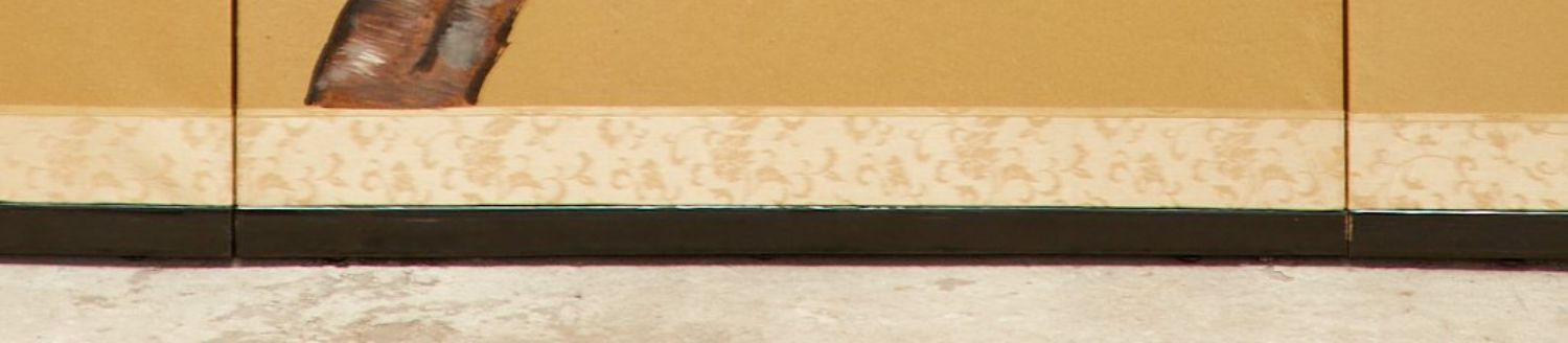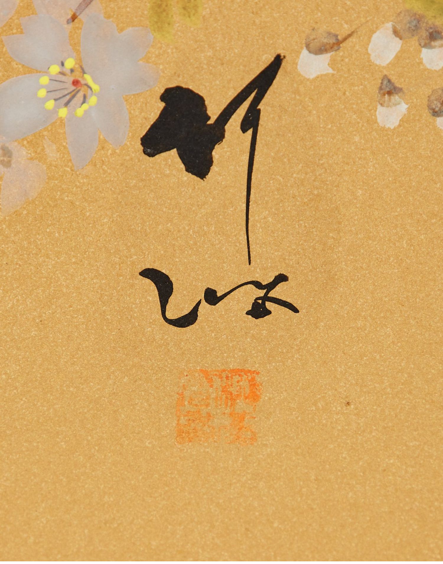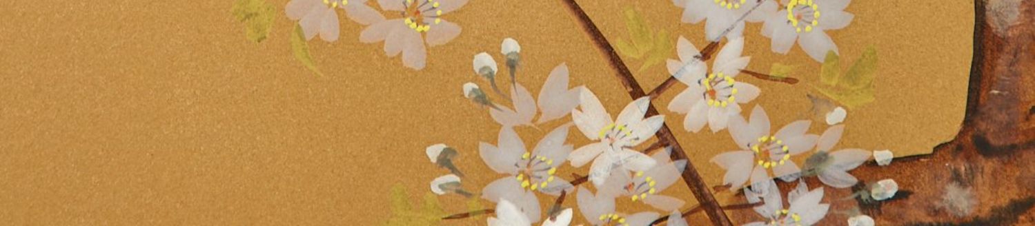 独角鹿西洋古董日本昭和时期手工画樱花四页屏风日式