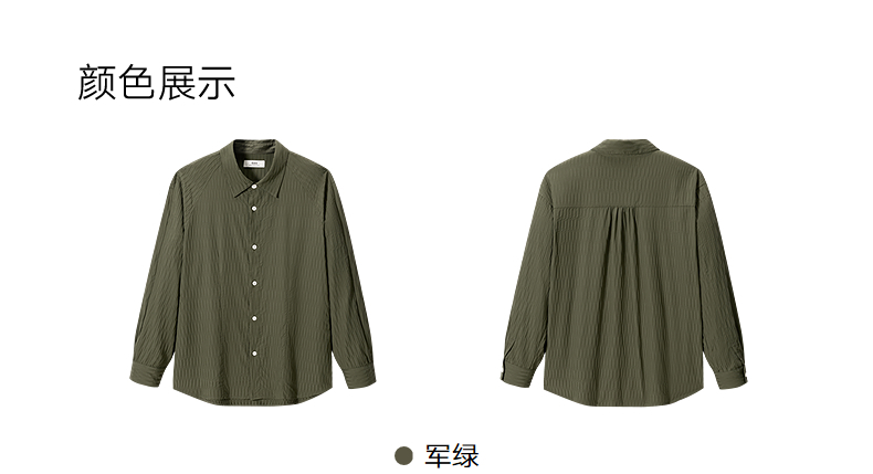 GXG男装 军绿色肌理感休闲时尚翻领长袖衬衫25年春热卖G25X031011
