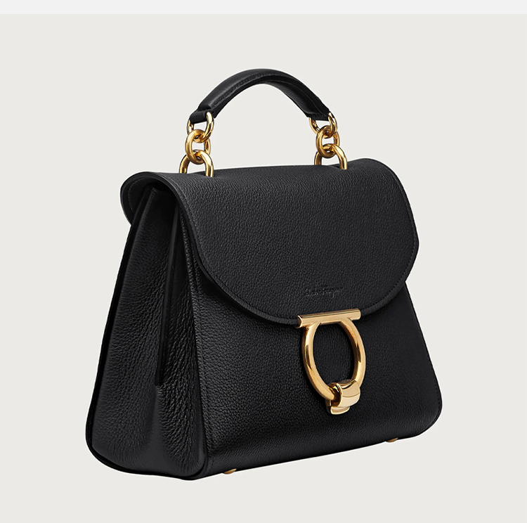FERRAGAMO 菲拉格慕 女士小牛皮 GANCINI 顶部手提包 黑色 21 H493 720168