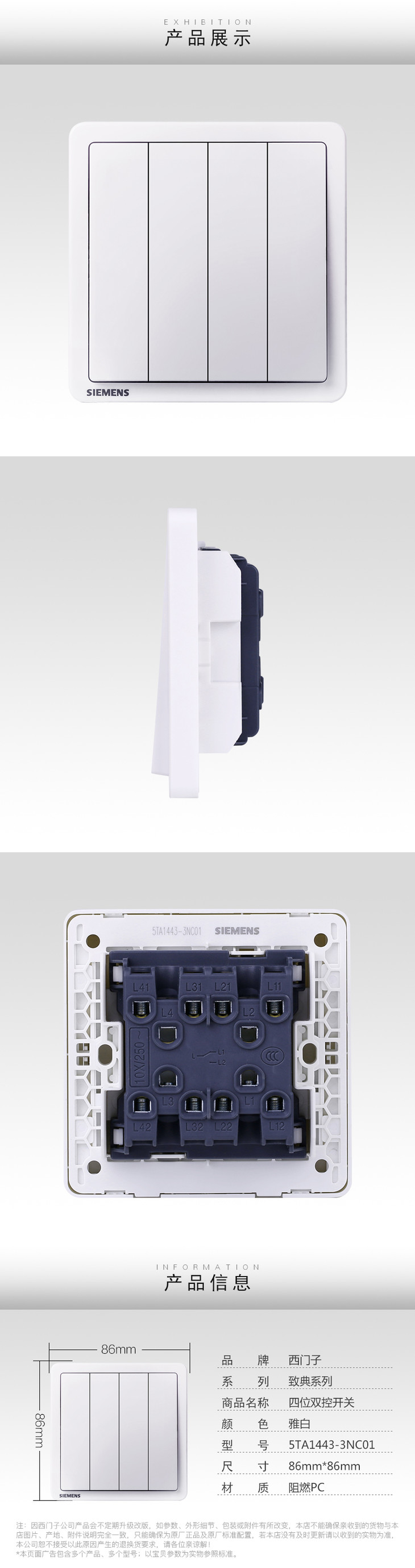 西门子开关插座面板远景雅白色10A三孔插座带开关