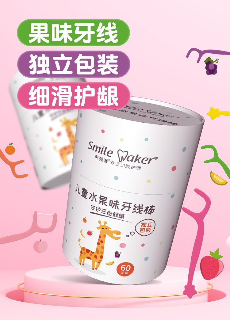 【品牌直供】思美客果味儿童牙线棒 60支独立装