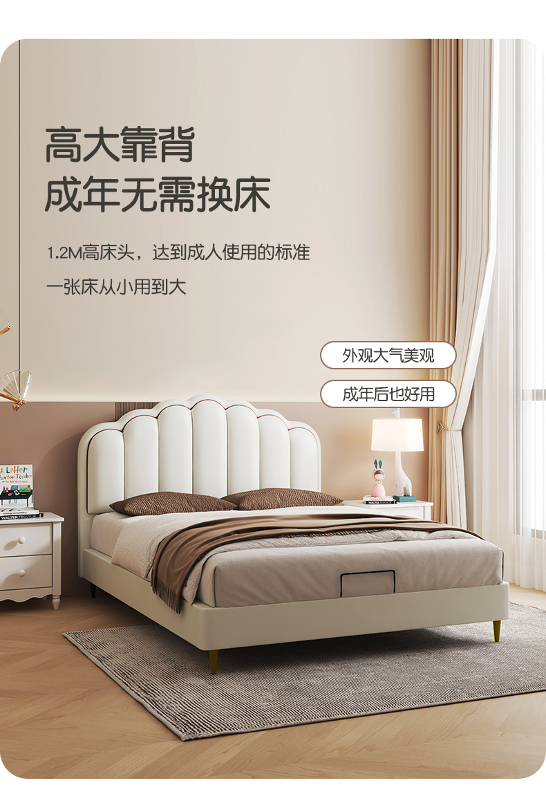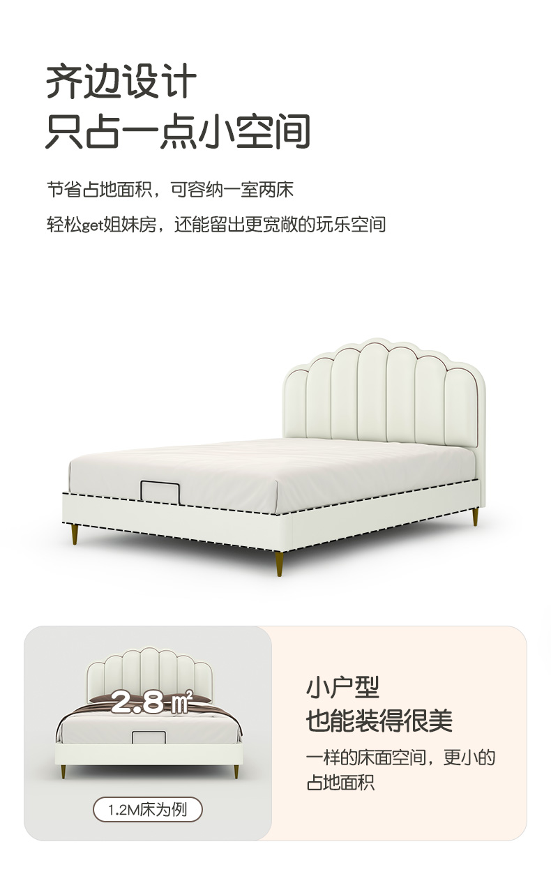 喜梦宝贝壳床儿童床现代简约网红扇形卧室软包床公主床女孩子床