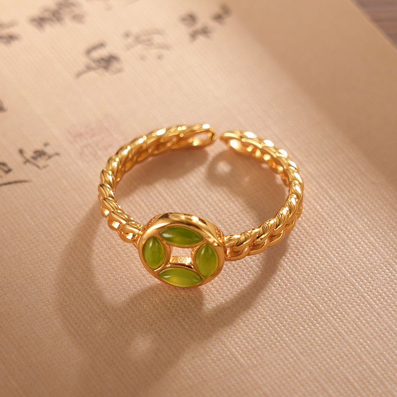 【寓意】:戒指以足银精制,古法工艺打造,巧妙融合铜钱元素,整体色泽温润,华而不炫,寓意财源广进,招财聚富。