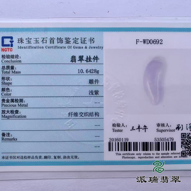 派瑞翡翠 翡翠挂件 糯种 紫色