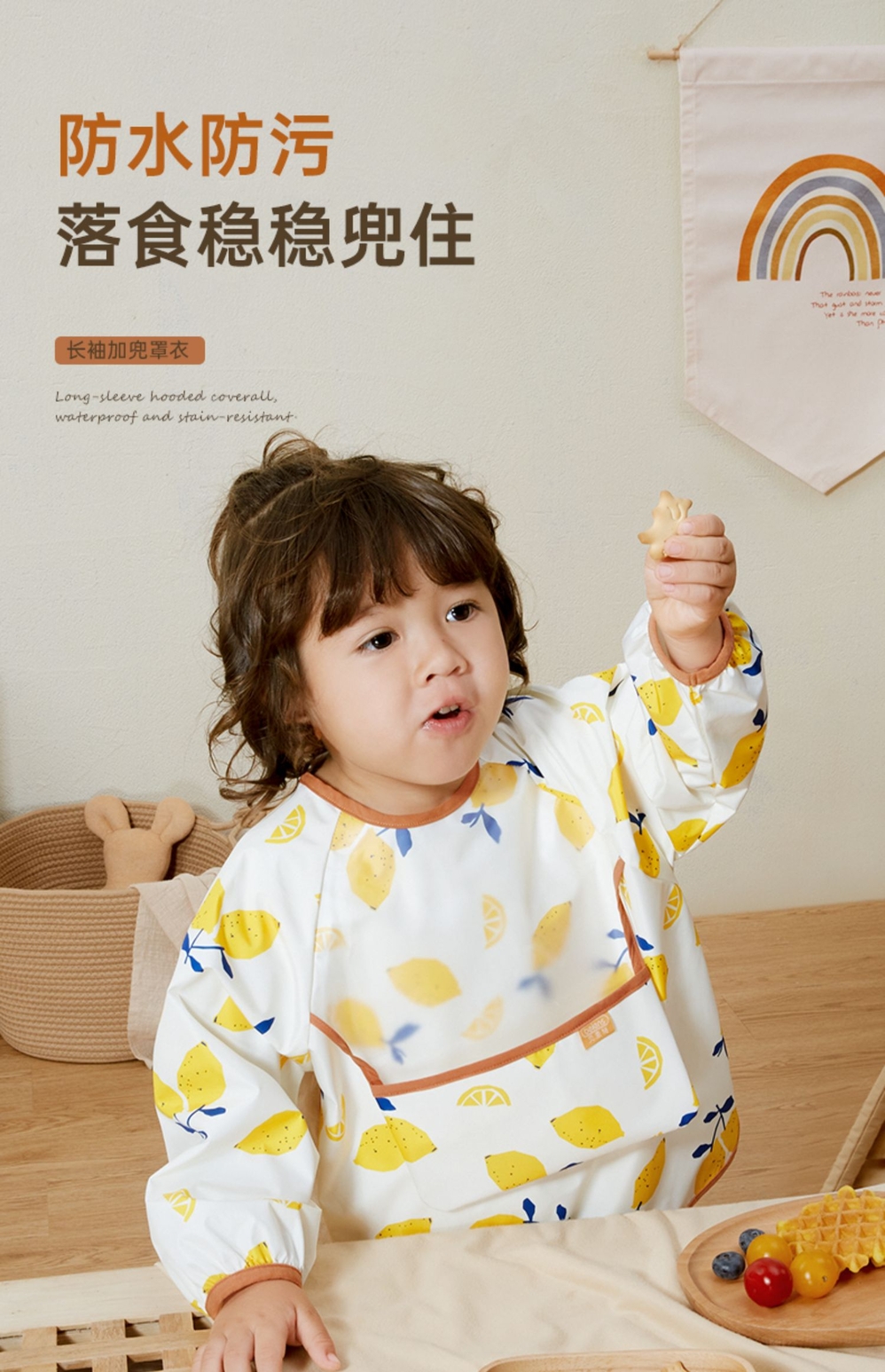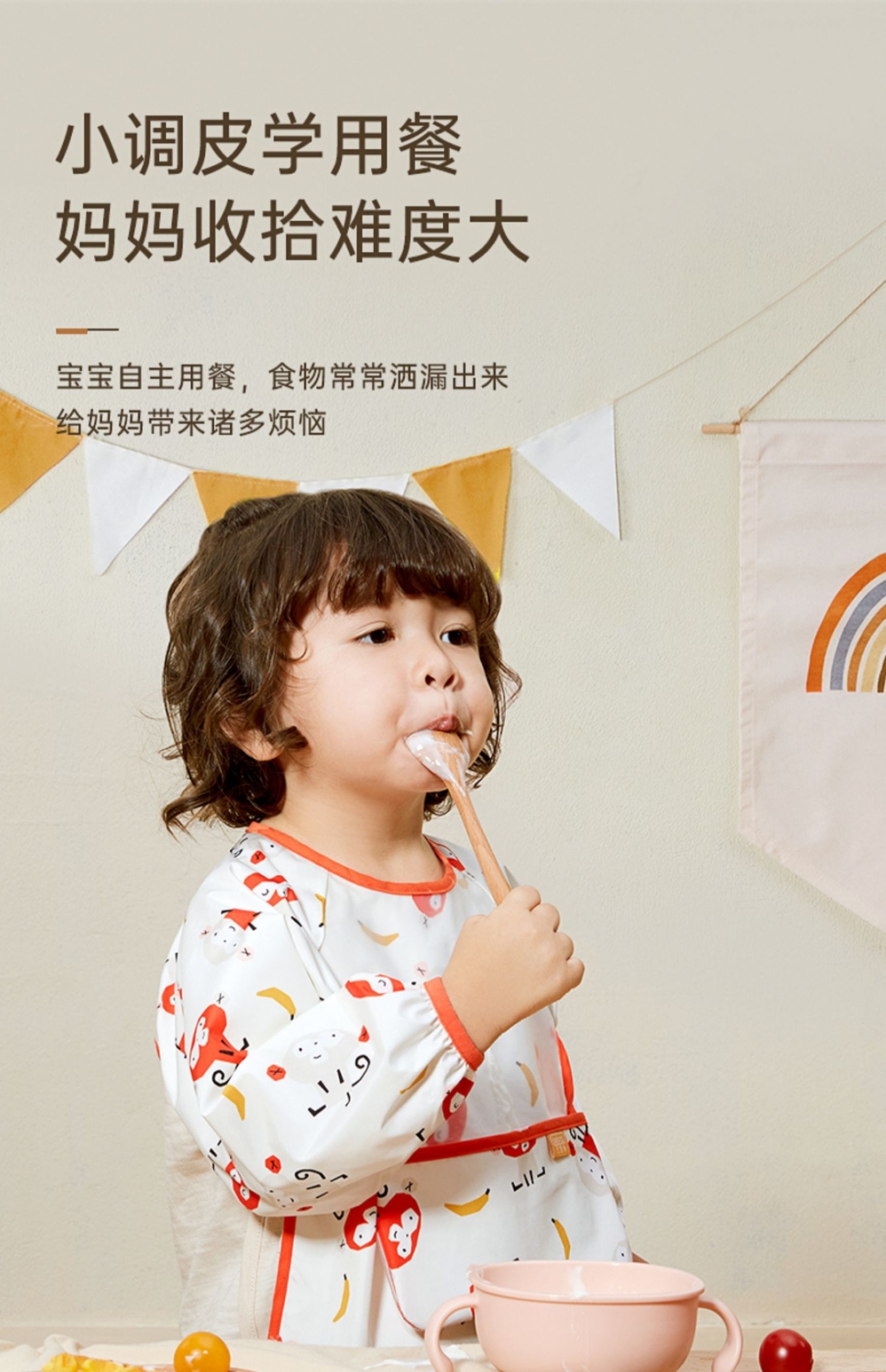 贝恩施宝宝罩衣婴儿吃饭围兜饭兜防水防脏儿童画画围裙反穿衣女男