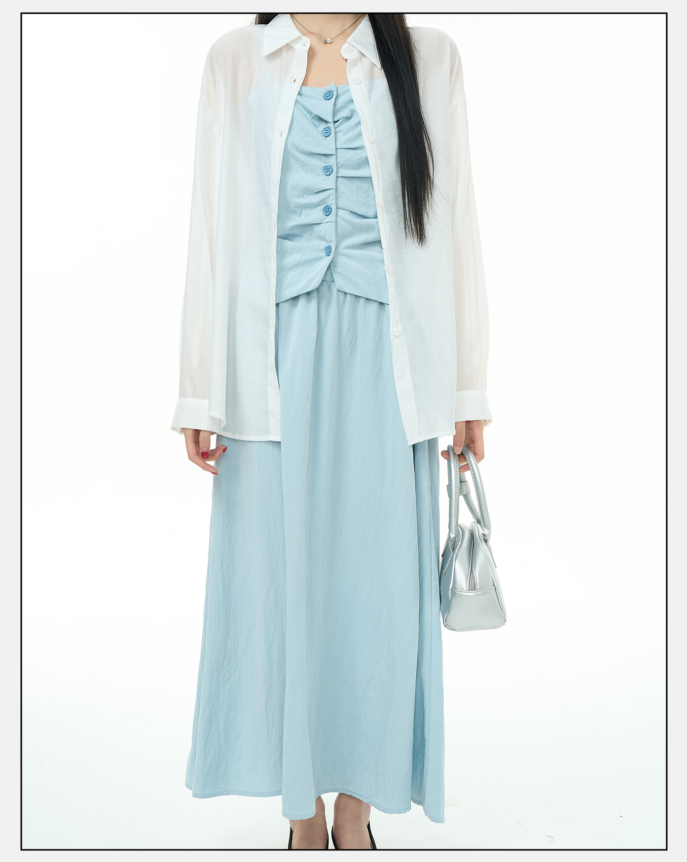 P&X设计师女装2025秋季连衣裙吊带衬衣套装长裙825314169 白/蓝