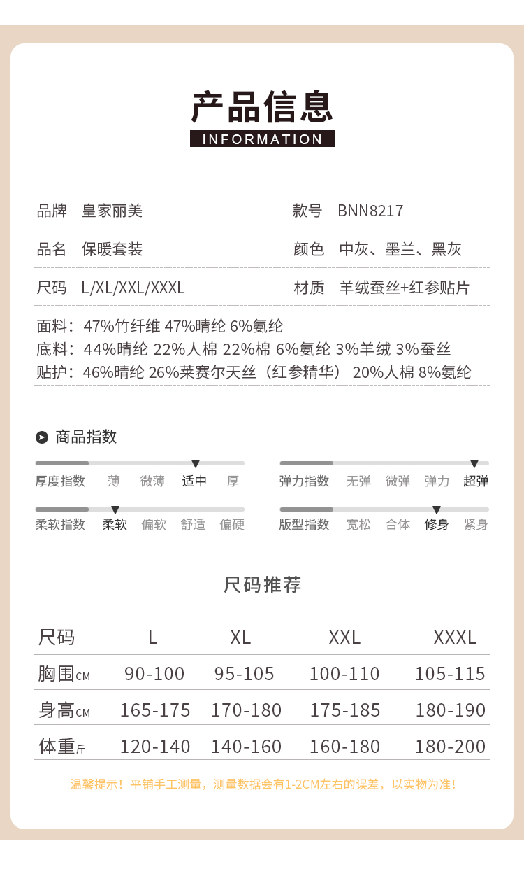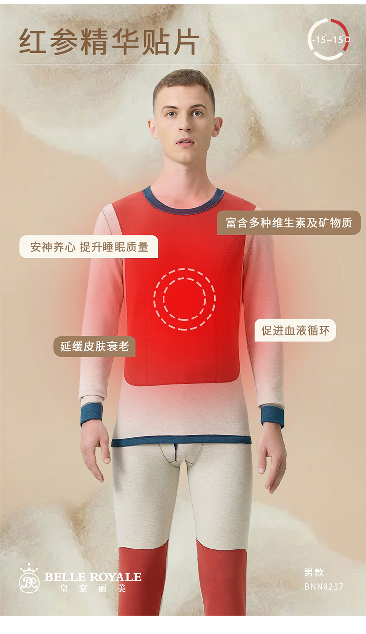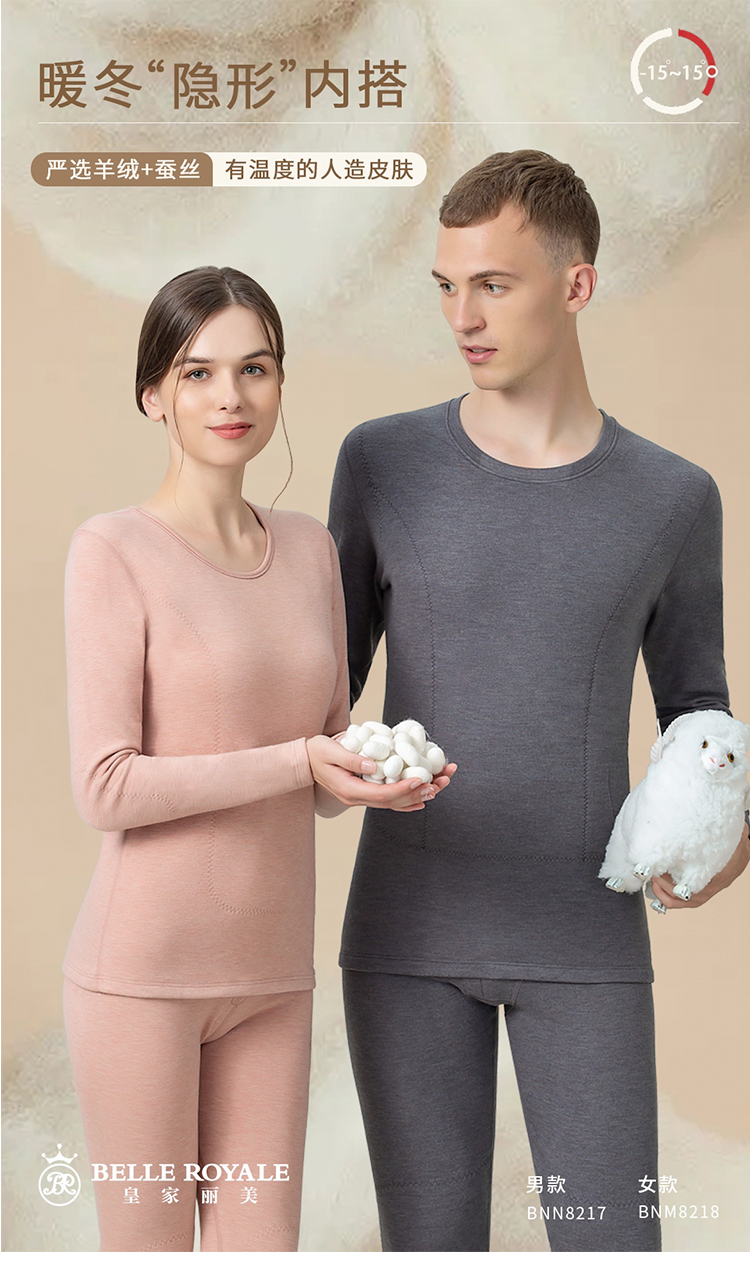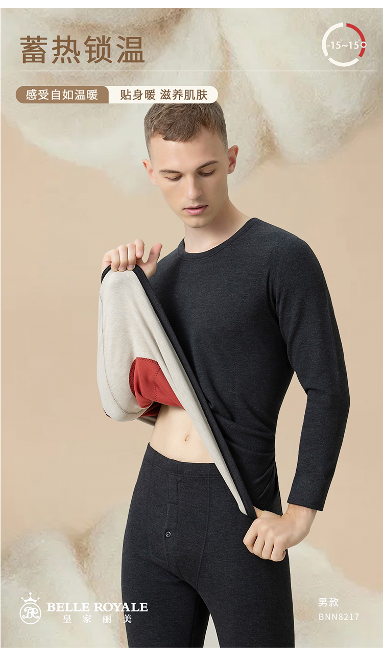 皇家丽美保暖内衣男士羊绒蚕丝无痕自发热套装BNN8217