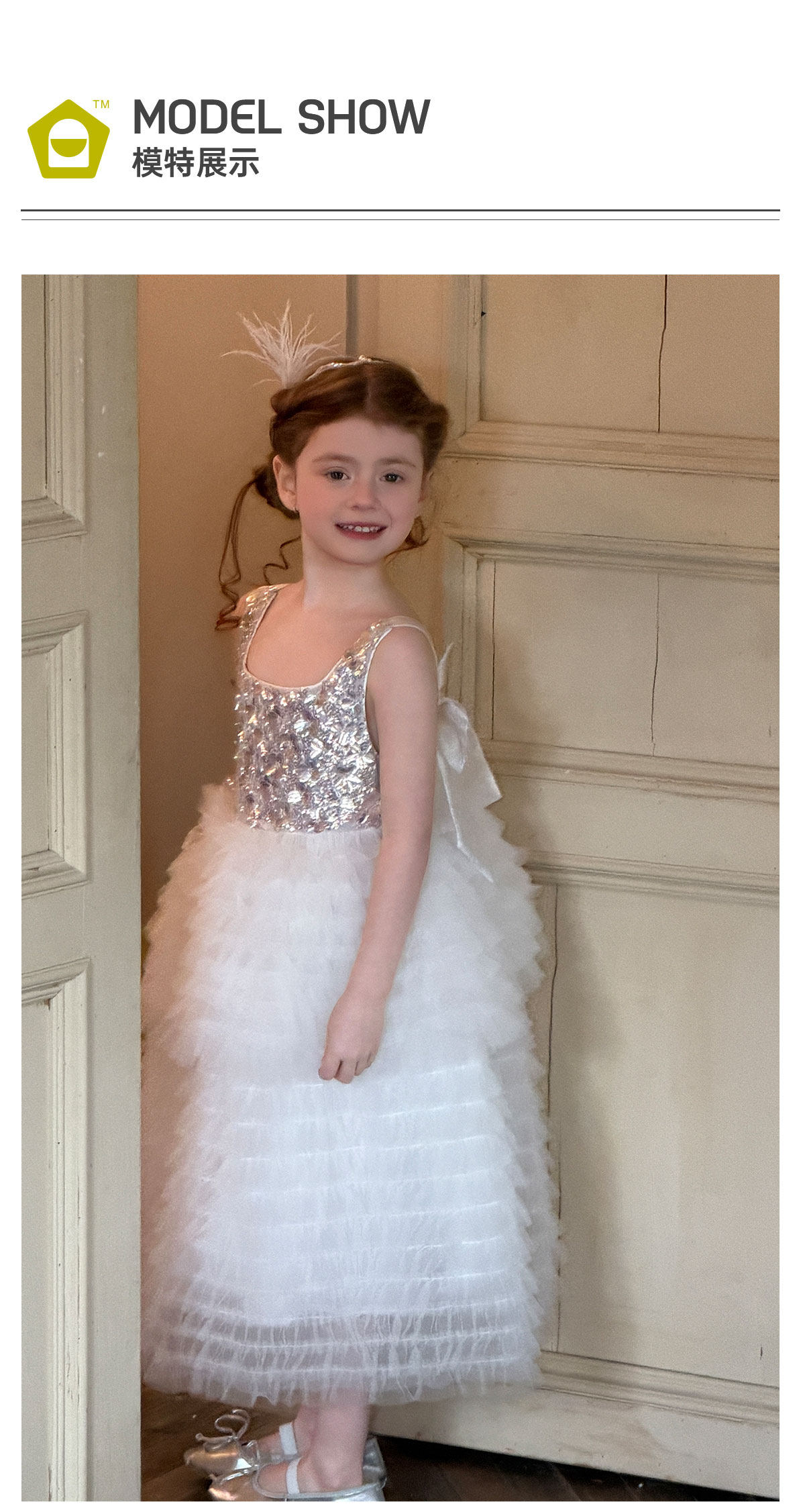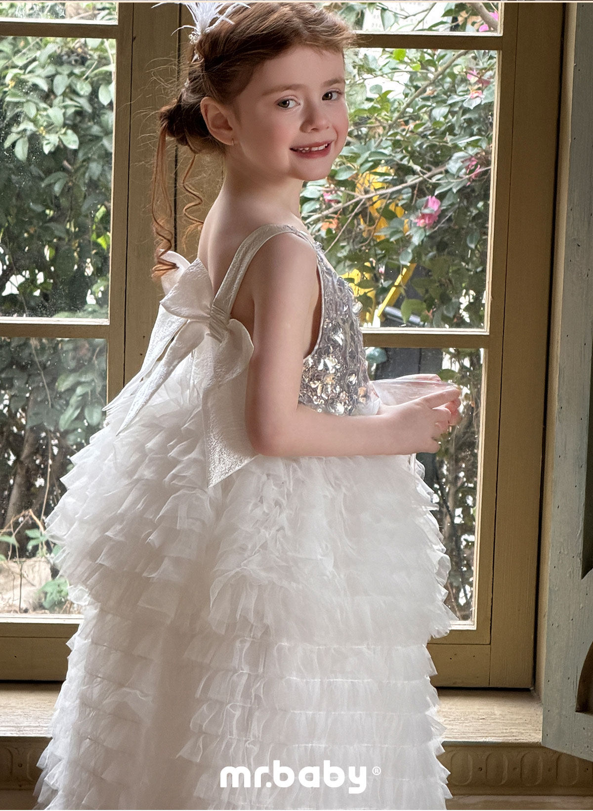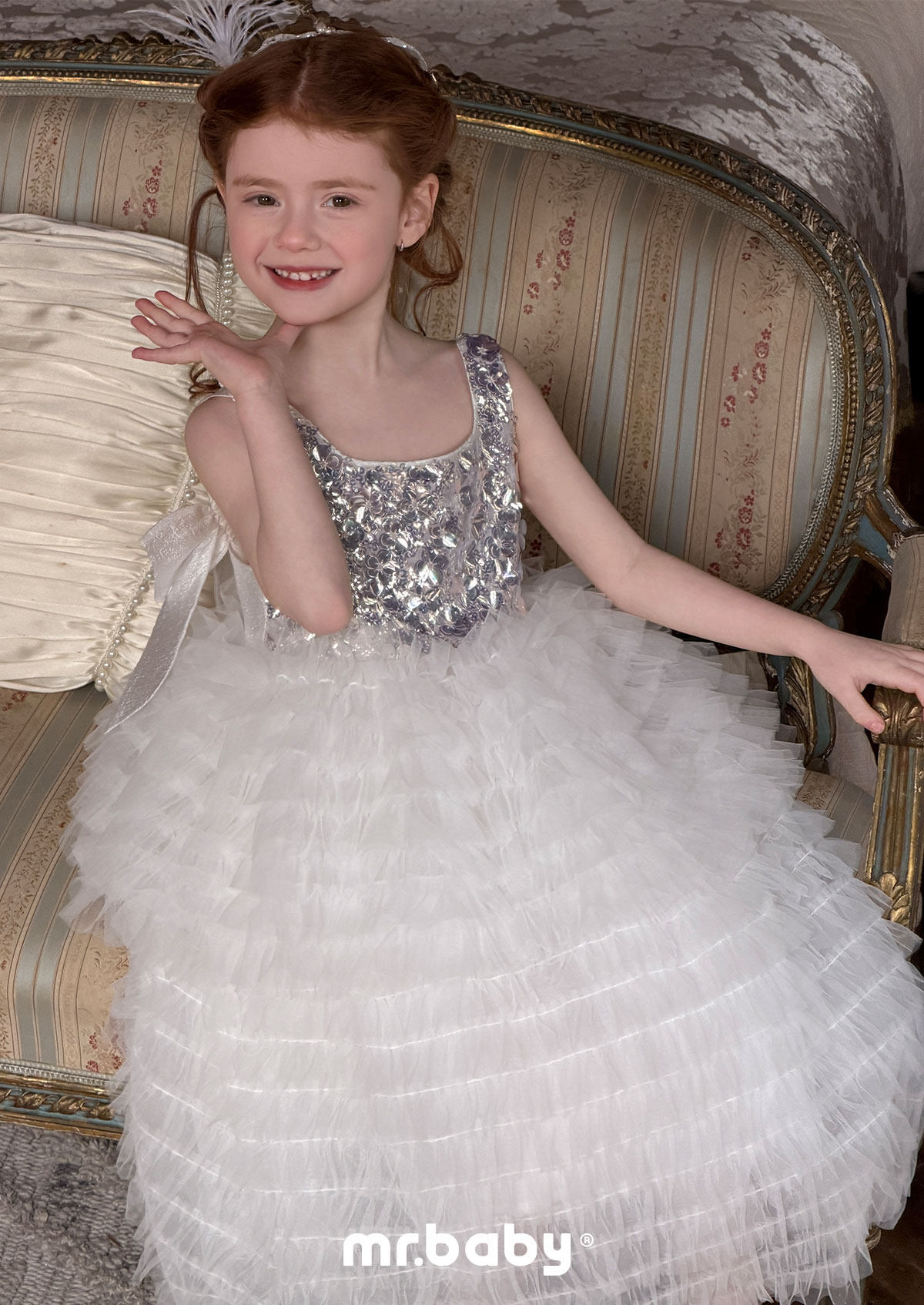 mr.baby女童亮片网纱公主裙白色蛋糕裙蓬蓬裙生日表演礼服连衣裙
