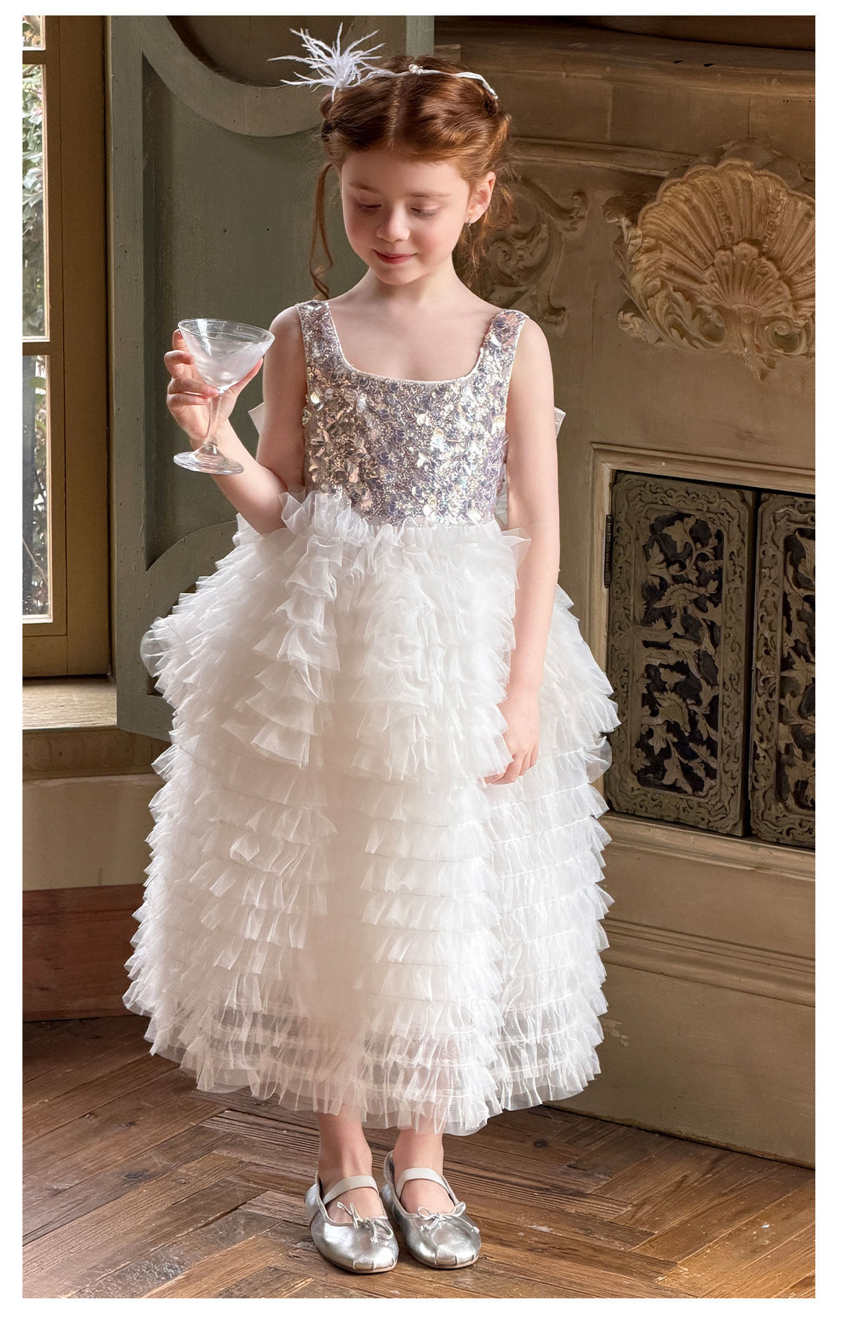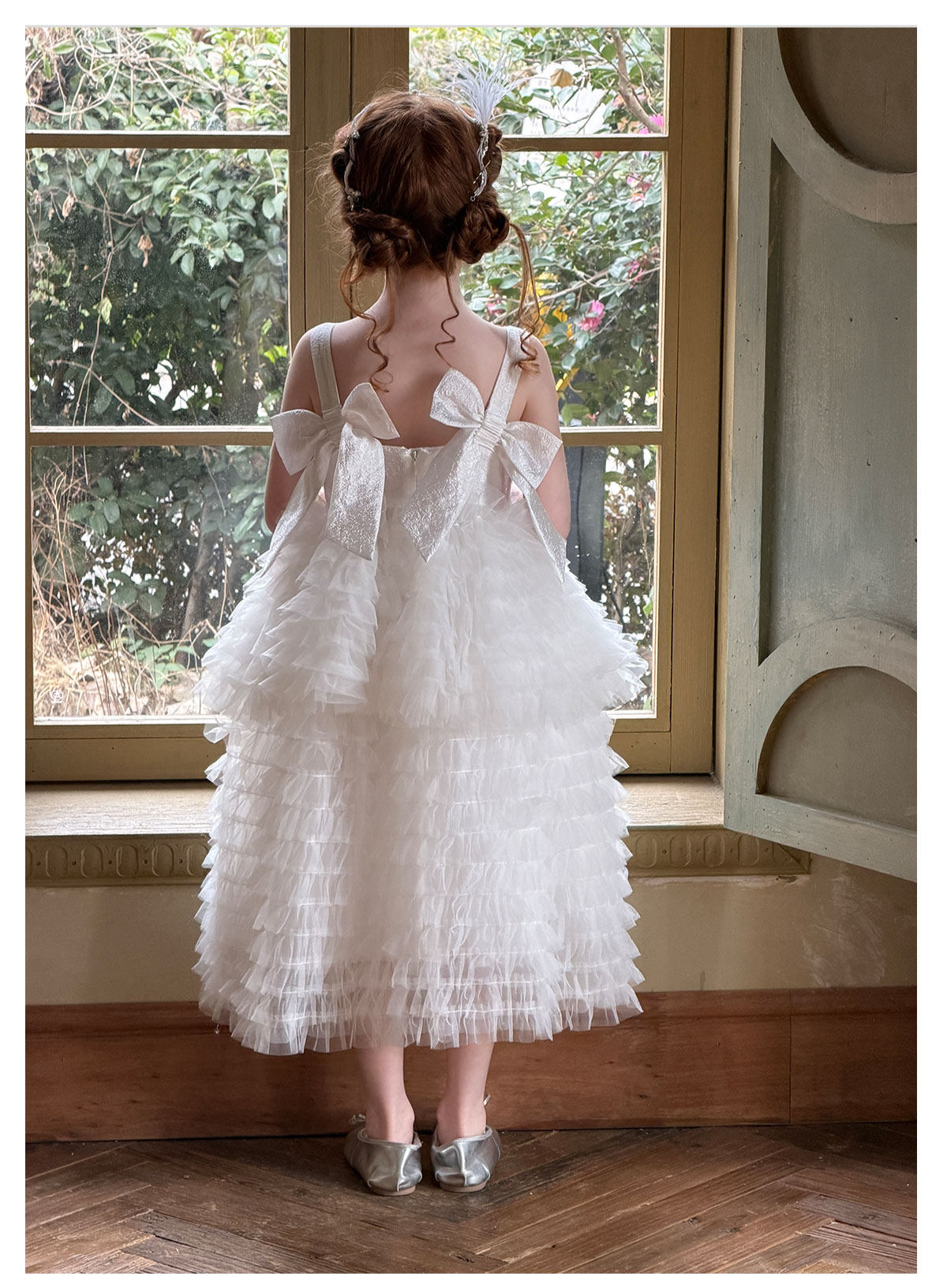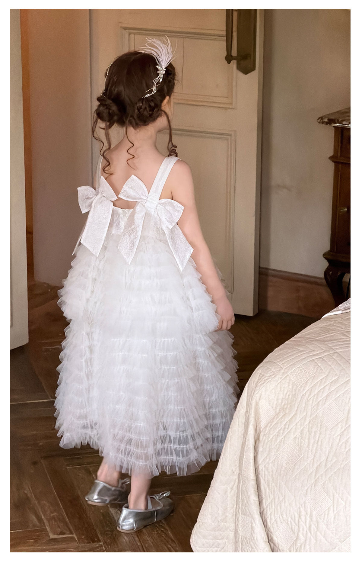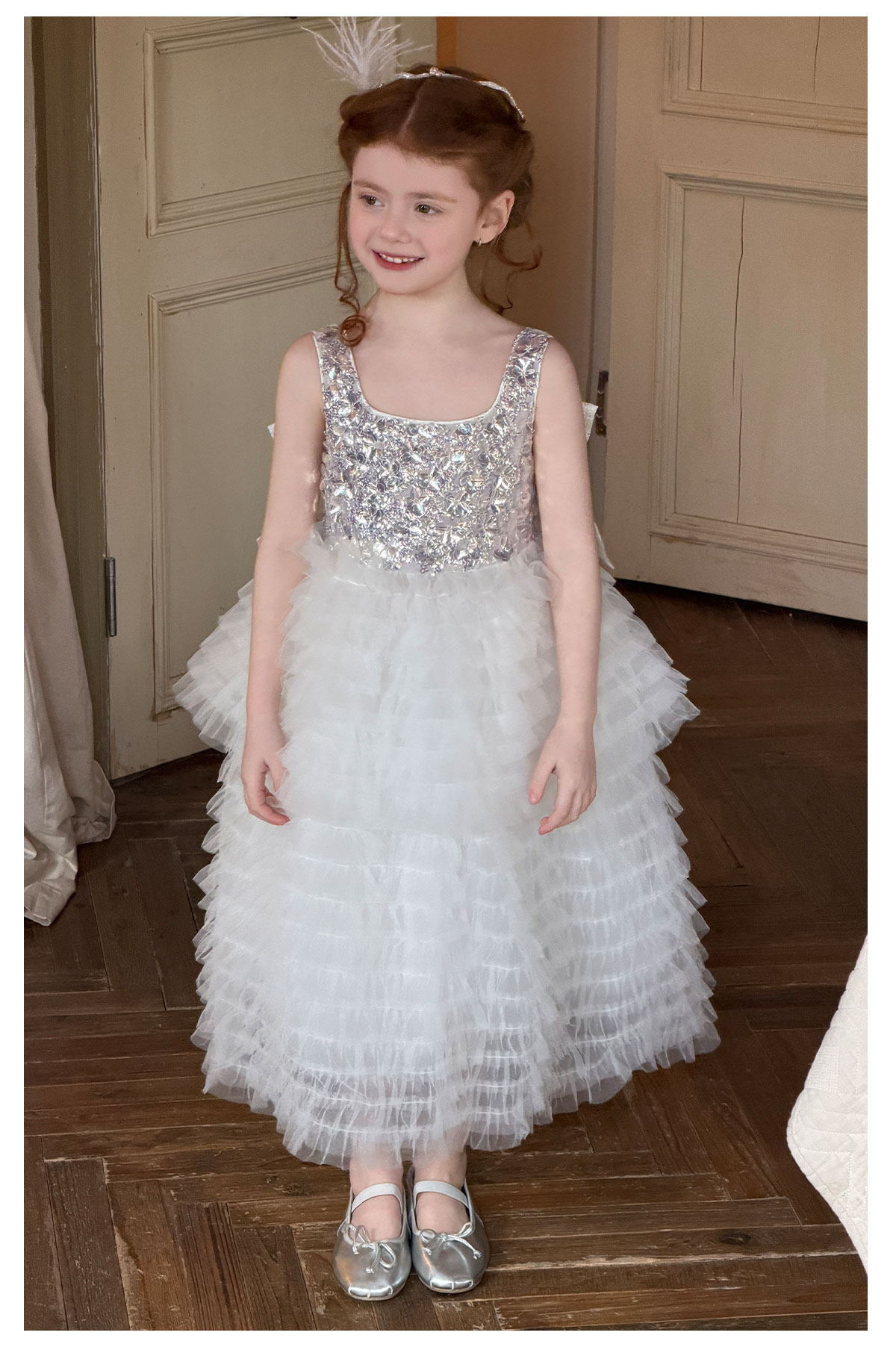 mr.baby女童亮片网纱公主裙白色蛋糕裙蓬蓬裙生日表演礼服连衣裙