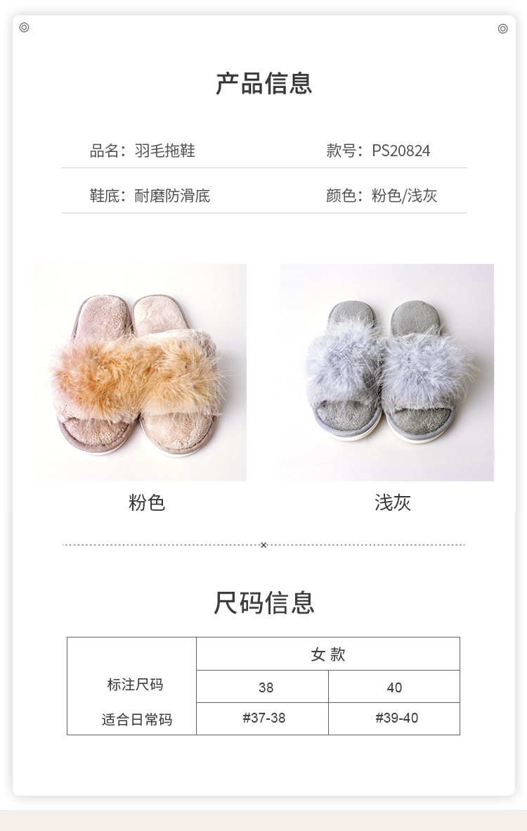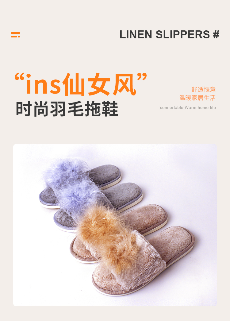仙女风时尚透气吸汗柔软亲肤羽毛女款拖鞋PS20824