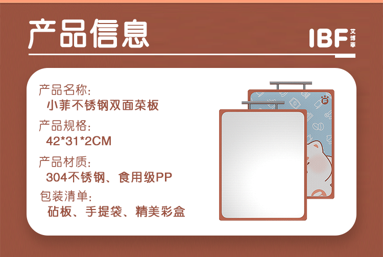 IBF艾博菲艾博菲(IBF)小菲不锈钢双面菜板【K】