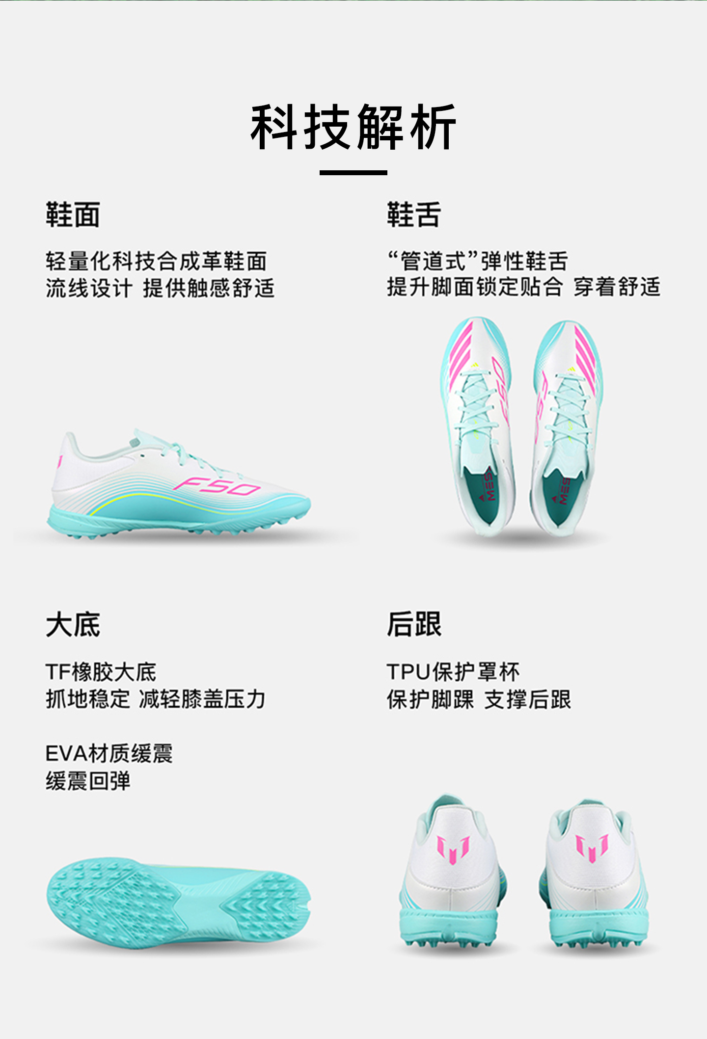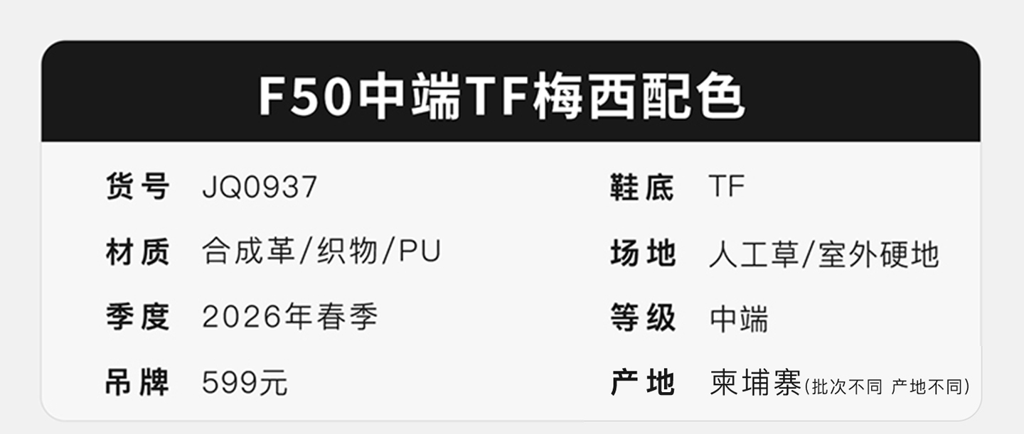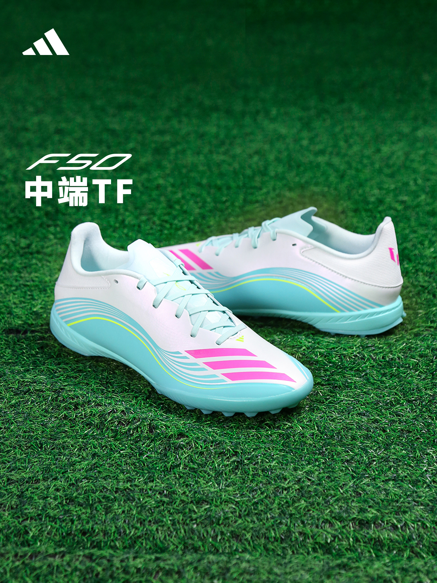 【梅西专属配色】ADIDAS阿迪达斯 F50 中端TF碎钉训练成人足球鞋男JQ0937