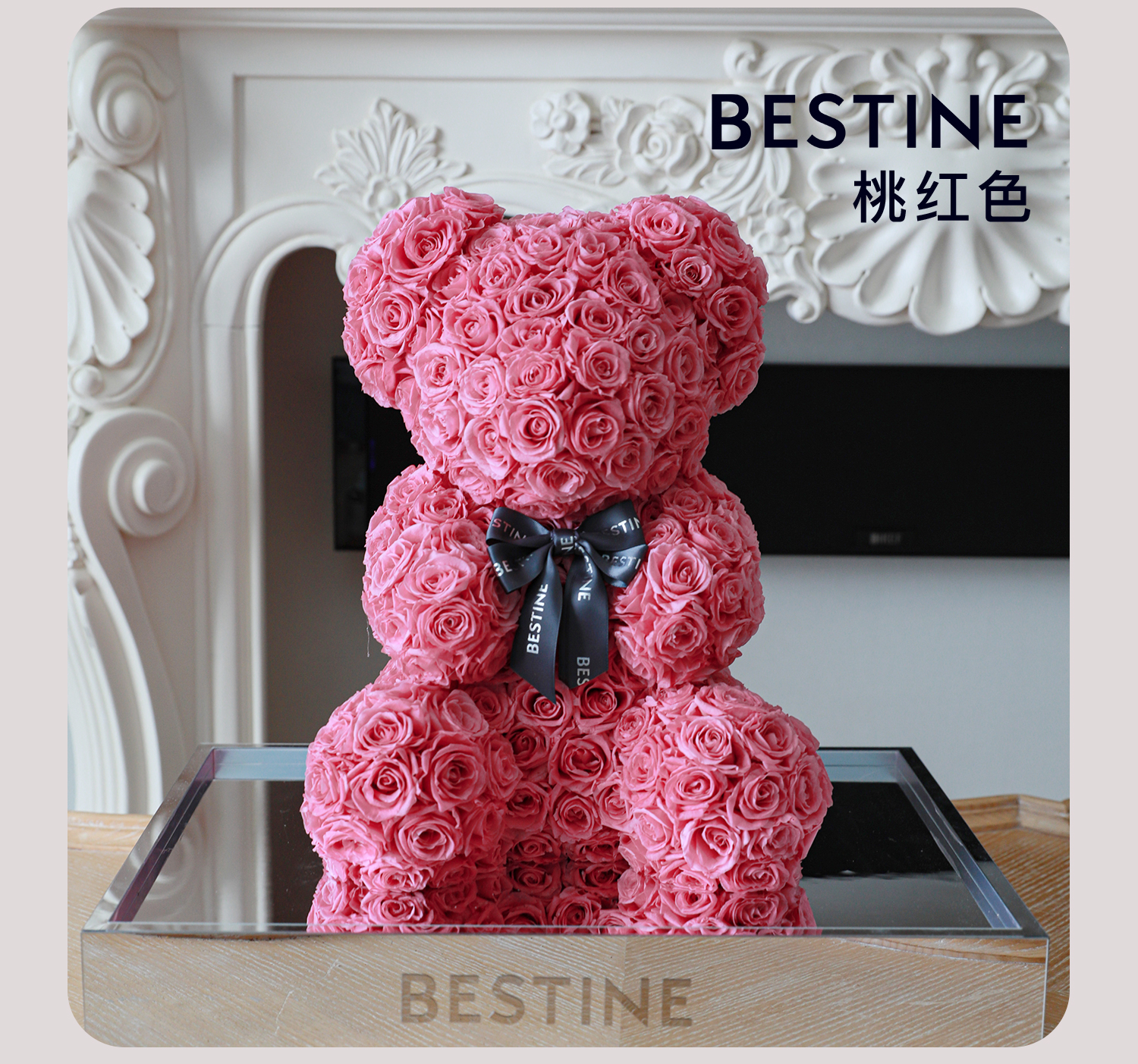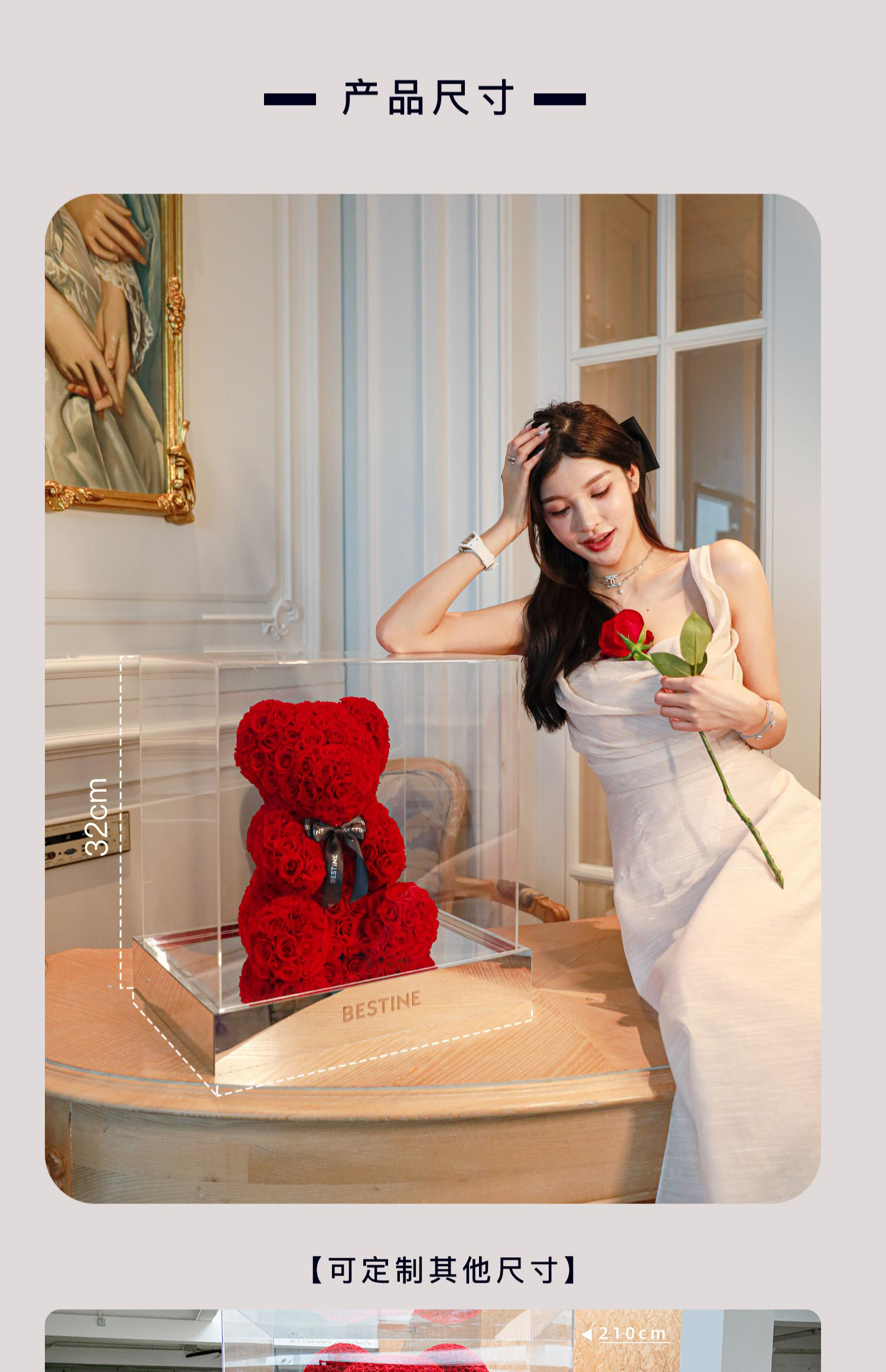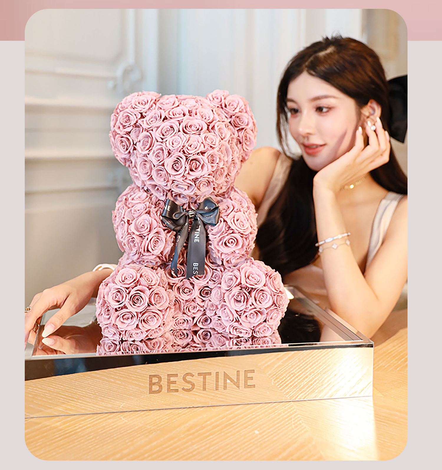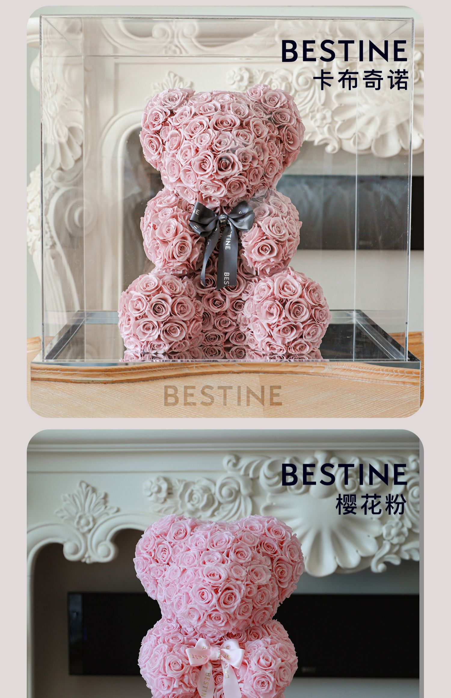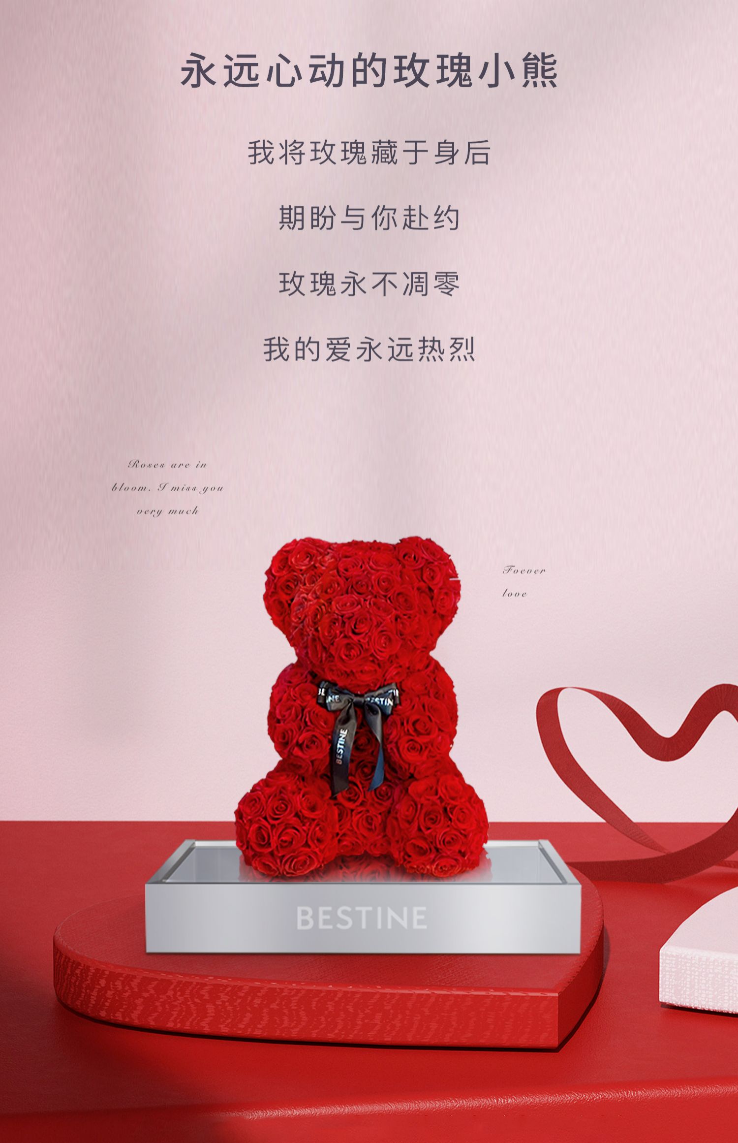 VBEINGS花语 满怀挚友系列 甜心熊仔 永生花MINI玫瑰花摆件送女友女生爱人生日礼物