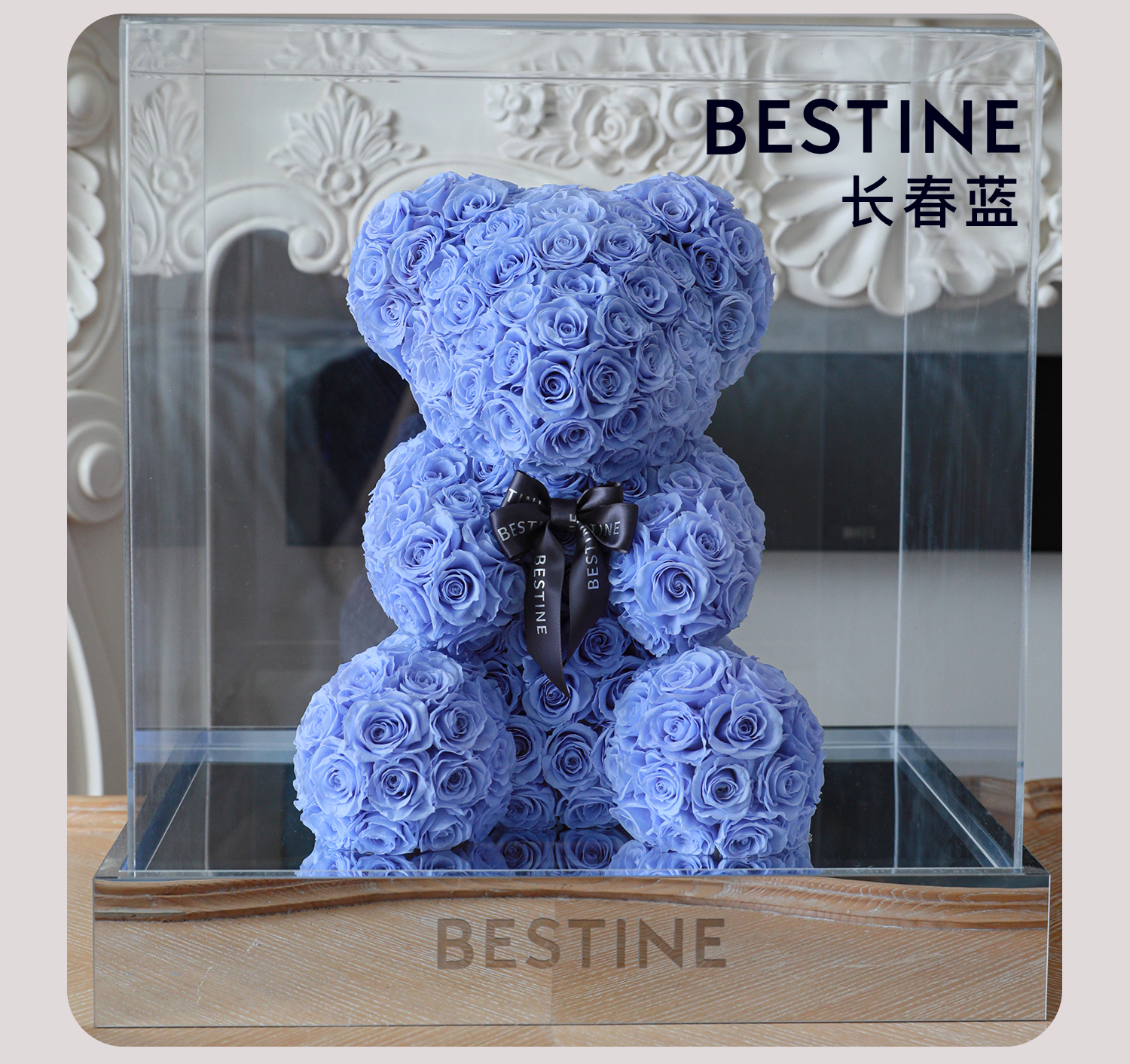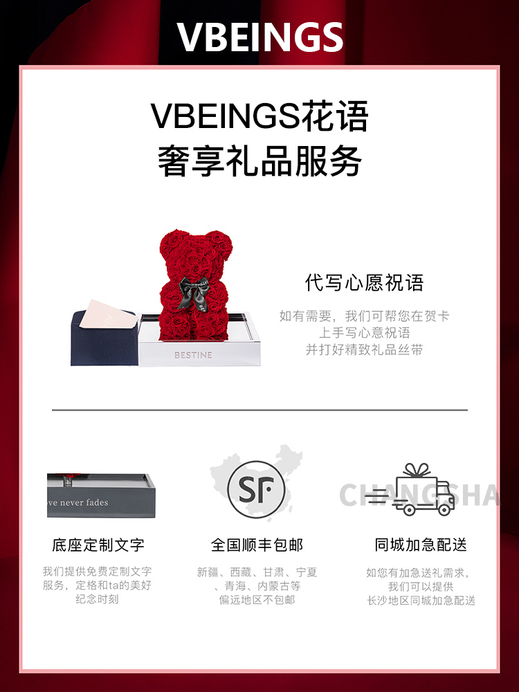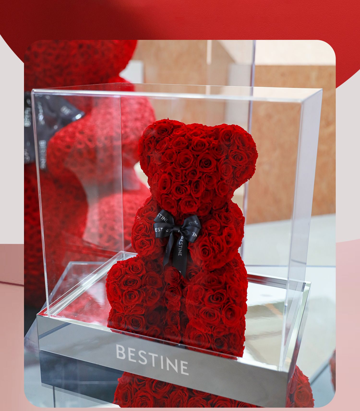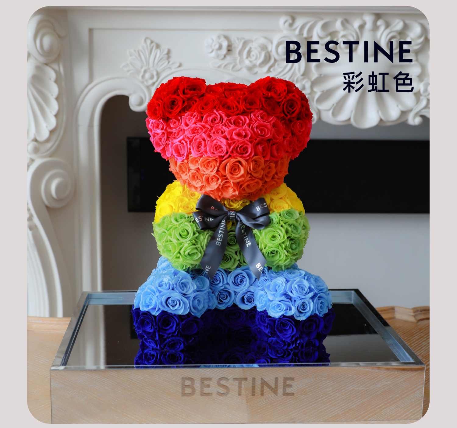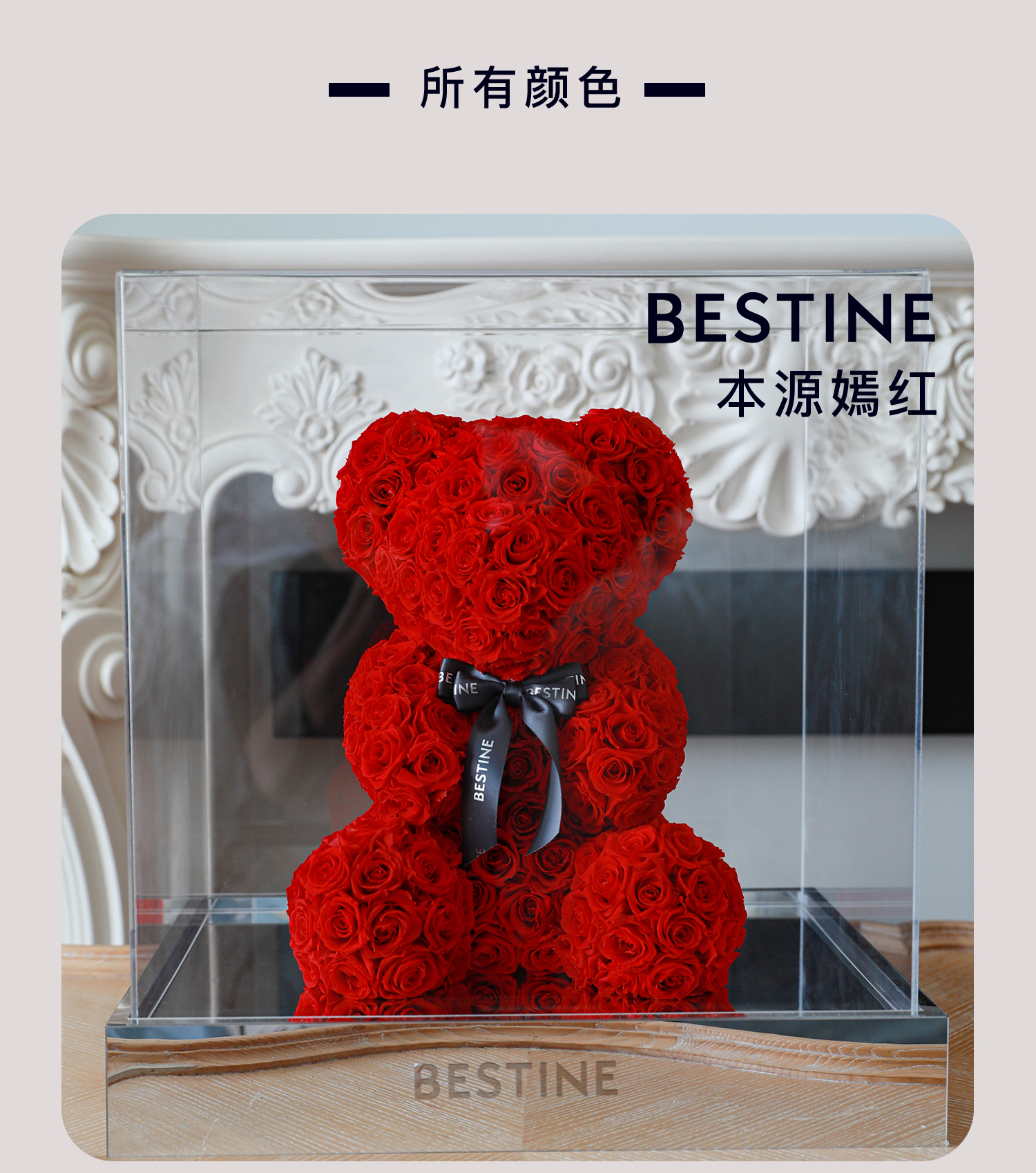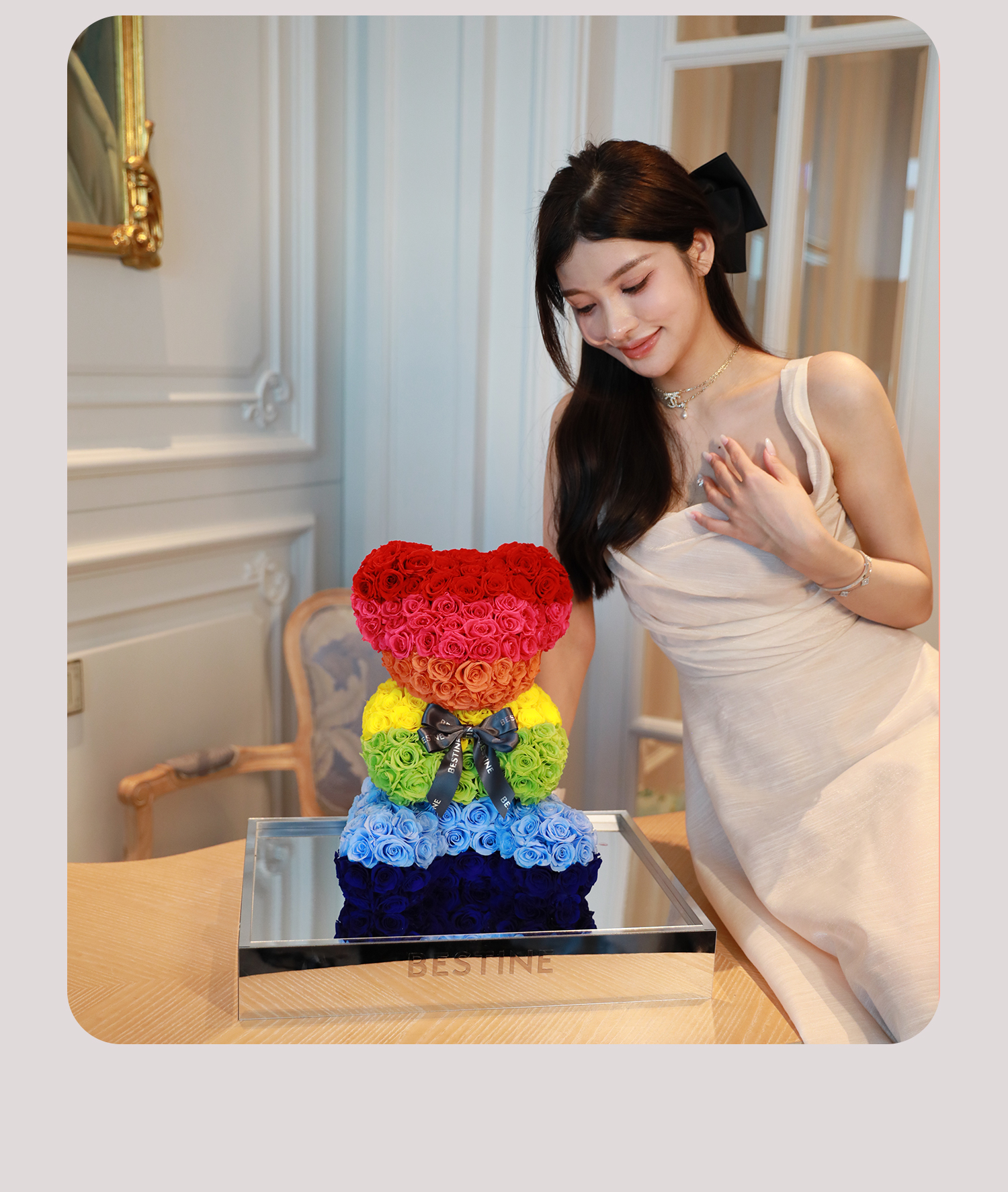 VBEINGS花语 满怀挚友系列 甜心熊仔 永生花MINI玫瑰花摆件送女友女生爱人生日礼物