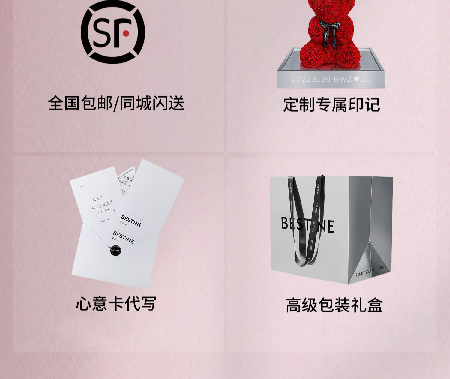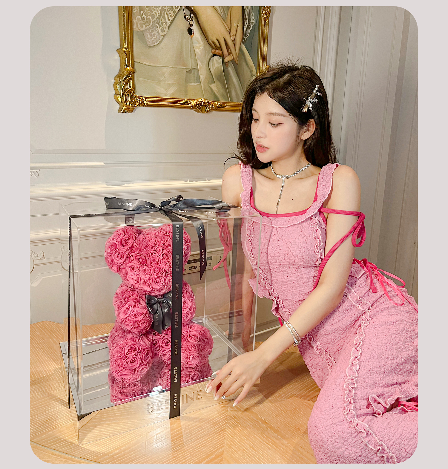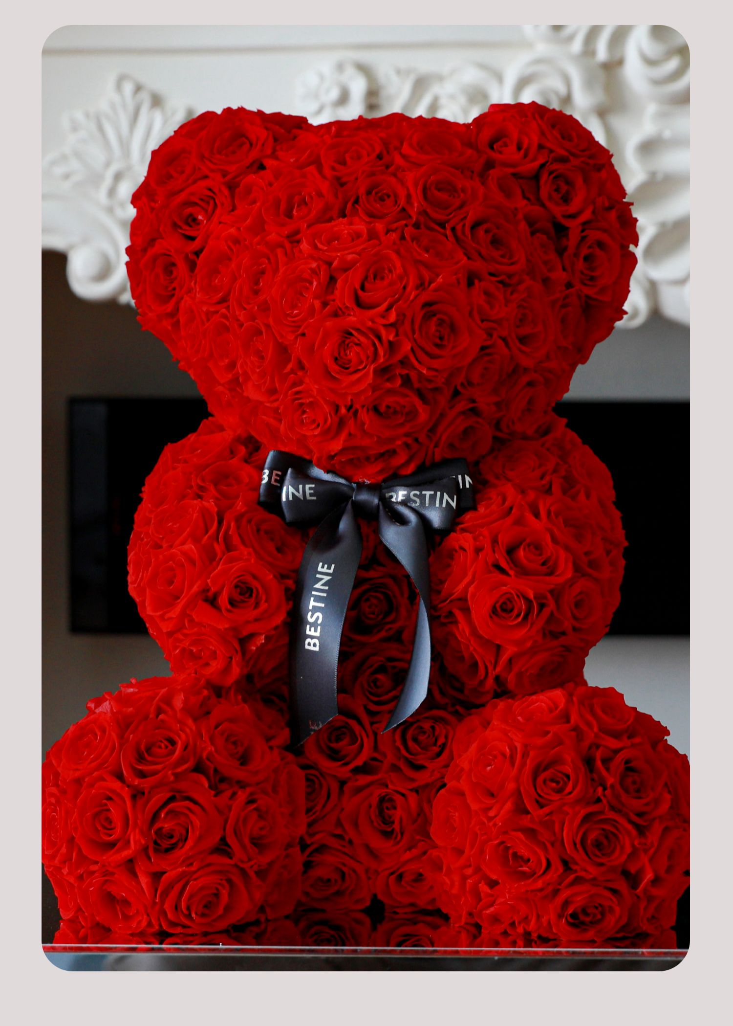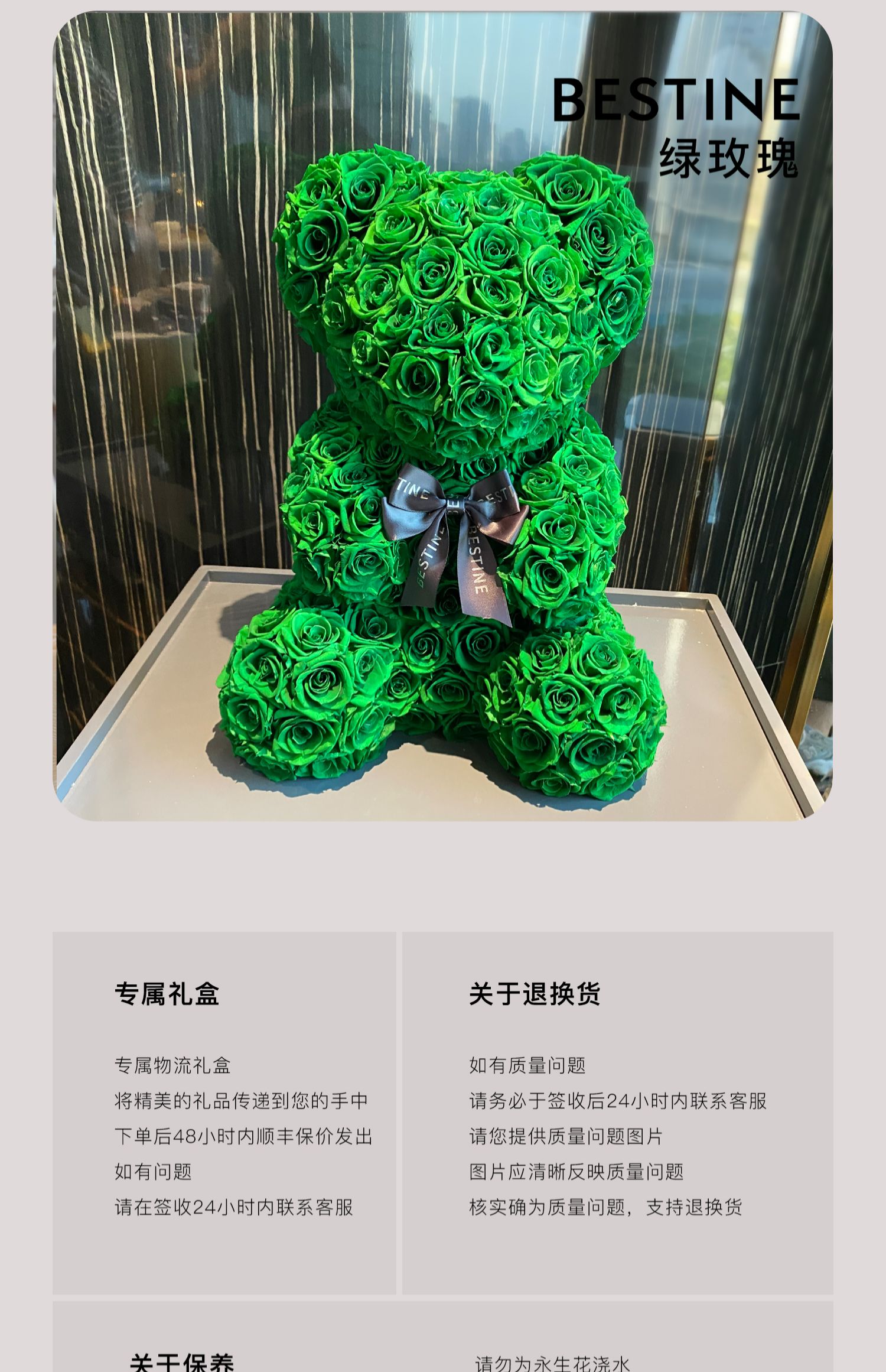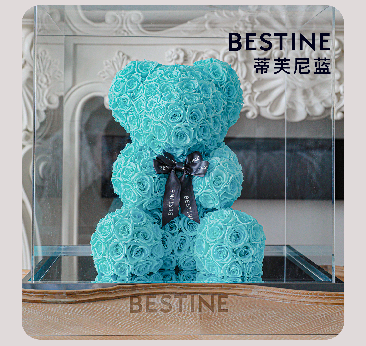 VBEINGS花语 满怀挚友系列 甜心熊仔 永生花MINI玫瑰花摆件送女友女生爱人生日礼物