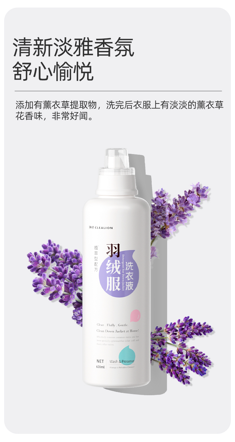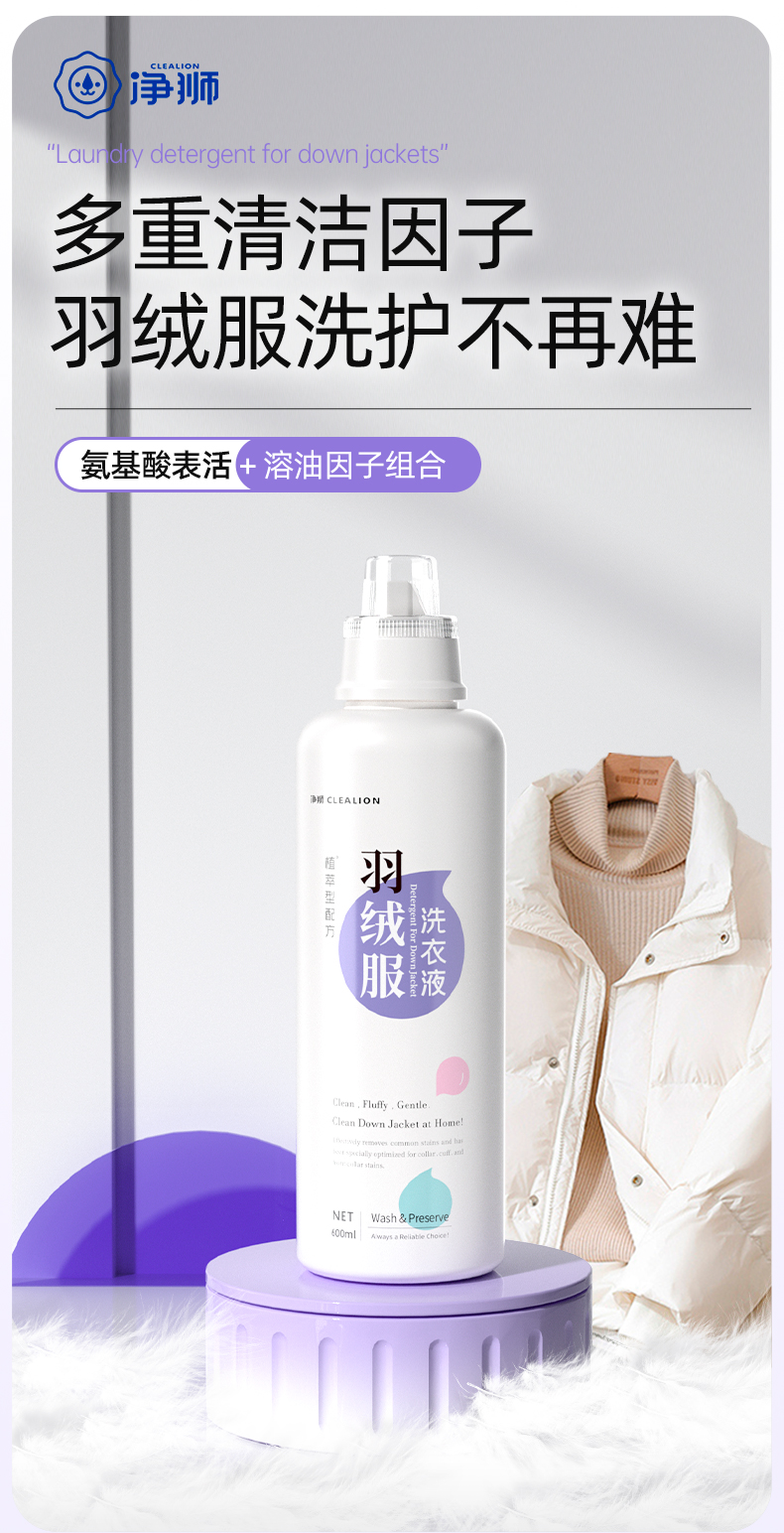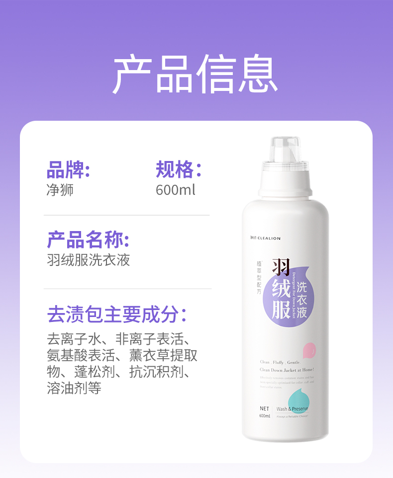净狮羽绒服专用蓬松洗衣液600ml/瓶--1瓶2瓶