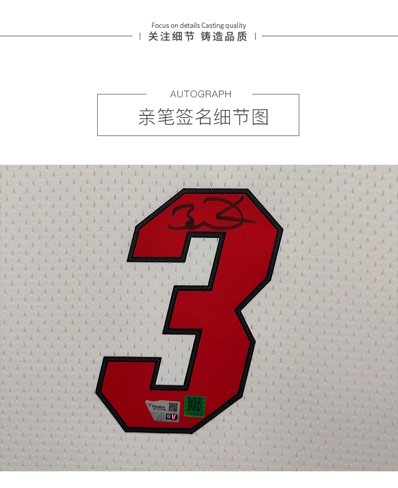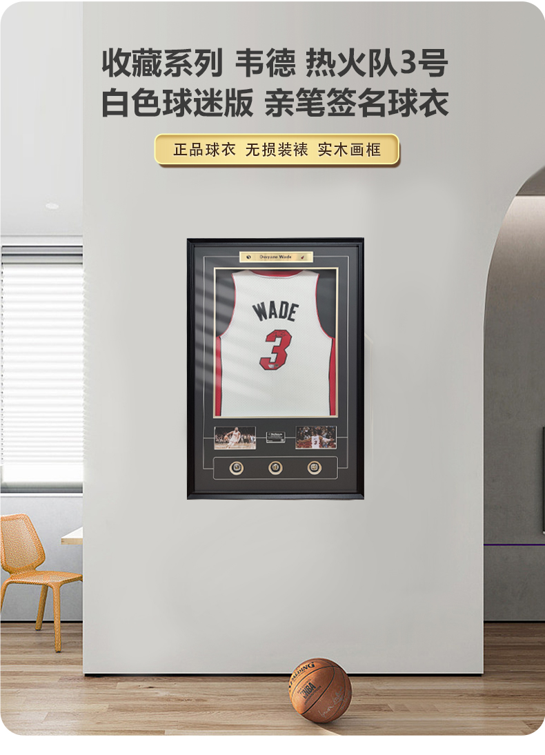 收藏系列 韦德 热火队3号 白色球迷版 亲笔签名球衣