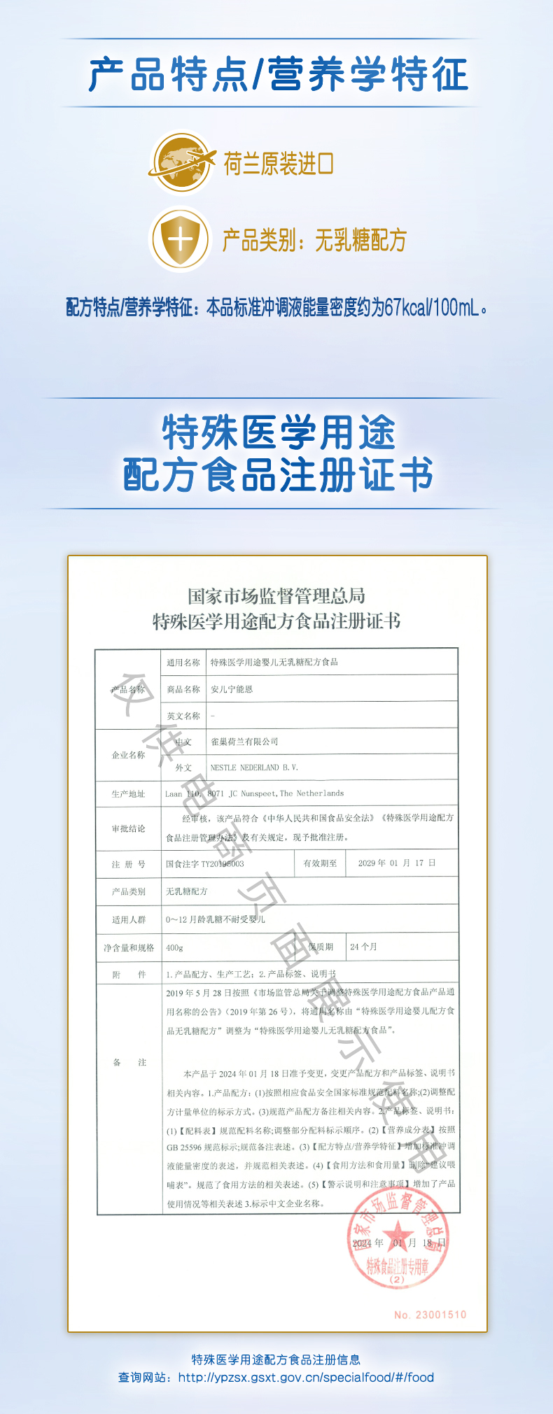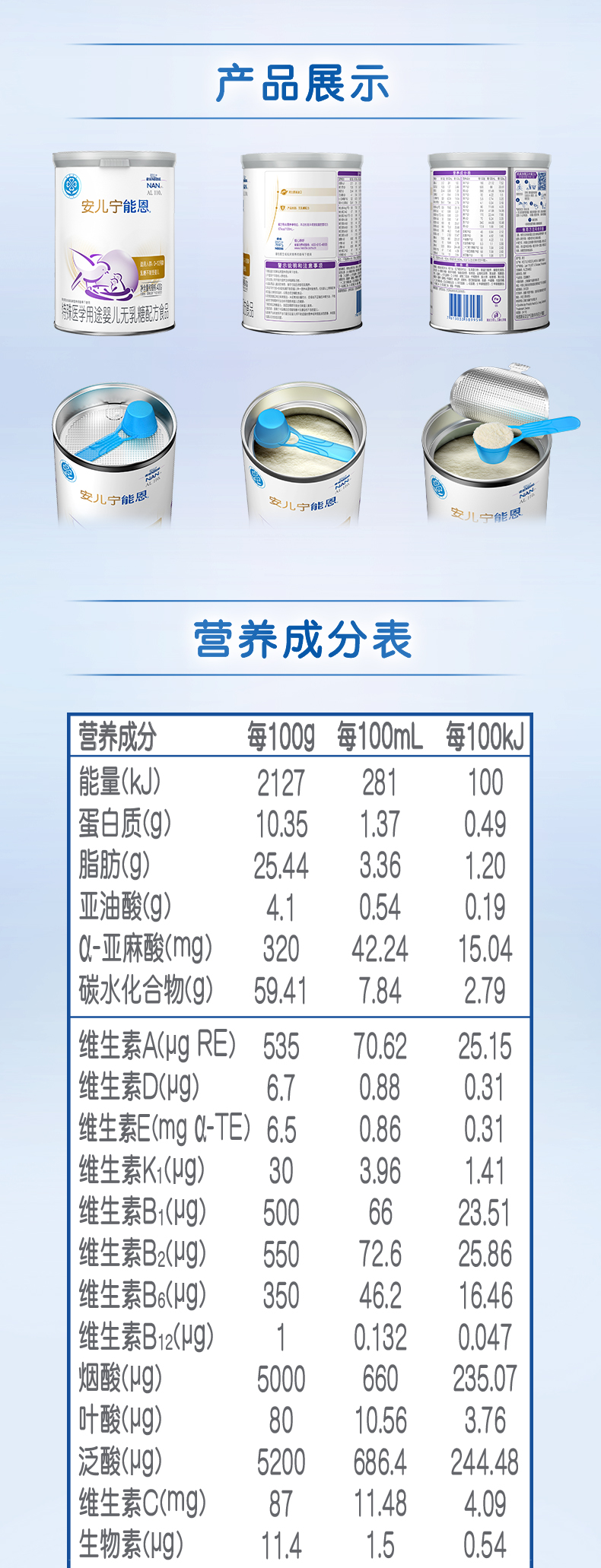 雀巢安儿宁能恩婴幼儿无乳糖配方食品0-12个月400G