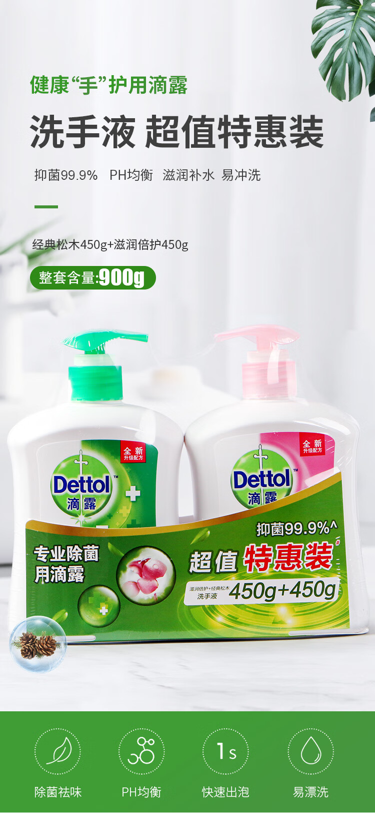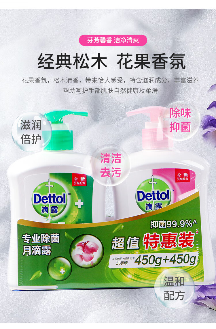 滴露健康抑菌洗手液滋润倍护450克+经典松木450克