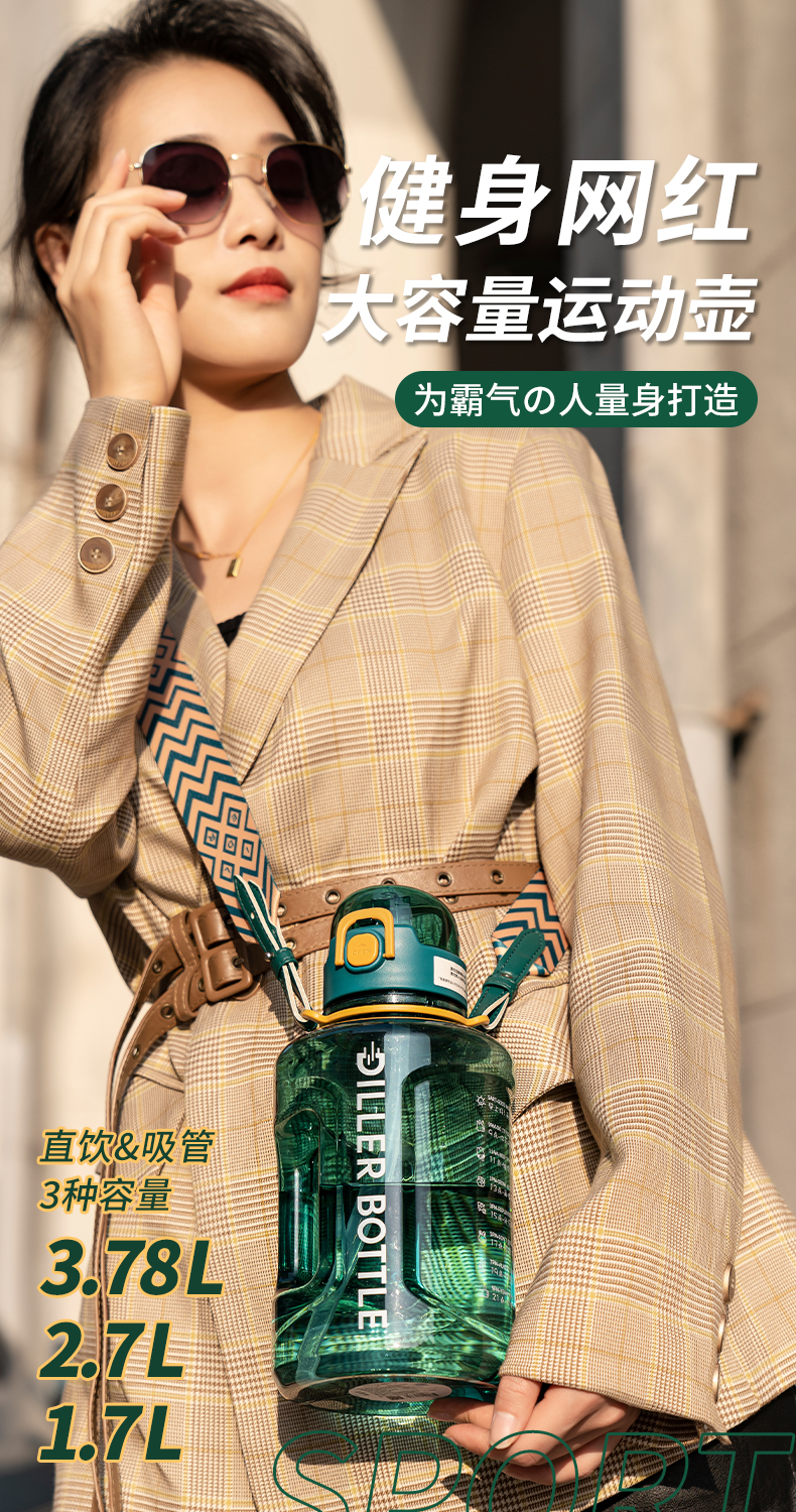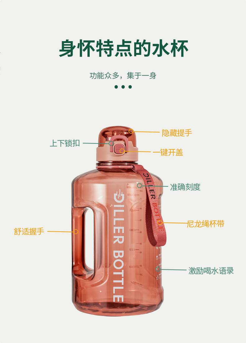 迪乐贝尔炫彩畅动tritan直饮杯DB-013-1700ml大容量水杯男女健身水壶吨桶吨顿顿桶太空杯网红大肚杯便携