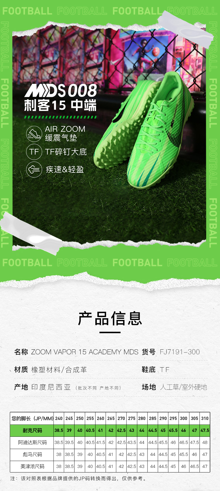 NIKE耐克刺客15中端TF碎钉成人足球比赛训练鞋男FJ7191-300