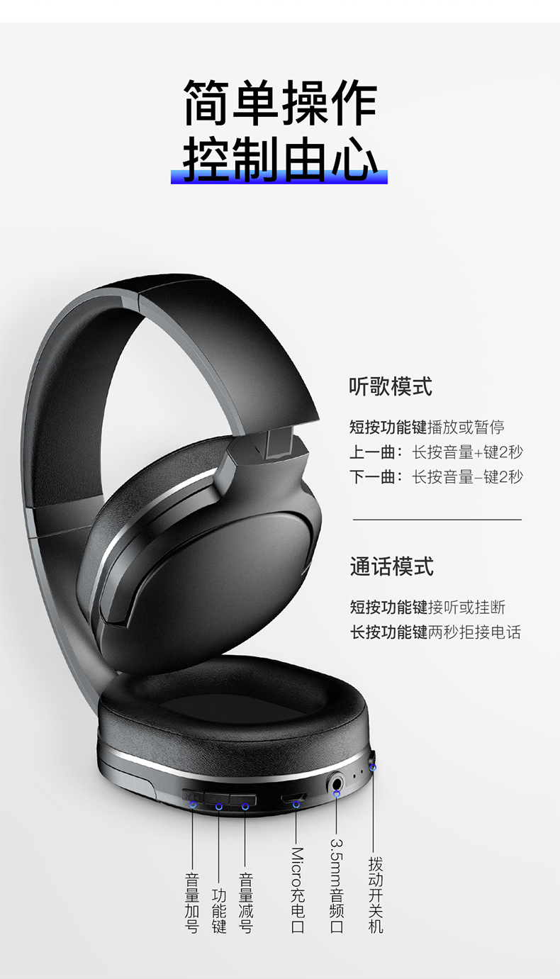 倍思头戴式蓝牙耳机NGD02入耳式运动跑步