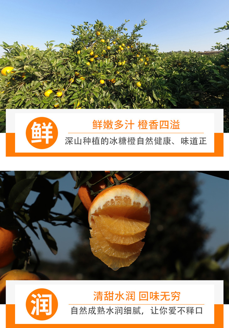 温馨小提示:湖南冰糖橙属于甜类,特点是:个头不大 ,香甜多汁,表皮有麻点,均属于正常现象,不影响口感!麻点不在售后范围